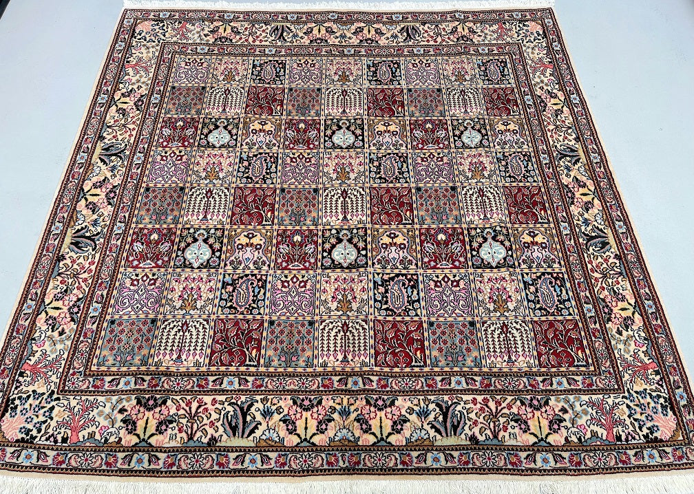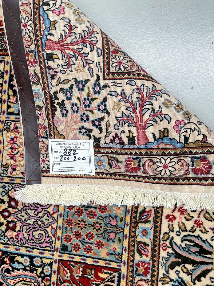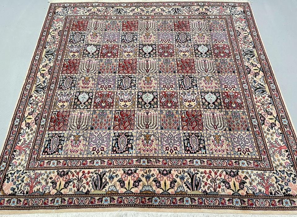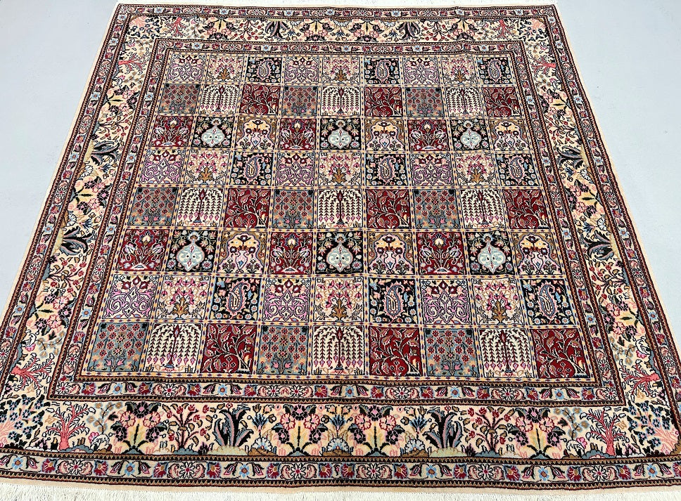 Superb Square Room Size Authentic Hand Knotted Persian Birjand Rug. It Has A Lamb’s Wool And Touch Of Silk Pile On Fine Cotton. It Also Has Multi-Color Tones Dyed Using Traditional Methods. Superb Quality Which Would Last A Life Time.