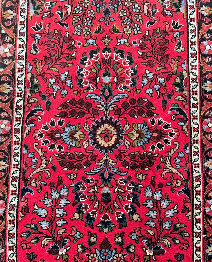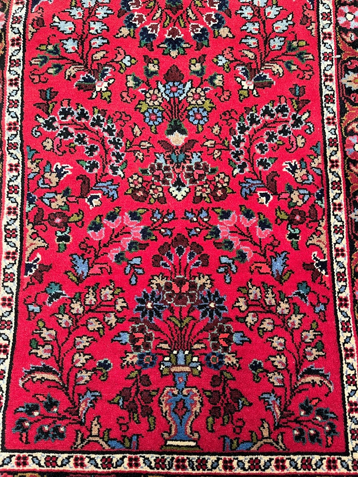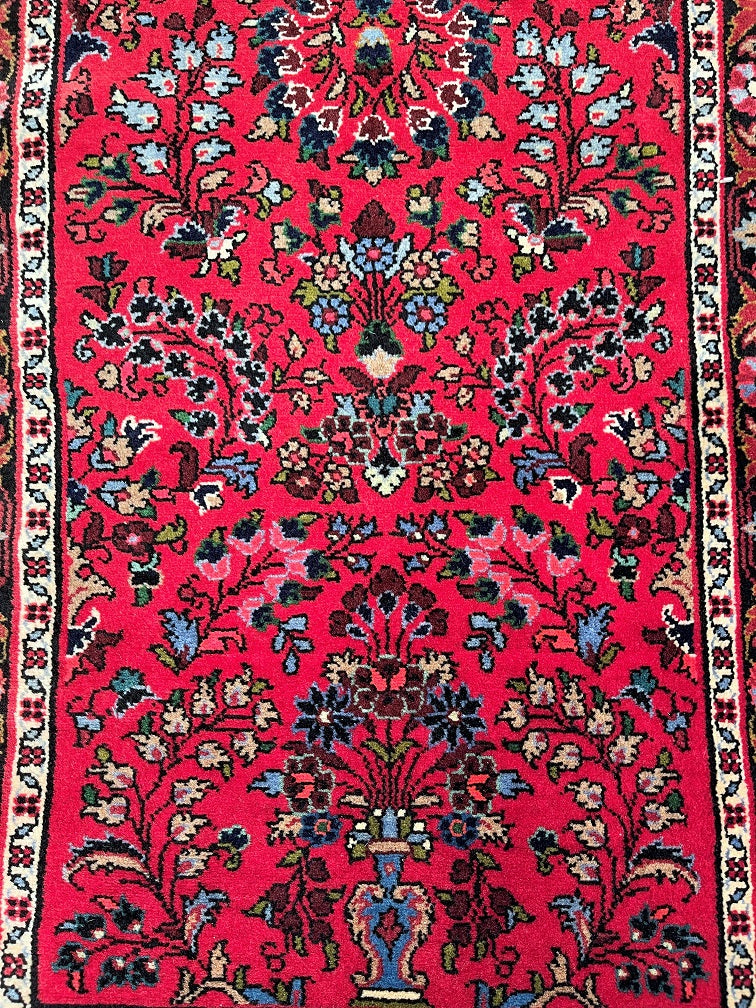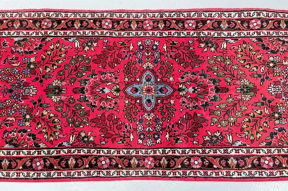 Authentic Hand Knotted Persian Lilian Hall Runner. Above All This Is a Very Collectable Item Made By Armenian Weaver Settled In Central West Persia. It Also Has Pure Wool Pile On Cotton Base. Soft Red, Indigo Blue, Beige, Light Blue and Green Tone Dyed Using Traditional Methods.