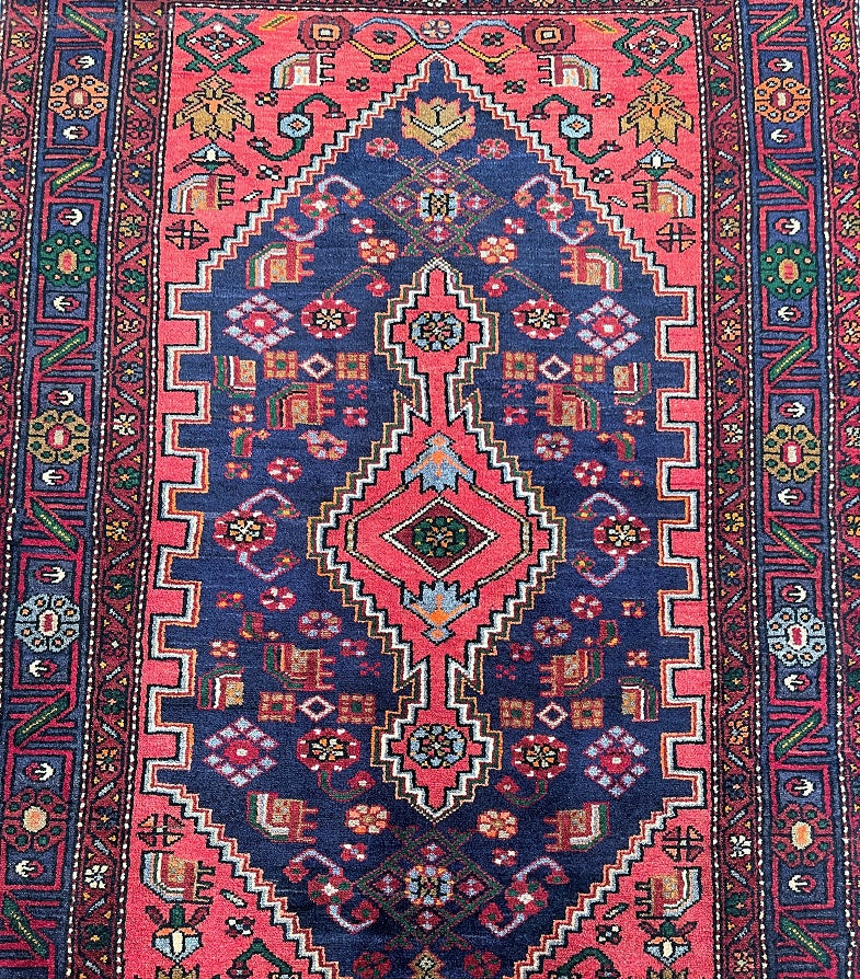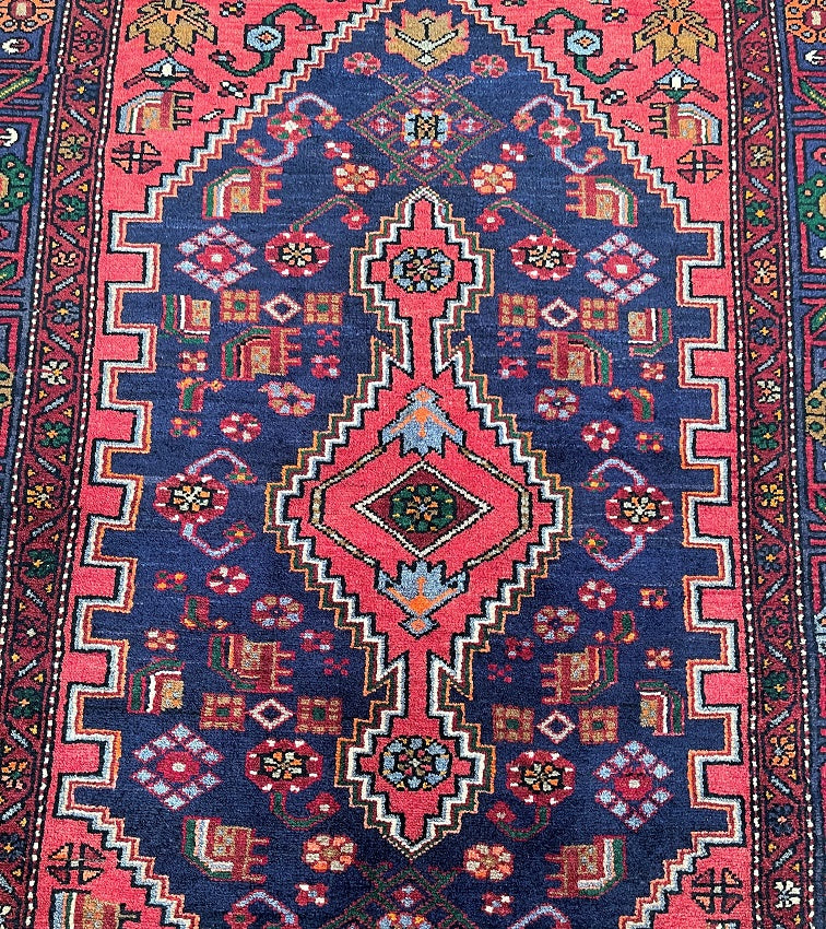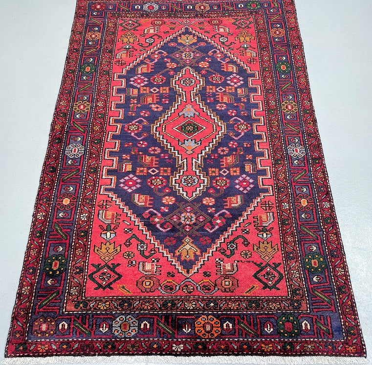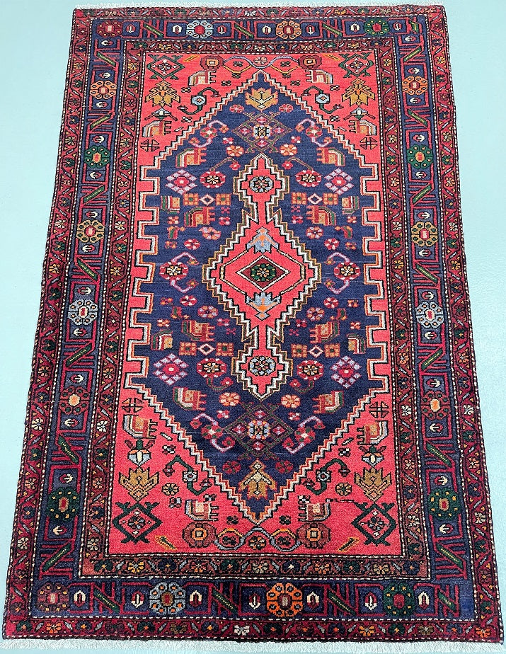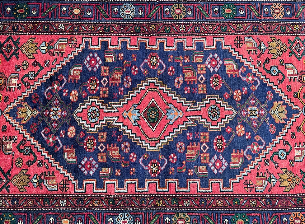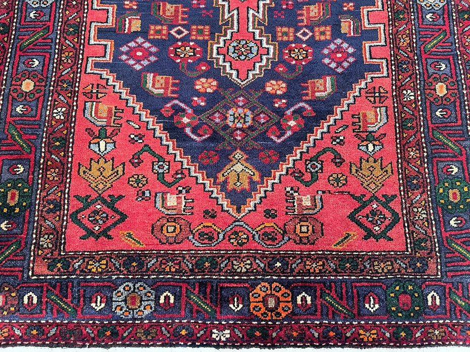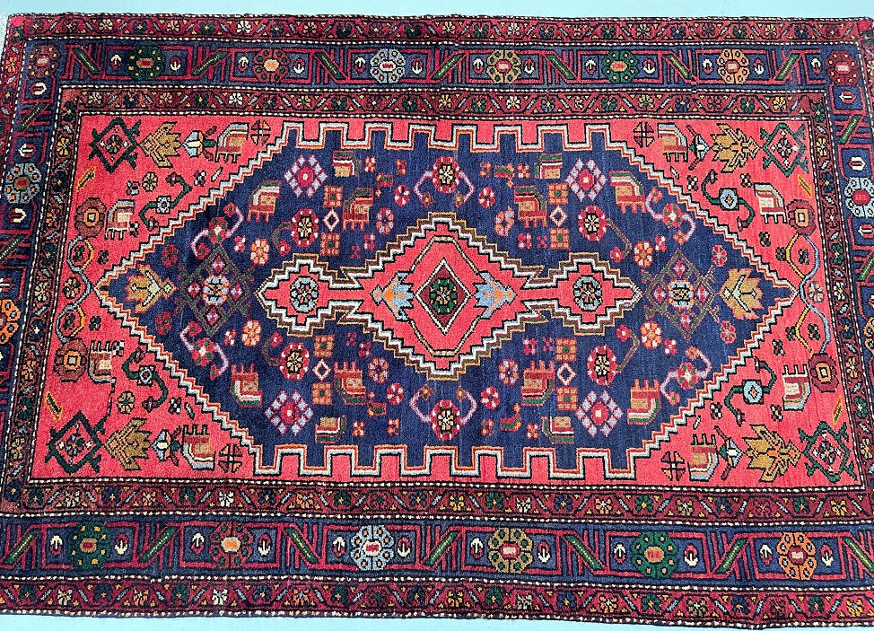 Hard Wearing Authentic Handmade Persian Khamseh Rug. Above All It Has A Pure Hand Spun Wool Pile On Cotton Base. It Also Has a Terracotta Red, Indigo Blue, Black, Yellow, Orange And Touch Of Green Tone Dyed Using Traditional Methods.