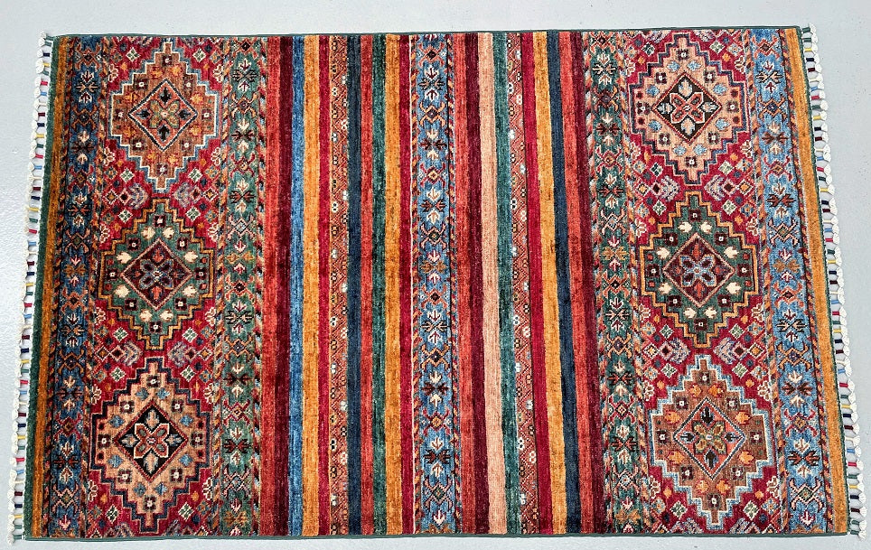 Decorative Shawl Design Handmade Afghan Super Kazak Rug. Above All It Has A Pure Wool Pile On Cotton Base. Multi-Colour Tone Dyed Using Traditional Methods (Vegetable Dyes). Last of True Woven Nomadic Art.