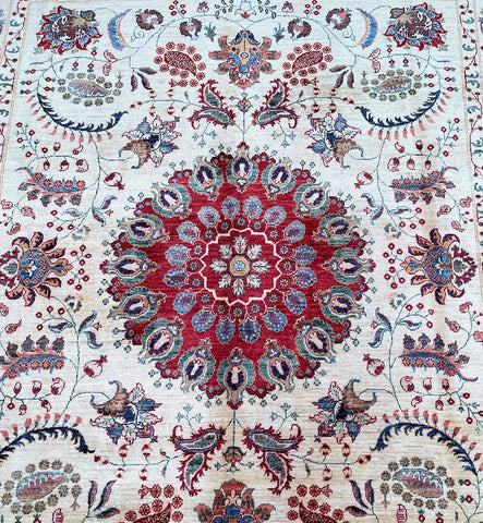 Superb Large Room Size Authentic Hand Knotted Persian Nain Rug. Above This Is A Fine Grade Nain Rug Called 9LA (9Ply). Never The Less It Has a Pure Lamb’s Wool And Silk Pile On Cotton Base. Beige, Blue With Touch Of Red Abs Brown Tones Dyed Using Traditional Methods.
