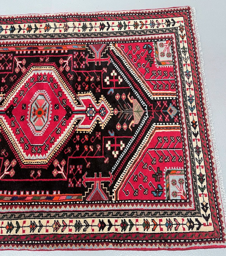 Genuine Handmade Persian Village Tuserkan Rug, a remarkable piece that combines durability, Village craftsmanship, and traditional techniques. This rug features a hard-wearing construction with a pure hand-spun wool pile on a cotton base, ensuring longevity and comfort.