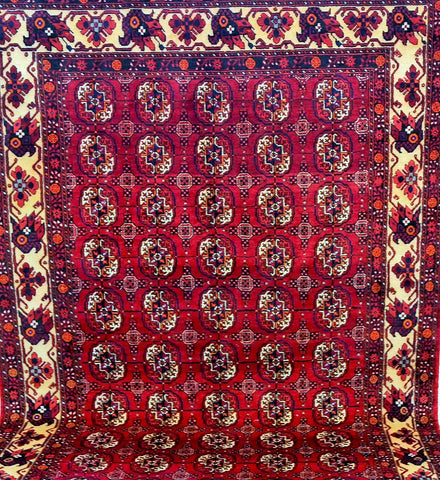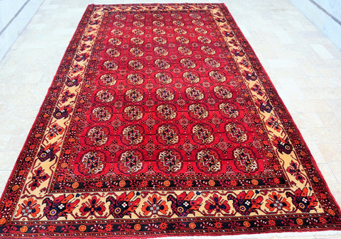 Full Room Size Authentic Handmade Tribal Persian Ferdos Balouchi Rug. Above All It Has A Pure Hand Spun Wool Pile On Cotton Base. Deep Maroon Red Tone Dyed Using Traditional Methods.