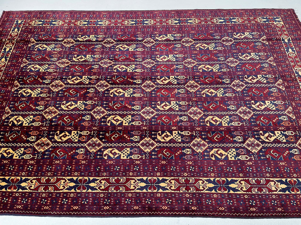 Certified Hand Knotted Afghan Rug 297x199cm Gorgeous Full Room Size Hand Knotted Tribal Afghan Kunduz Rug. Above All It Has A Pure Hand Spun Wool Pile On Wool Base. It Also Has A Rich Burguny/Burnt Chocolate Tone Dyed Using Traditional Methods. De...