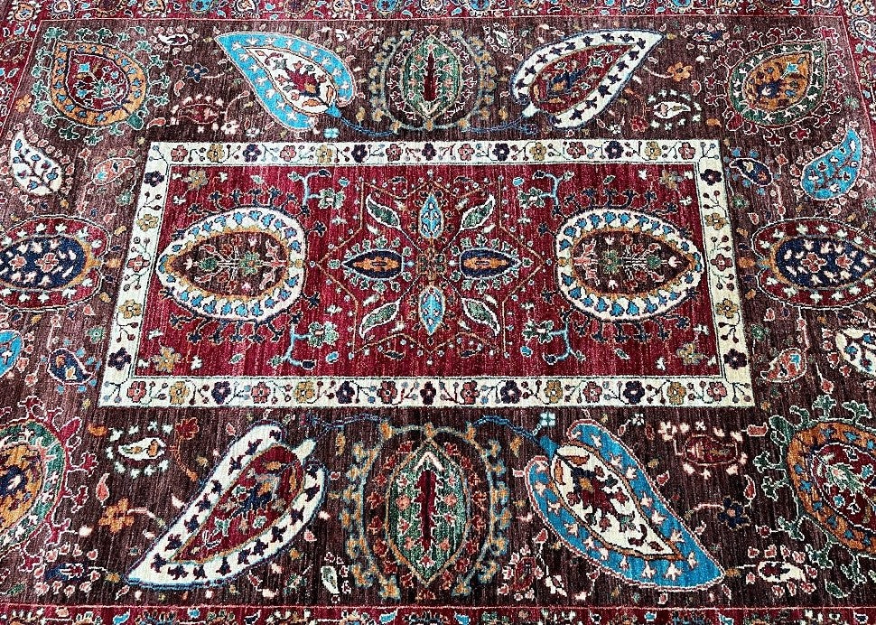 Coffee Table To Room Size Hand Knotted Afghan Chobi Rug. Above All It Has A Pure Hand Spun Wool Pile On Cotton Base. Unique Brown, Blue, Maroon, Orange, Beige And Green Tone Dyed Using Traditional Methods (Vegetable Dyes). Last of True Woven Nomadic Art.
