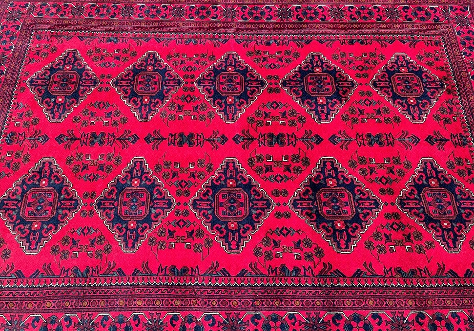 Superb Authentic Hand Knotted Afghan Khamyab Rug. It also Has A Lamb’s Wool Pile On Cotton Base. Rich Burgundy/Maroon Tone Dyed Using Traditional Methods. Last Of True Woven Nomadic Art.