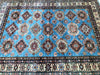 Stunning Room Size Authentic Handmade Afghan Super Kazak Rug. Above All This Quality of Kazak Rugs Are Rare And Are Made Using Merino Wool Pile on Cotton Base. Light Blue Tone Dyed Using Traditional Methods (Vegetable Dyes). Last of True Woven Nomadic Art.