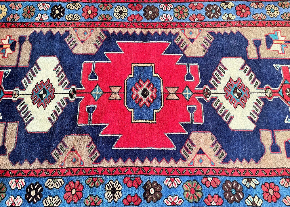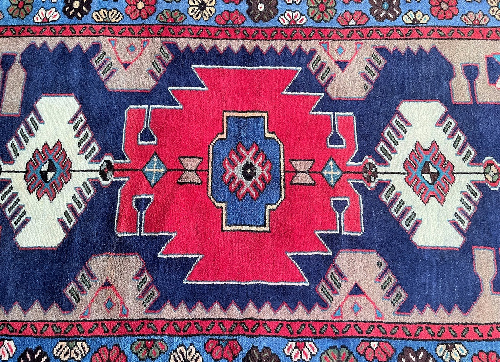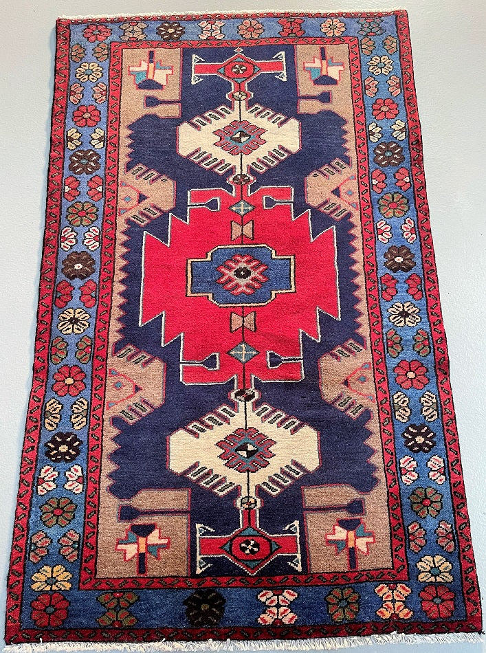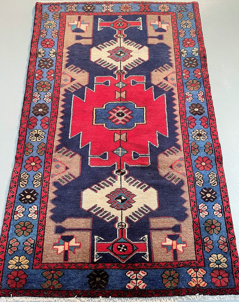 Genuine Handmade Persian Village Zanjan Rug. Above All It Has A Pure Hand Spun Wool Pile On Cotton Base. It Also Has An Indigo Blue, Brown, Beige, Red And Light Blue Tone Dyed Using Traditional Methods.
