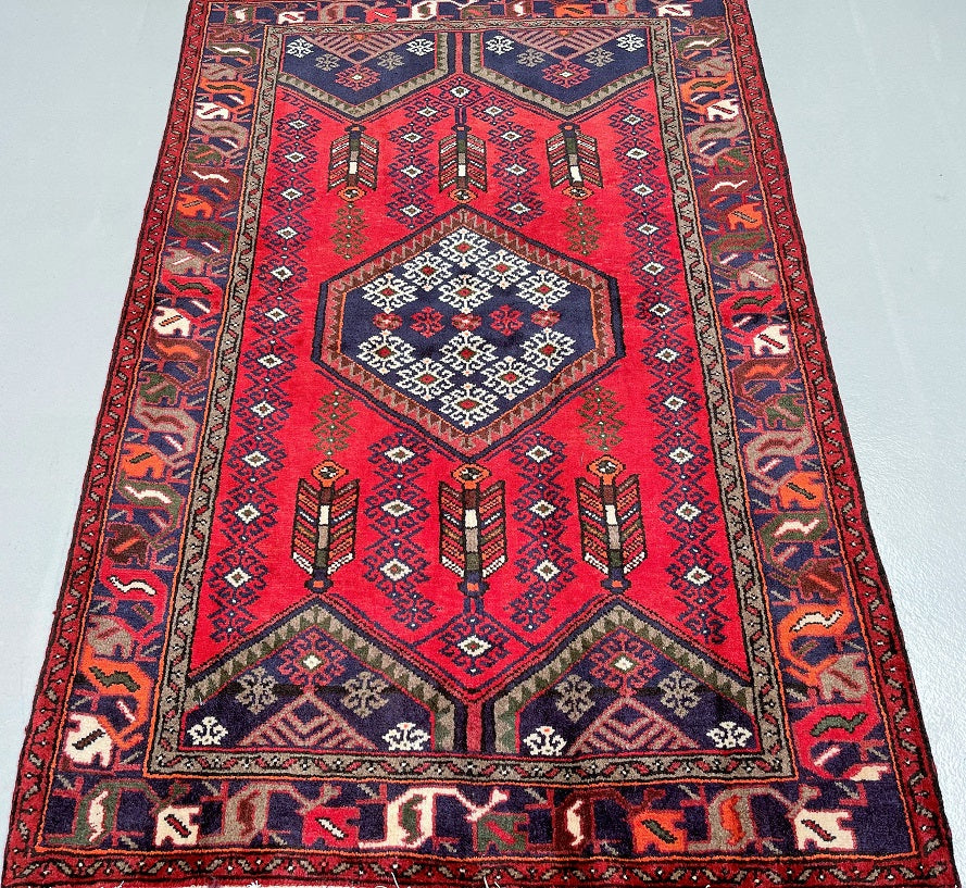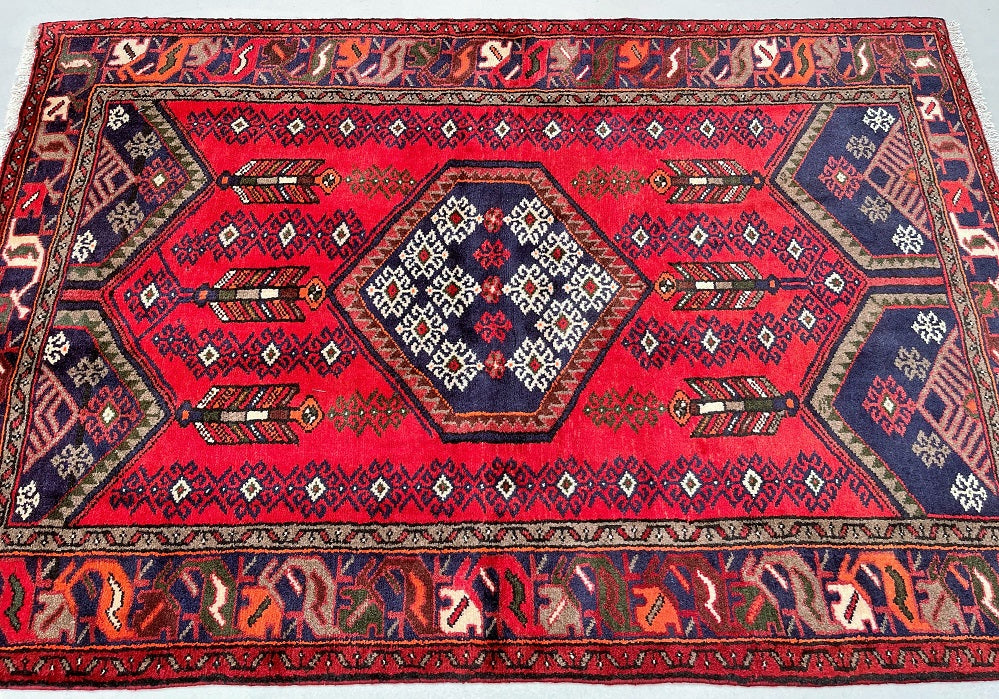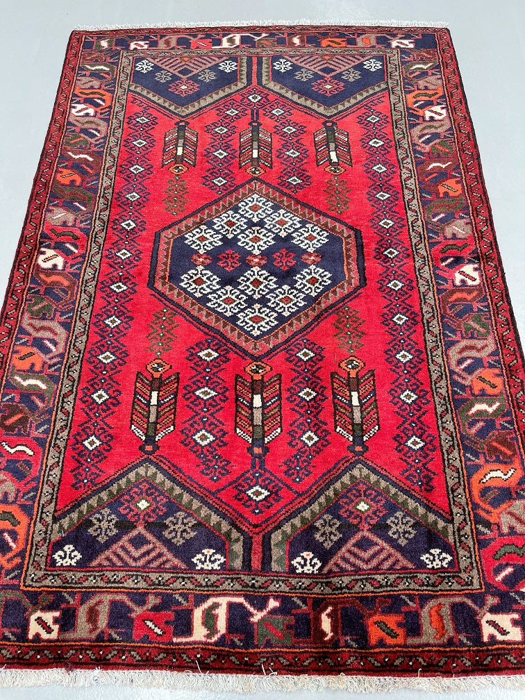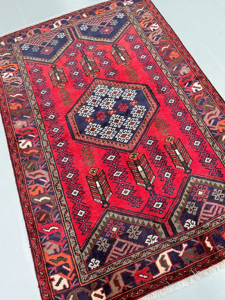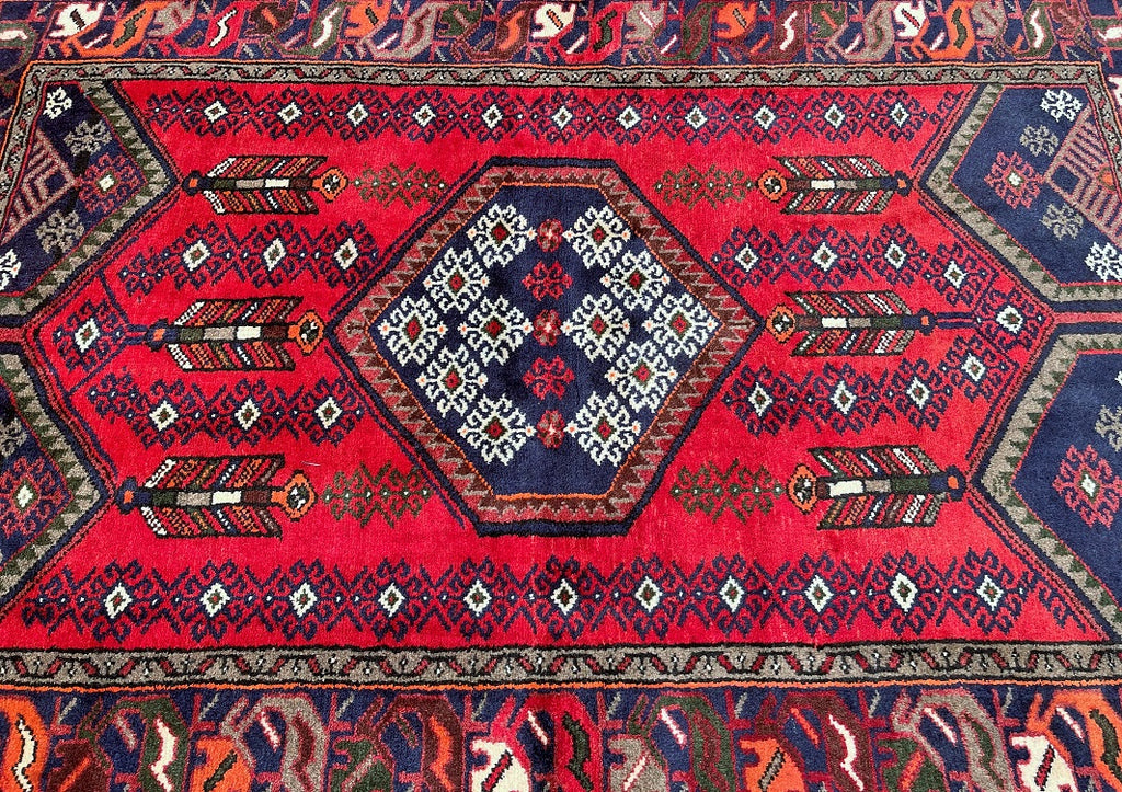 Hard Wearing Coffee Table Size Authentic Handmade Persian Zanjan Rug. Above All It Has A Pure Hand Spun Wool Pile On Cotton Base. It Also Has A Rustic Red/Terracotta, Blue, Beige, Orange, Brown And Green Tone Dyed Using Traditional Methods.