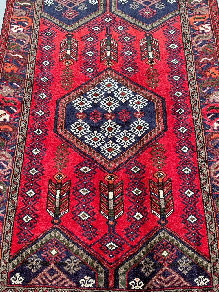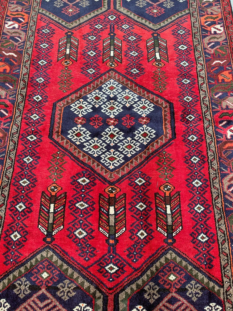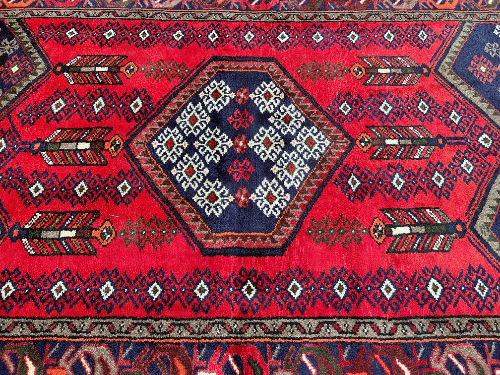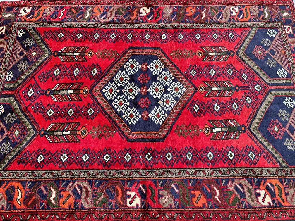 Hard Wearing Coffee Table Size Authentic Handmade Persian Zanjan Rug. Above All It Has A Pure Hand Spun Wool Pile On Cotton Base. It Also Has A Rustic Red/Terracotta, Blue, Beige, Orange, Brown And Green Tone Dyed Using Traditional Methods.