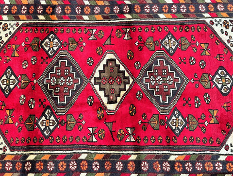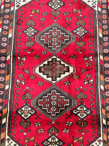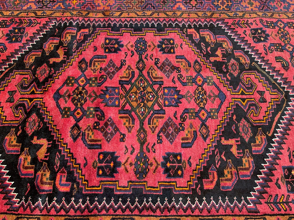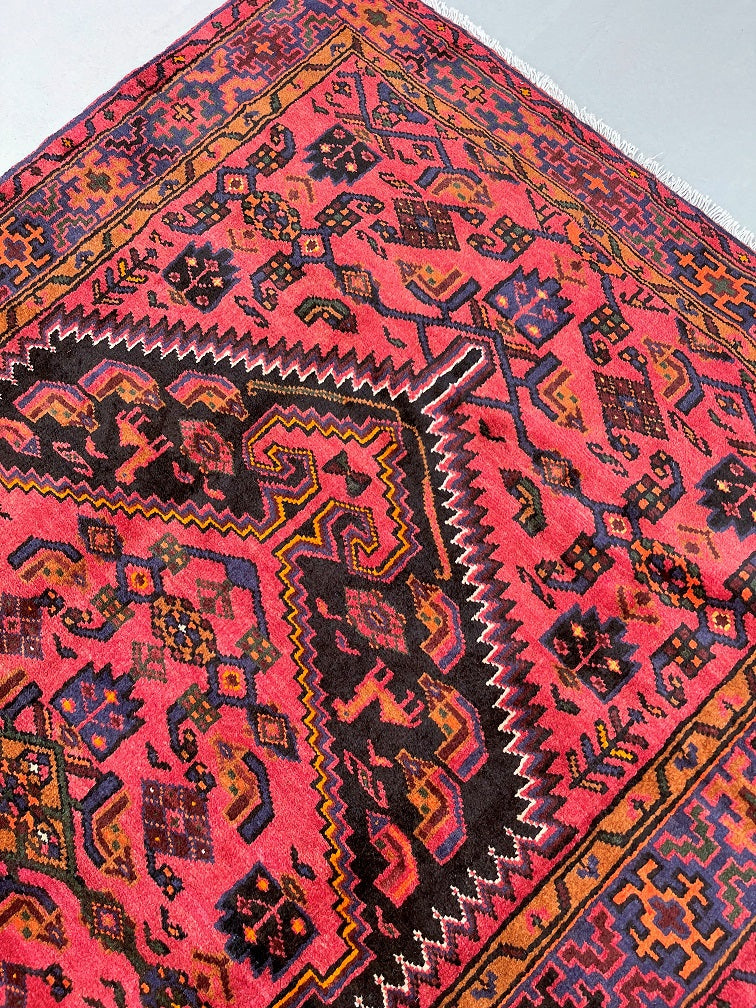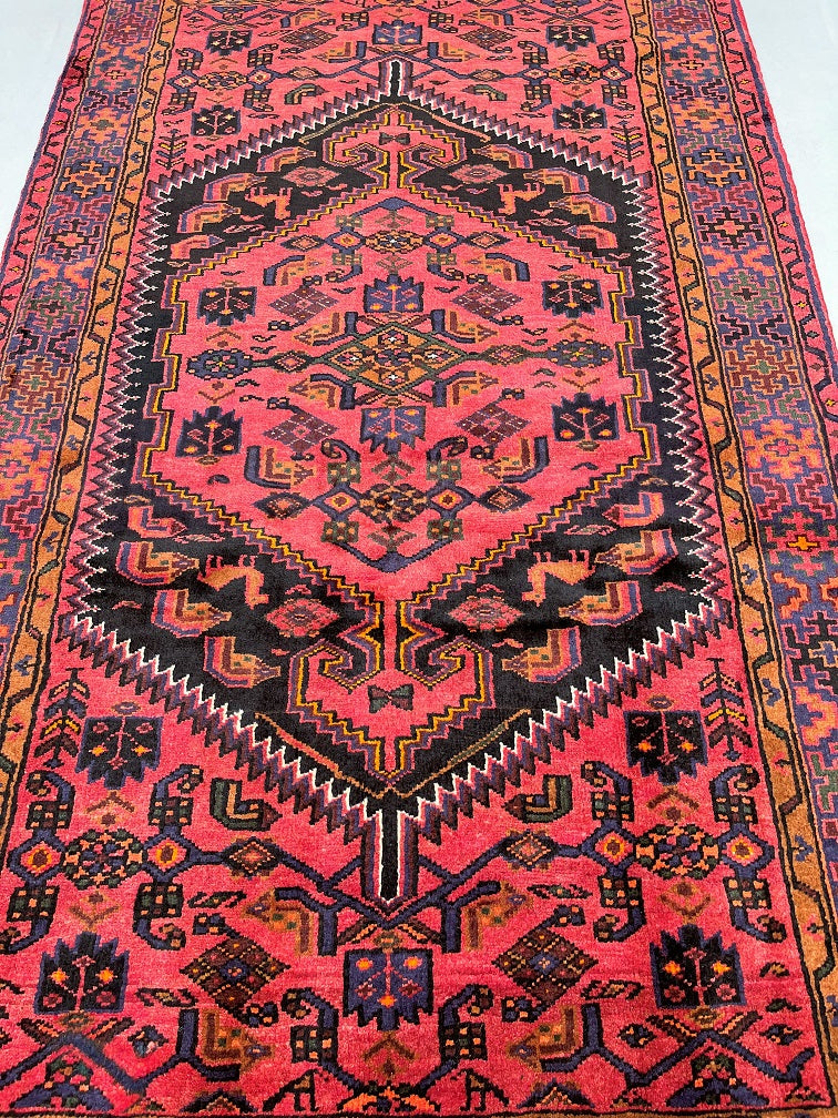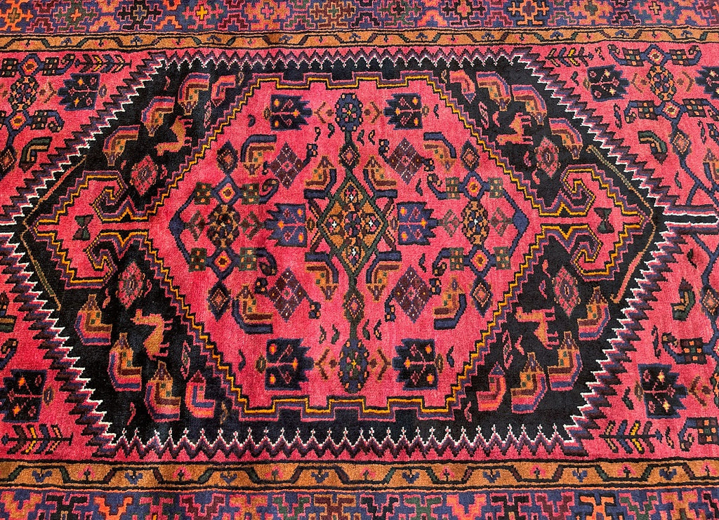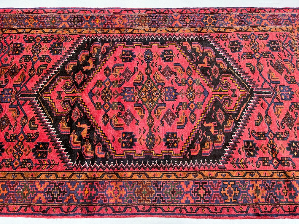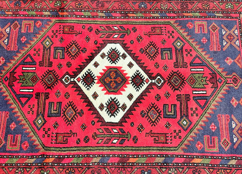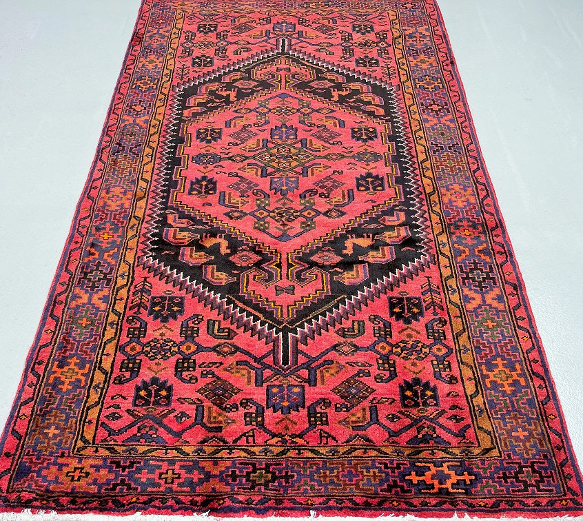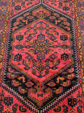 Coffee Table Size Authentic Handmade Tribal Persian Zanjan Rug. Above All It Has A Pure Hand Spun Wool Pile On Cotton Base. It Also Has A Pinkish Red, Black, Purple Blue, Beige, Orange, Green And Mustard Tone Dyed Using Traditional Methods.