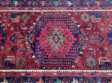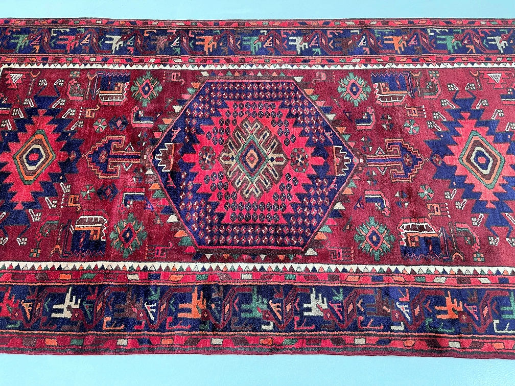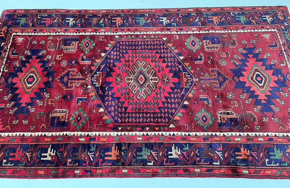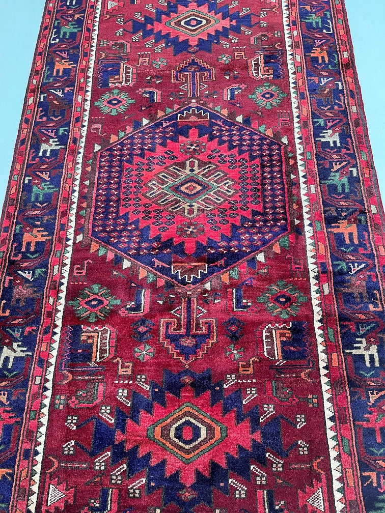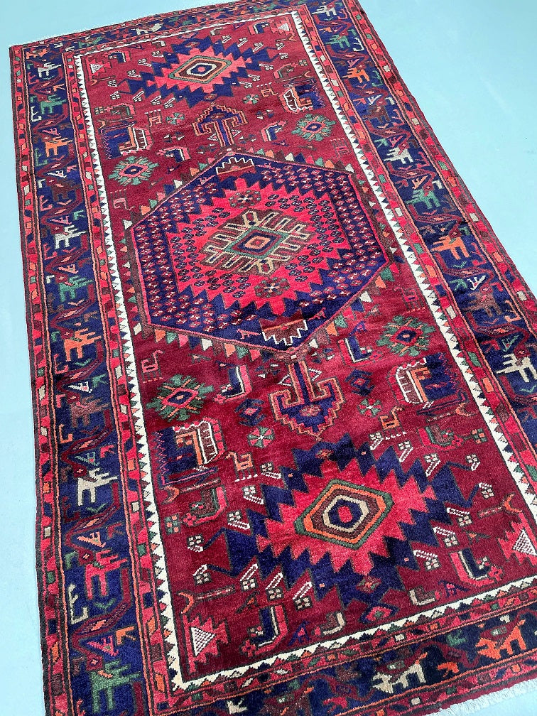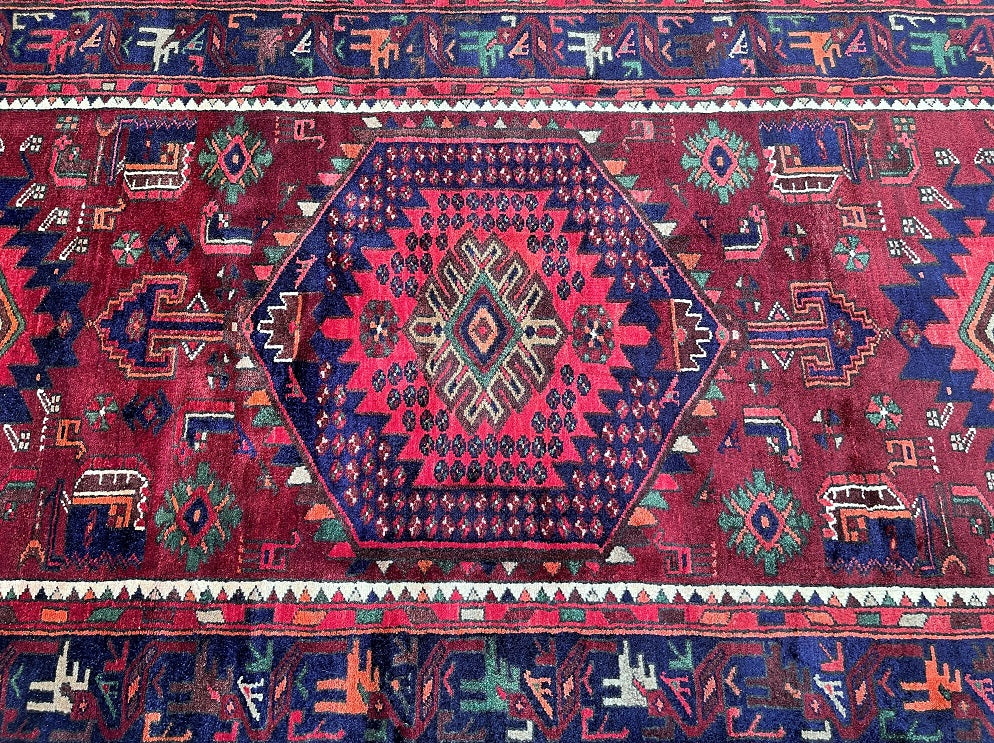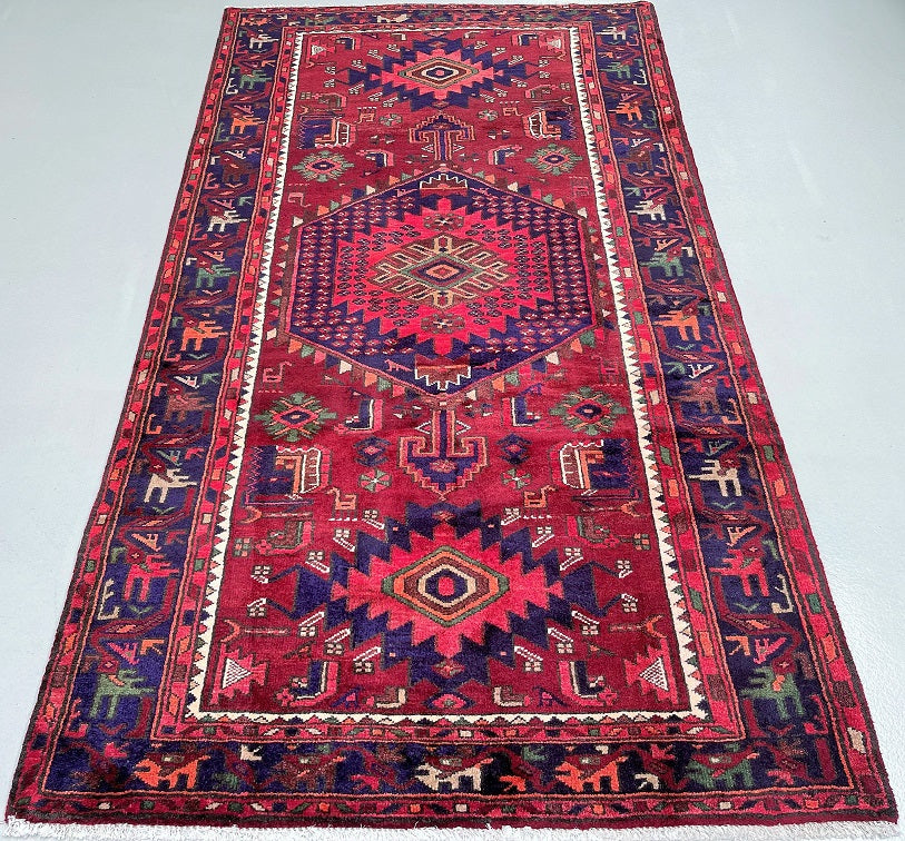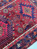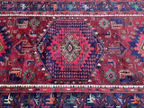 Collectable Coffee Table To Room Size Authentic Handmade Persian Zanjan Rug. Above All It Is A Very Versatile Size Which Could Also Be Used As A Wide Runner Or Entry Rug. It Also Has A Pure Hand Spun Wool Pile On Cotton Base. Rustic Red, Indigo Blue, Peach, Pink, Green With A Hint Of Purple Tone Dyed Using Traditional Methods.