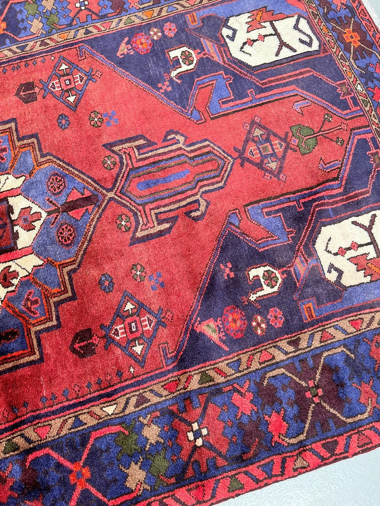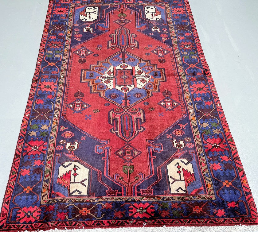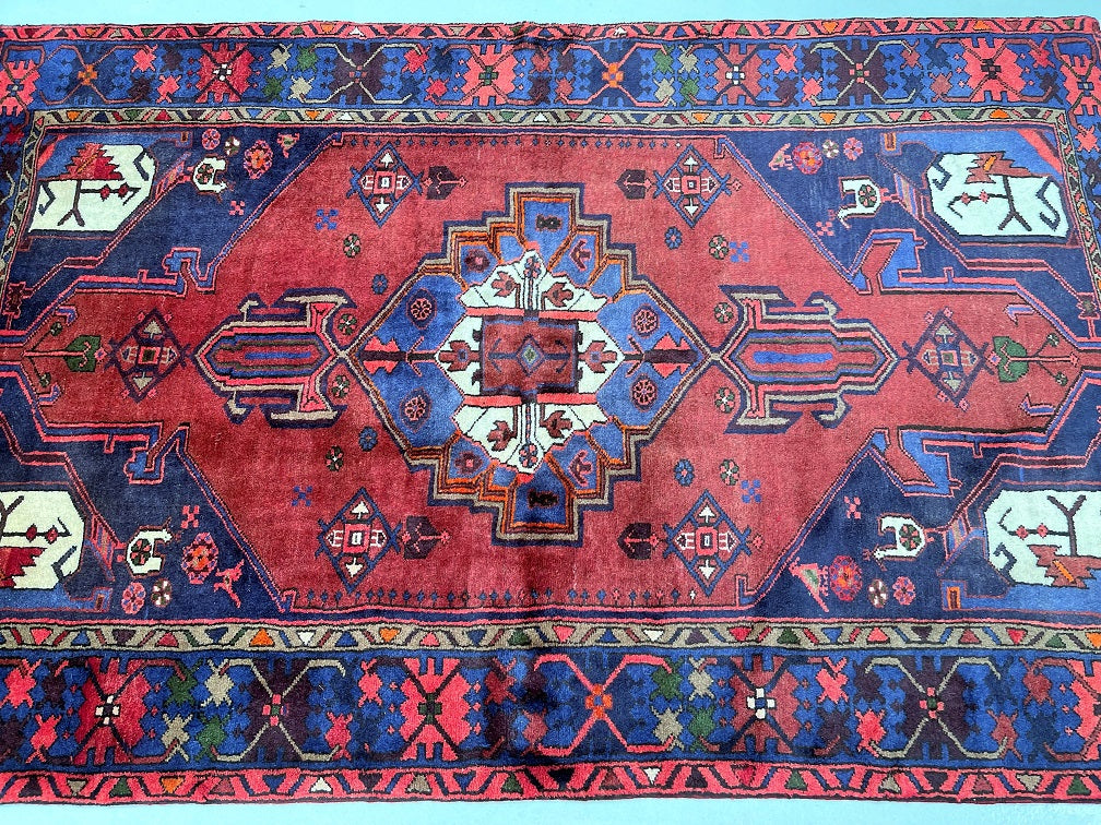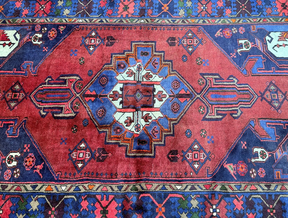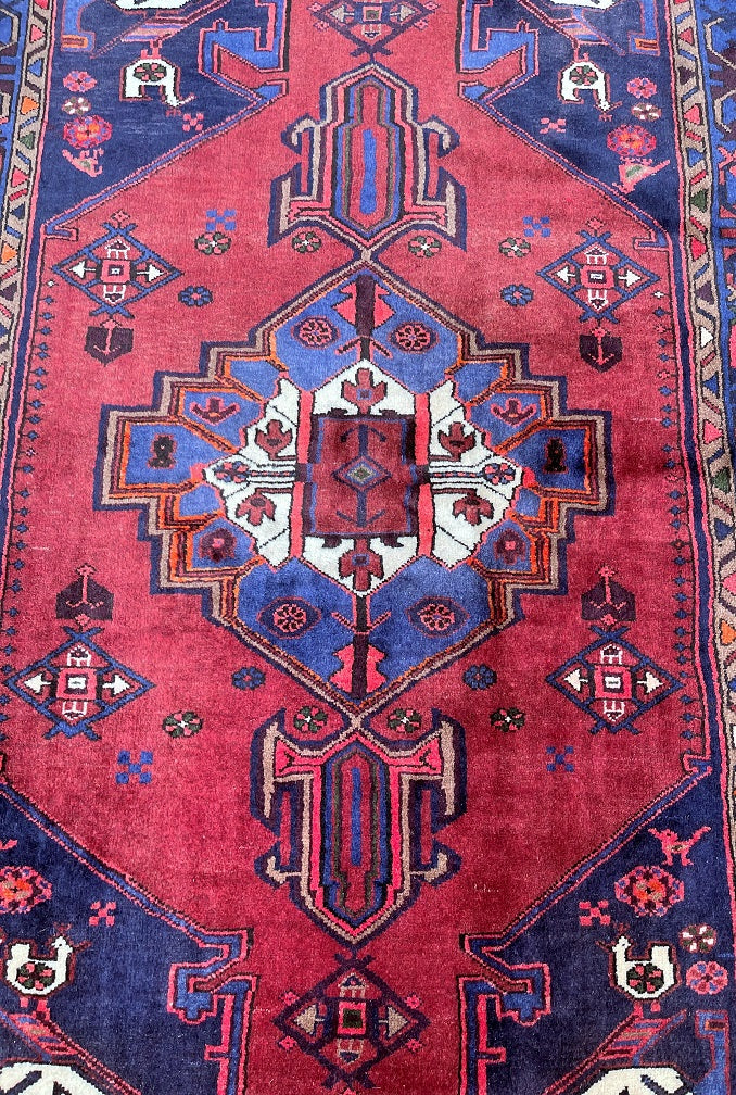 Collectable Authentic Handmade Tribal Persian Zanjan Rug. Above All It Has A Pure Hand Spun Wool Pile On Cotton Base. It Also Has Terracotta Red, Blue, Beige, Green, Pink And Brown Tone Dyed Using Traditional Methods.