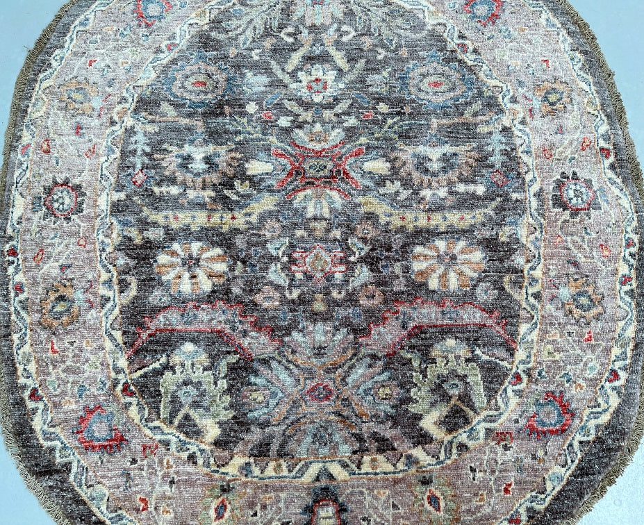 Amazing Room Size Genuine Hand Knotted Afghan Chobi Oval Rug. Above All It Is Very Hard To Weave Oval carpets. Pure Lamb’s Wool Pile On Cotton Base. Brown, Beige, Gold, Terracotta And Green Tone Dyed Using Traditional Methods (Vegetable Dyes). Last Of True Woven Tribal Art.