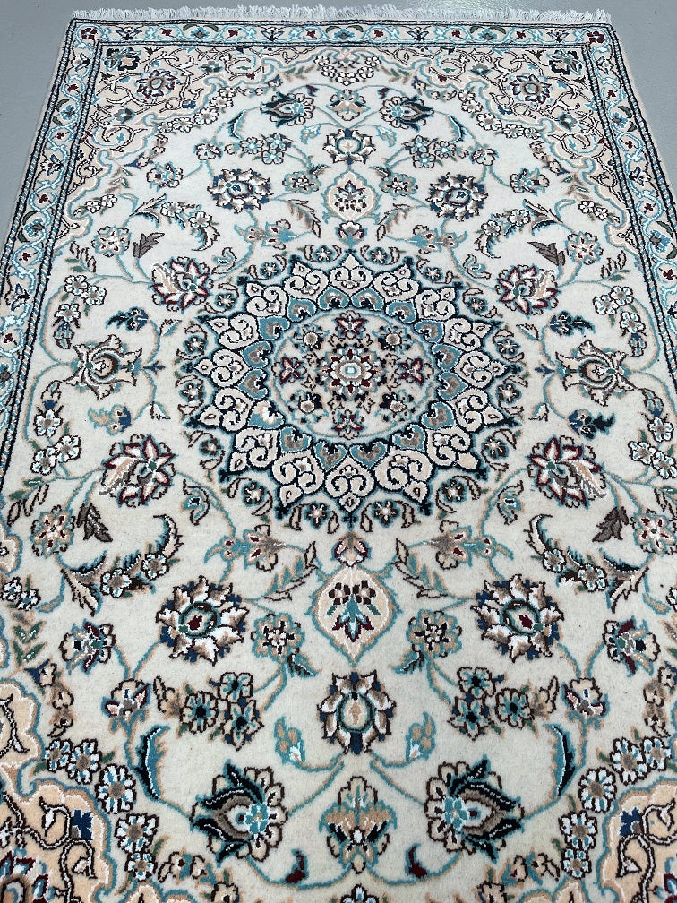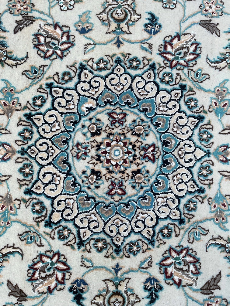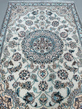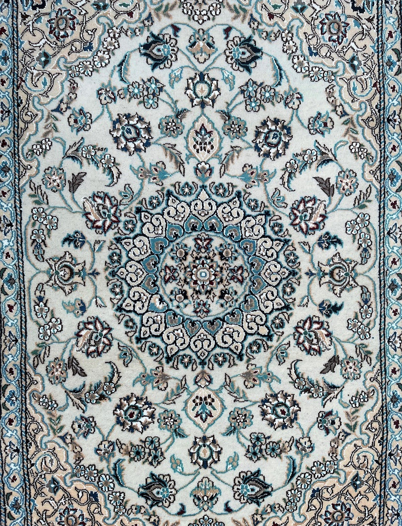 Fine Authentic Hand Knotted Persian Nain Rug. Above All It Has A Dense Pure Wool Pile On Cotton Base. It Also Has A Beige, Light Blue, Grey With touch Of Cream, Black And Burgundy Tone Dyed Using Traditional Methods.