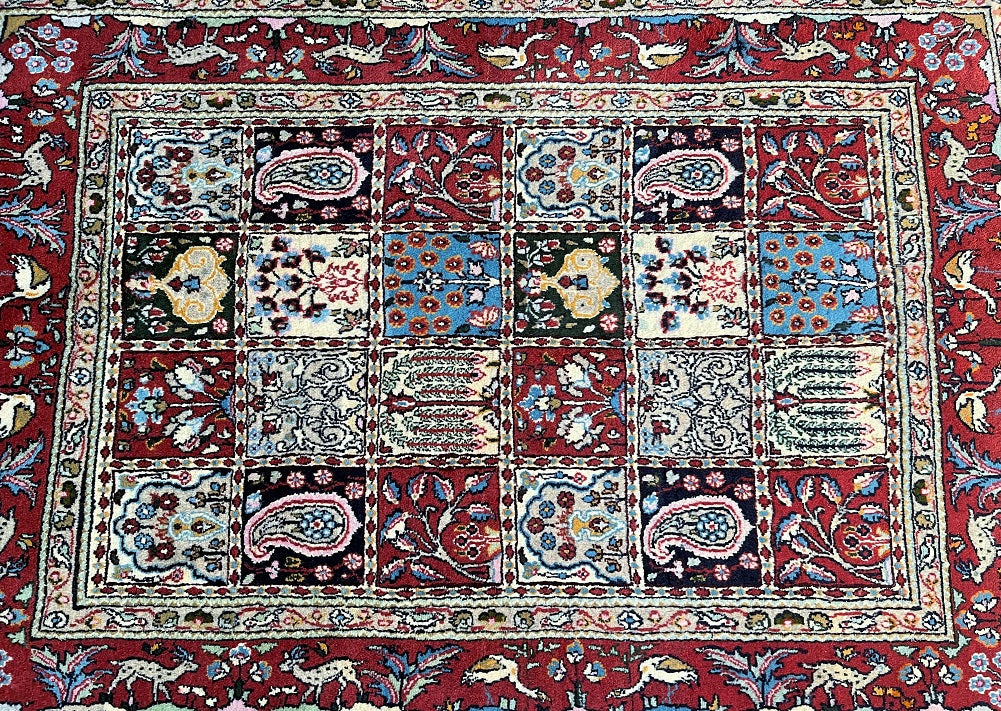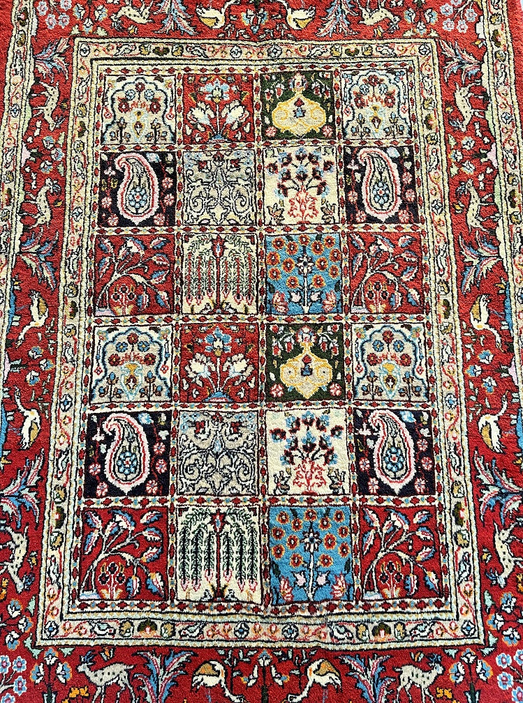 Genuine Handmade Persian Birjand Rug. Lamb’s Wool Pile on Fine Cotton Base. It Has a Multi-Color Tone Dyed Using Traditional Methods.