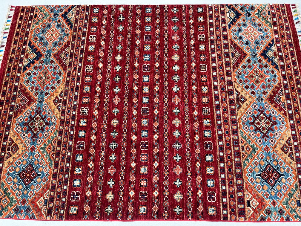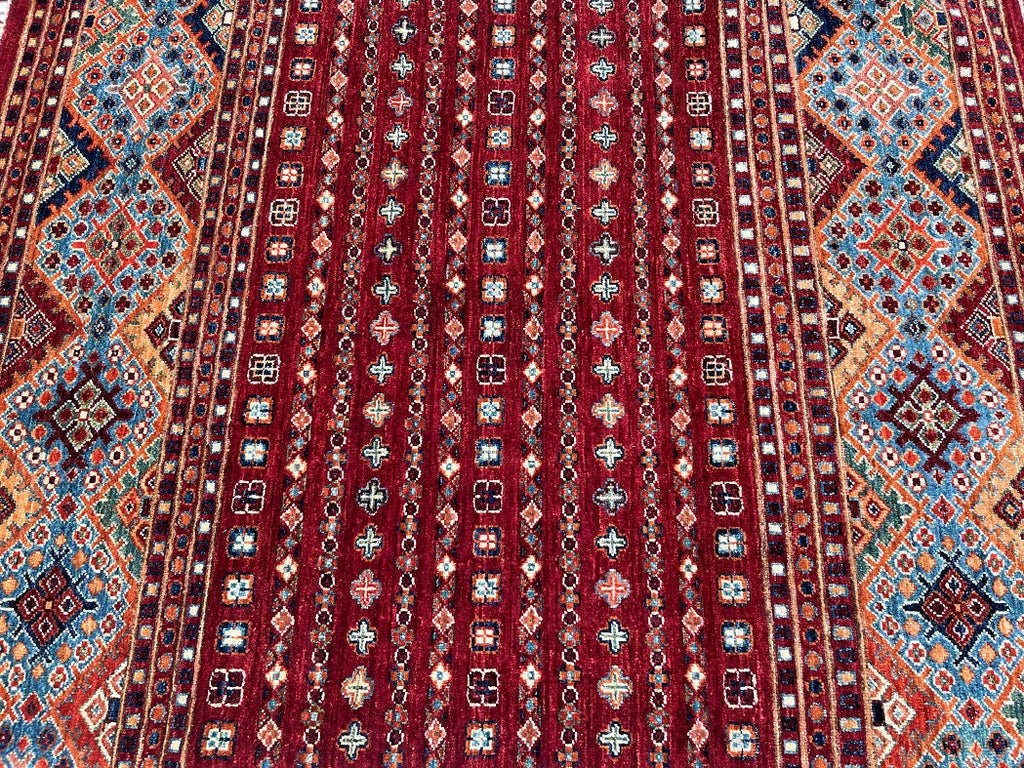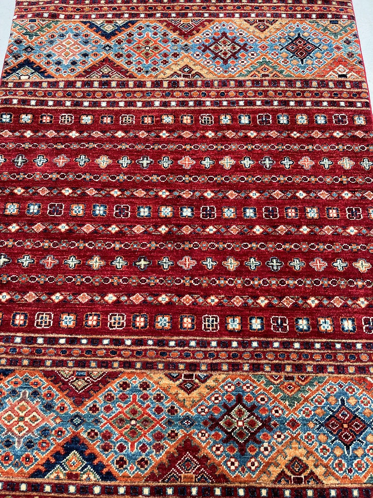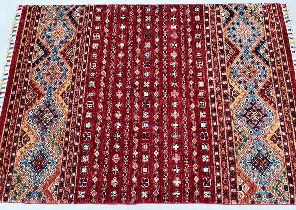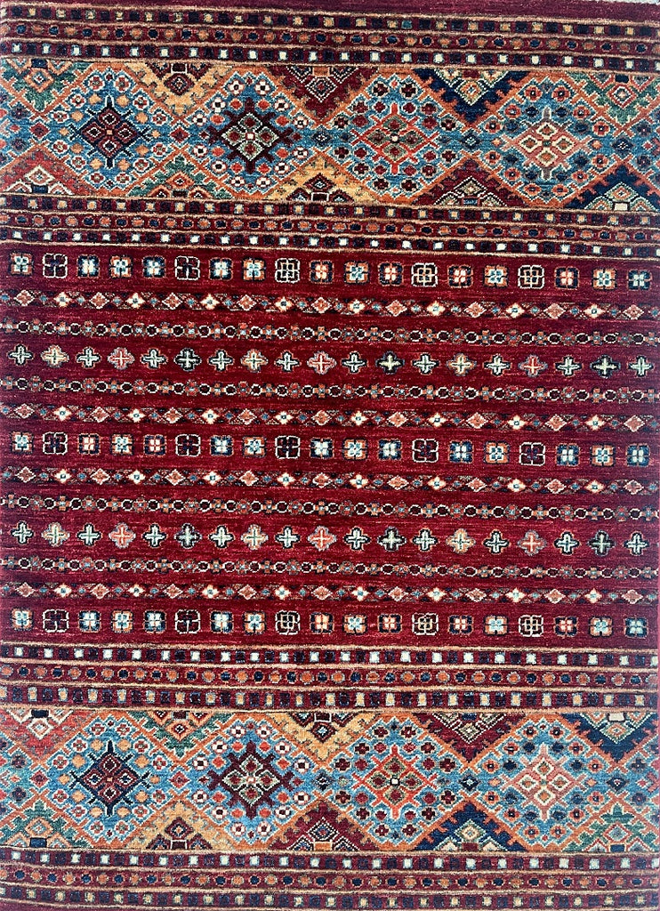 Decorative Hand Knotted Afghan Super Kazak Rug. Above All It Has A Pure Hand Spun Wool Pile On Cotton Base. Maroon Tone Dyed Using Traditional Methods (Vegetable Dyes). Last of True Woven Nomadic Art.