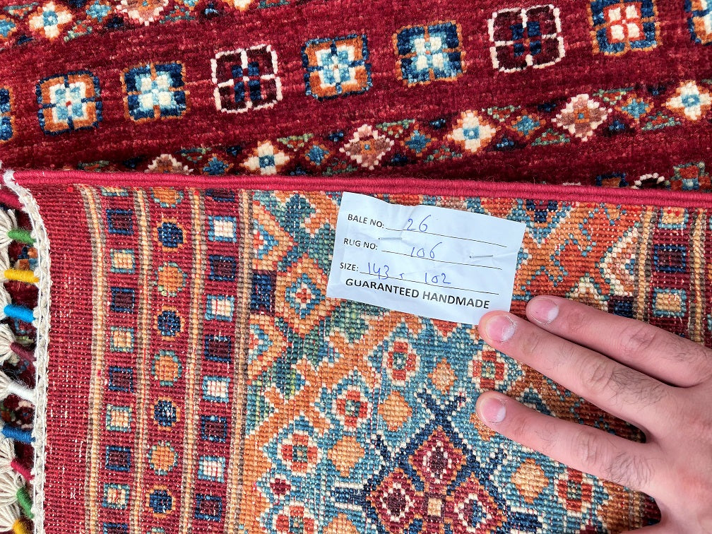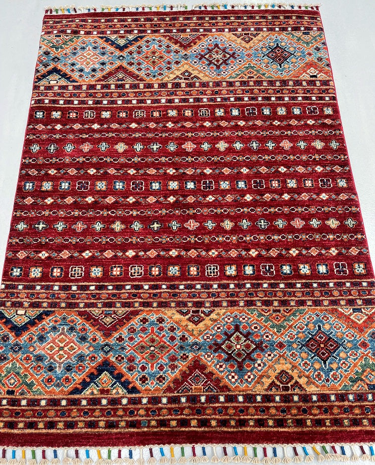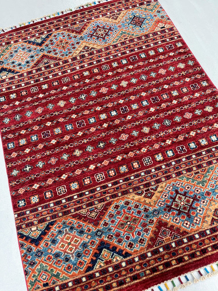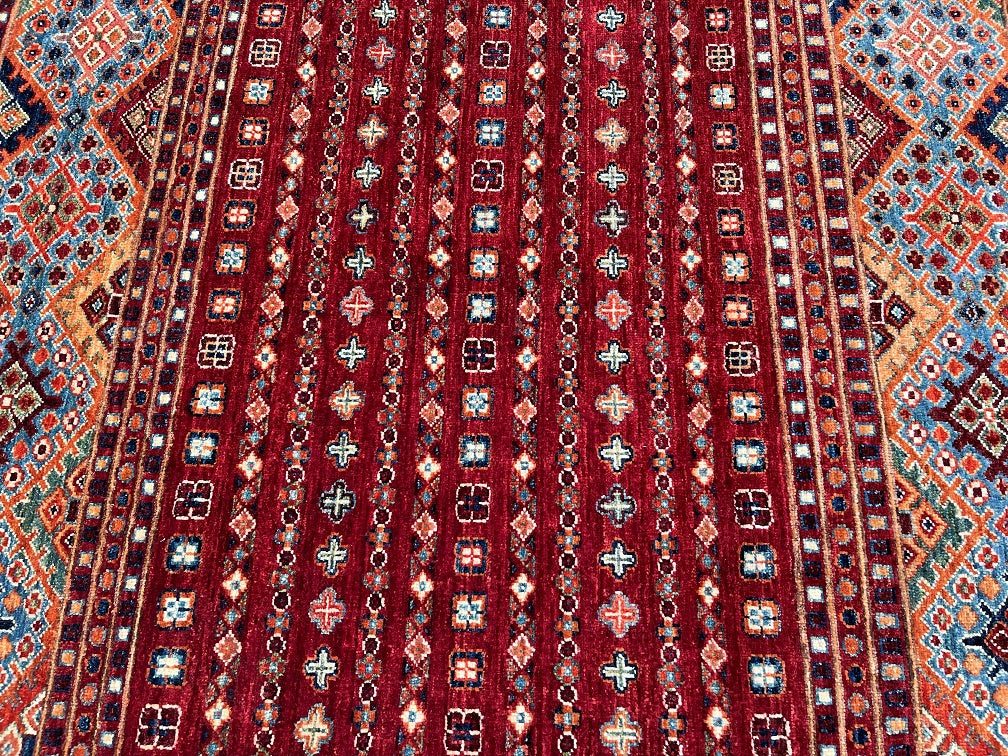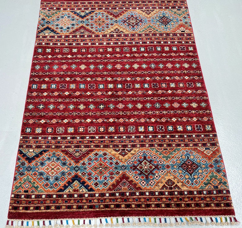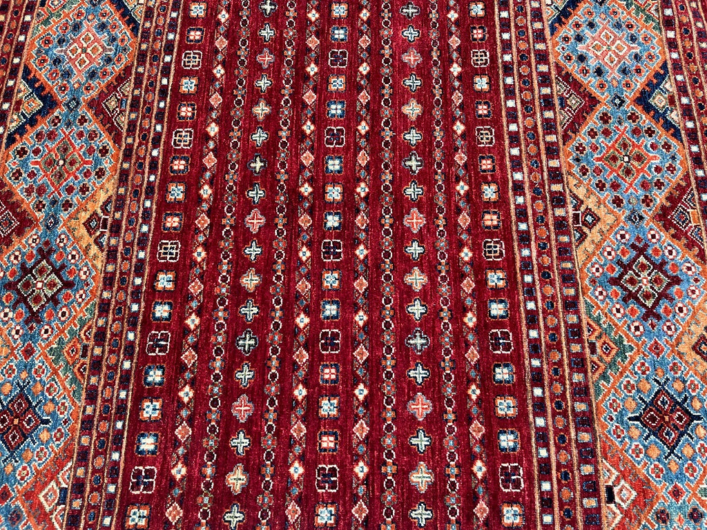 Decorative Hand Knotted Afghan Super Kazak Rug. Above All It Has A Pure Hand Spun Wool Pile On Cotton Base. Maroon Tone Dyed Using Traditional Methods (Vegetable Dyes). Last of True Woven Nomadic Art.