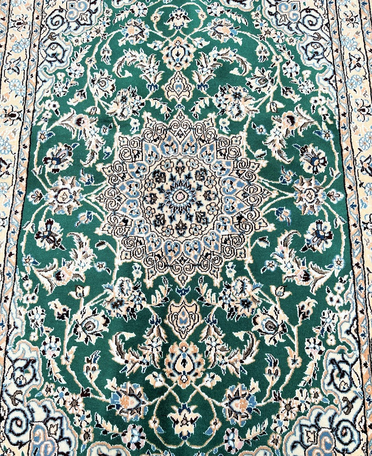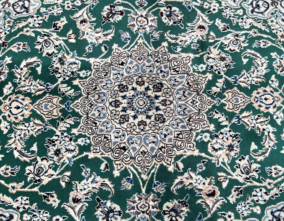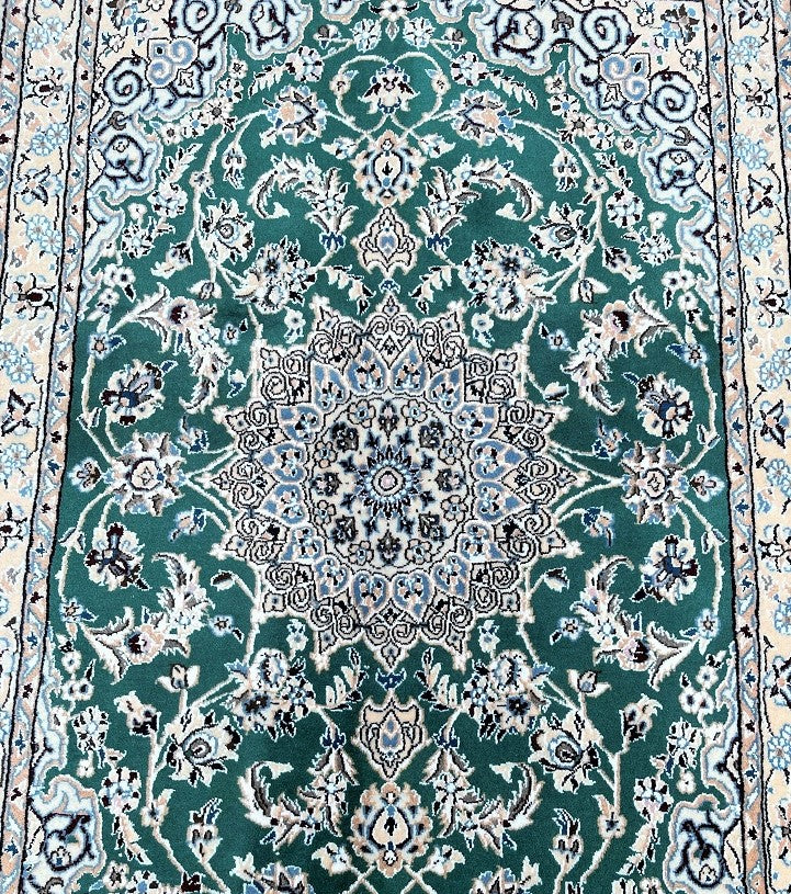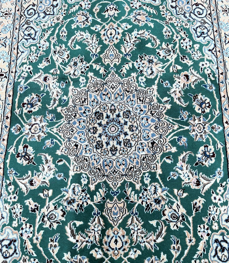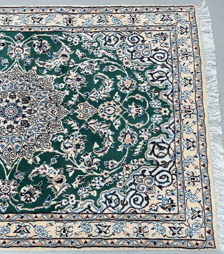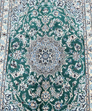 Superfine Authentic Hand Knotted Persian Nain Rug. Above All It Has A Lamb’s Wool Pile On Cotton Base. Green, Beige, Burgundy, Cream, Black And Blue Tone Dyed Using Traditional Methods.