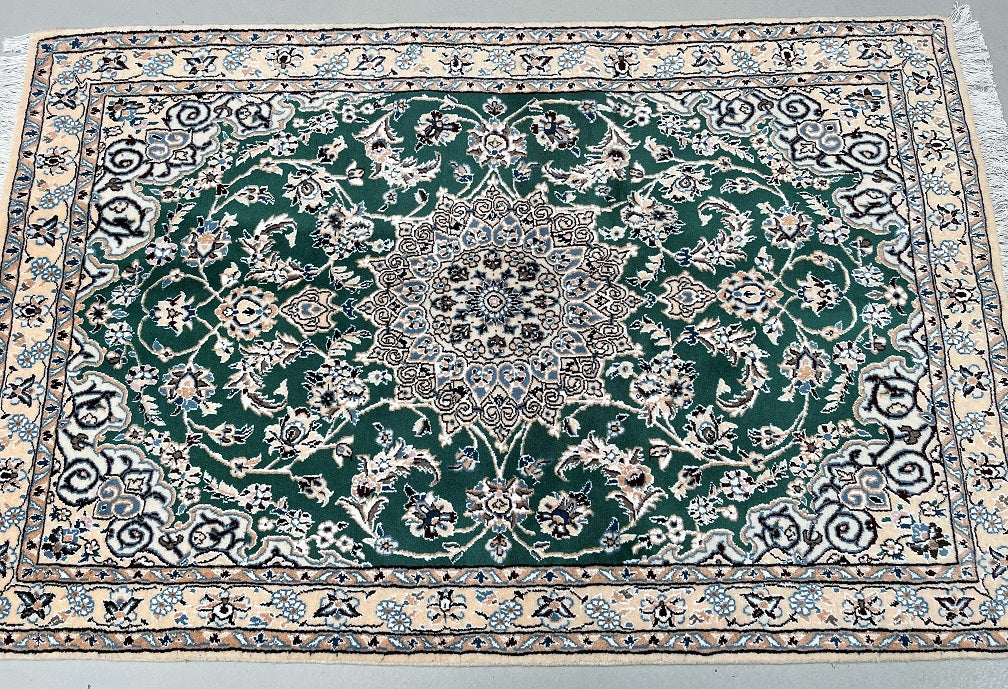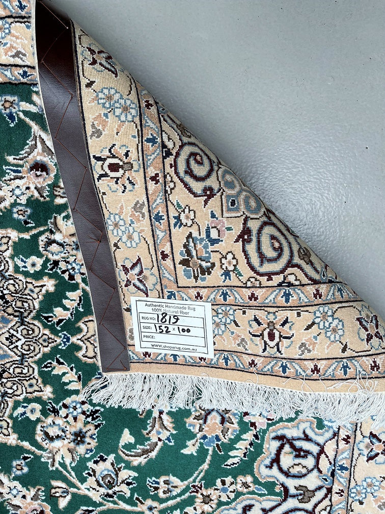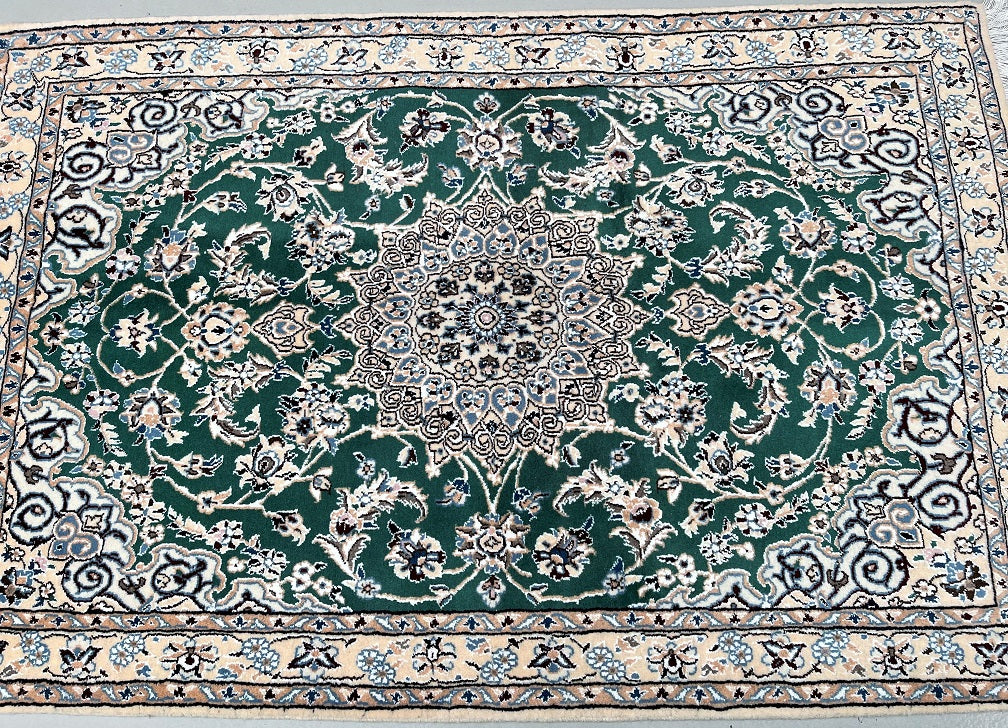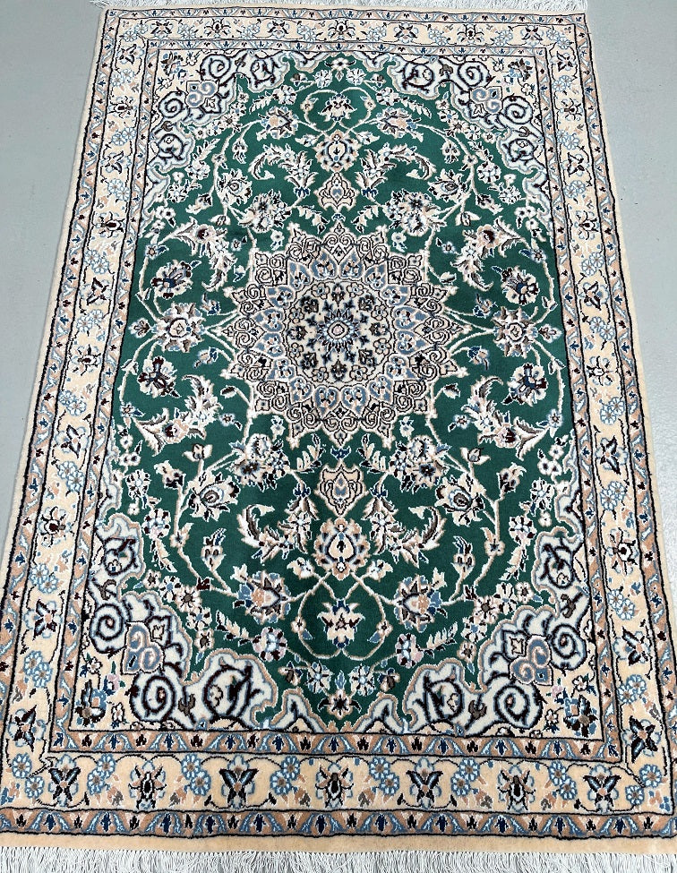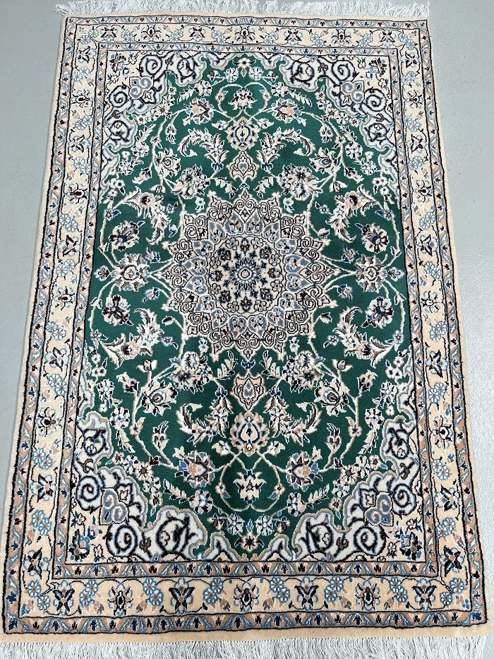 Superfine Authentic Hand Knotted Persian Nain Rug. Above All It Has A Lamb’s Wool Pile On Cotton Base. Green, Beige, Burgundy, Cream, Black And Blue Tone Dyed Using Traditional Methods.