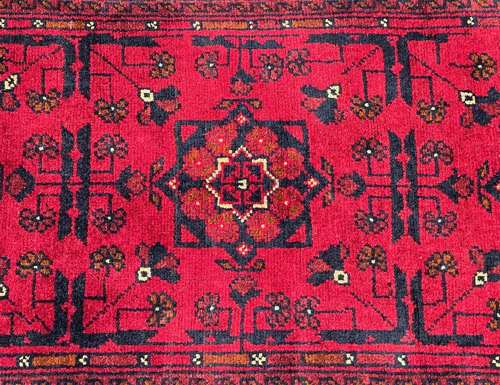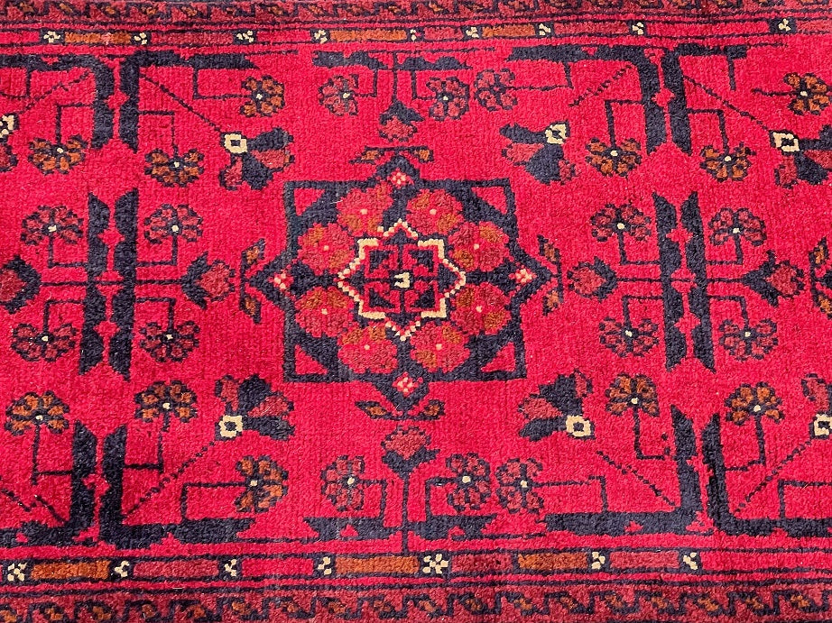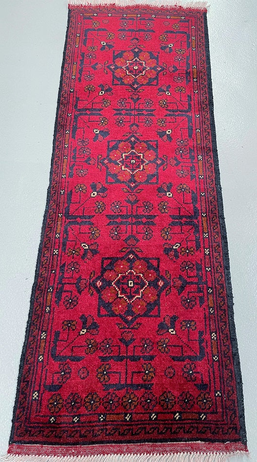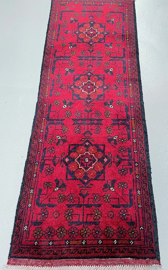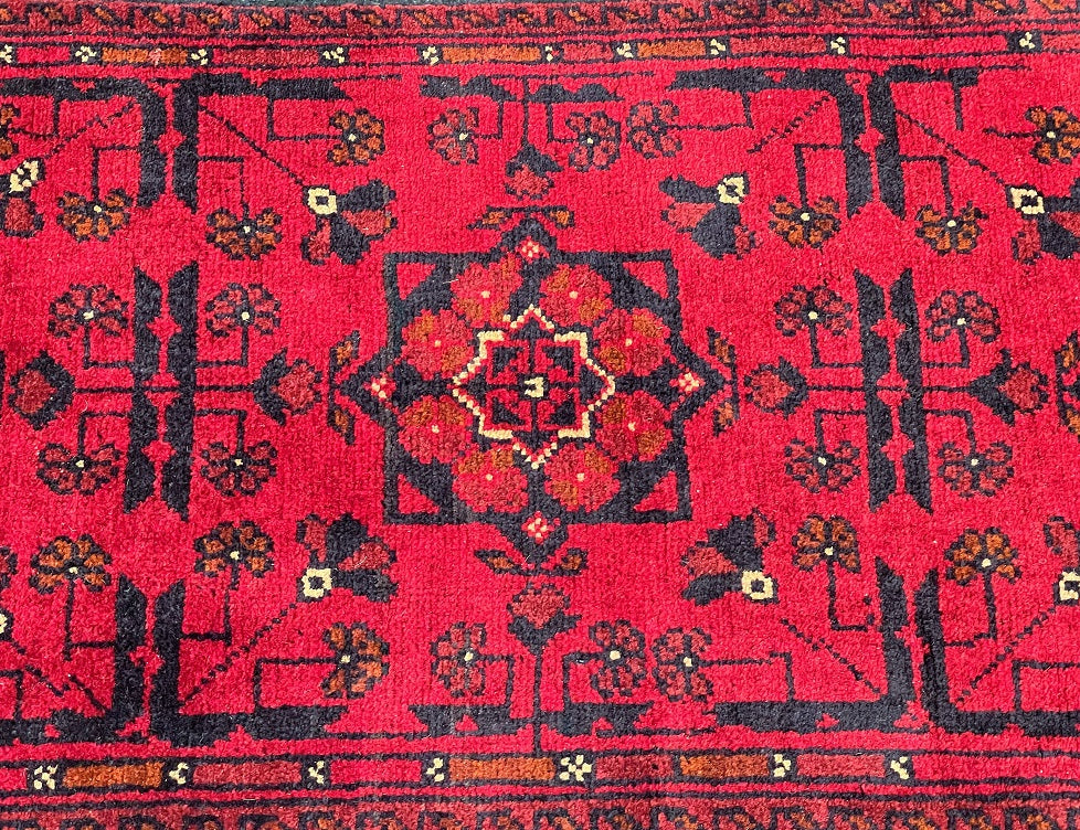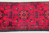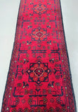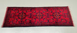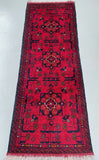 Authentic Handmade Afghan Kunduz Narrow Runner. Above All It Has A Pure Hand Spun Wool Pile On Wool Base. Maroon And Black/Indigo Blue Tone Dyed Using Traditional Methods (Vegetable Dyes). Last Of True Woven Tribal Art.