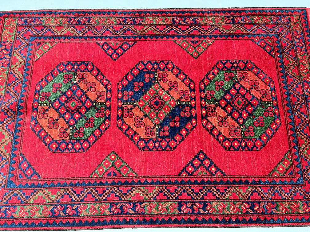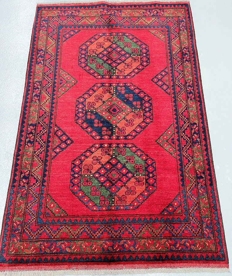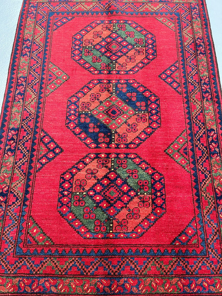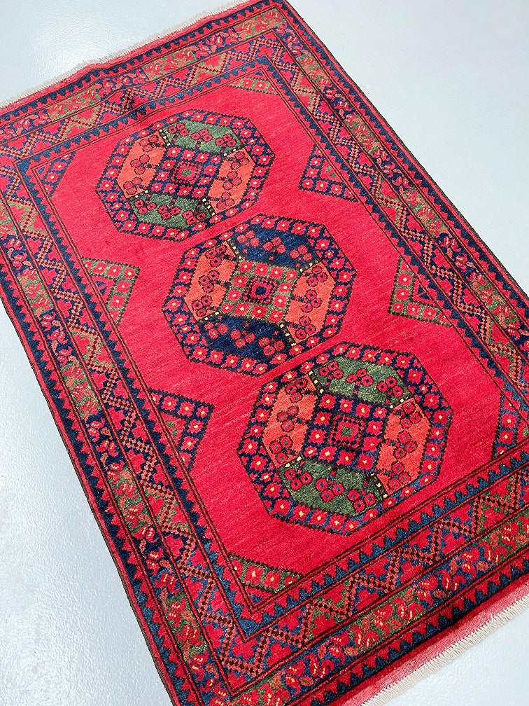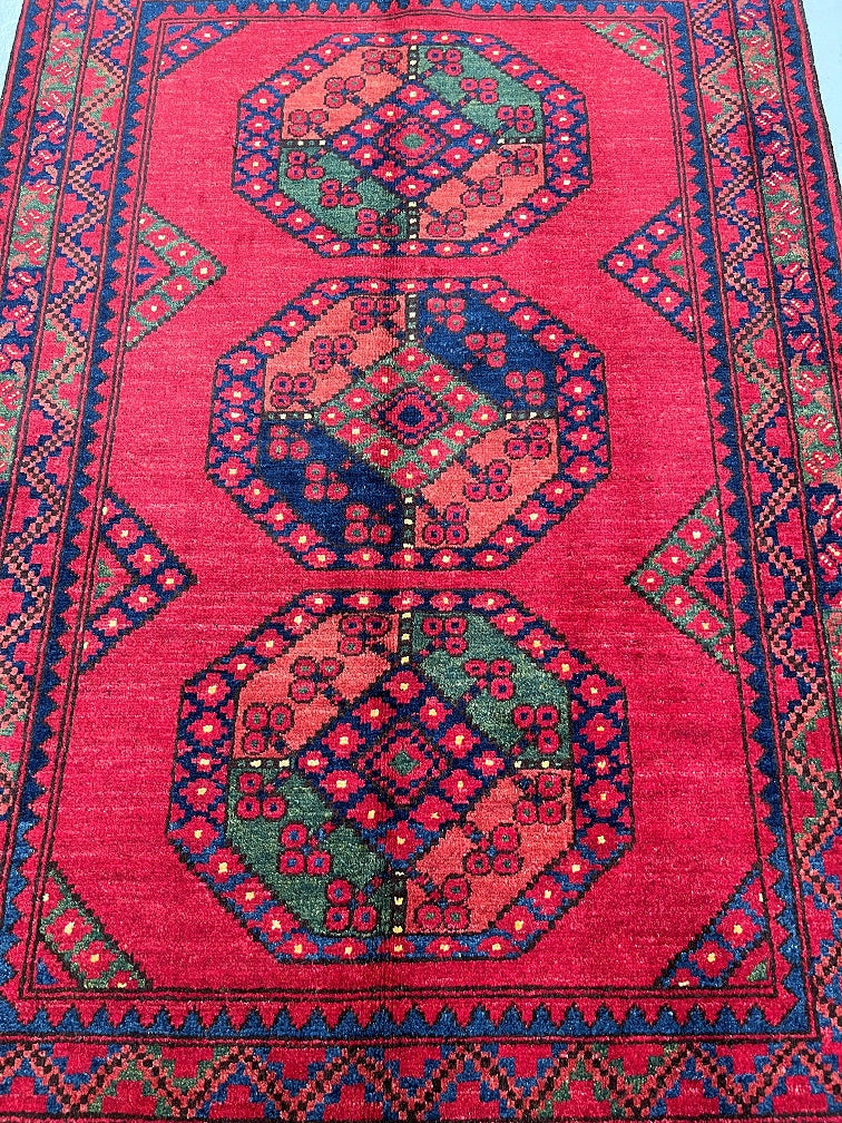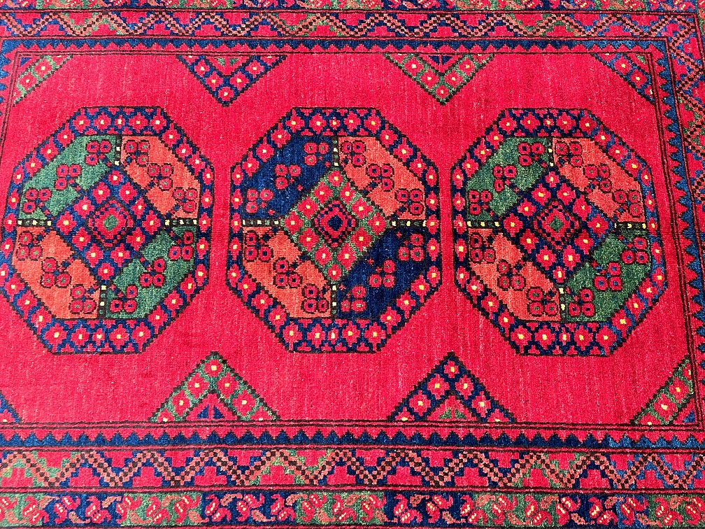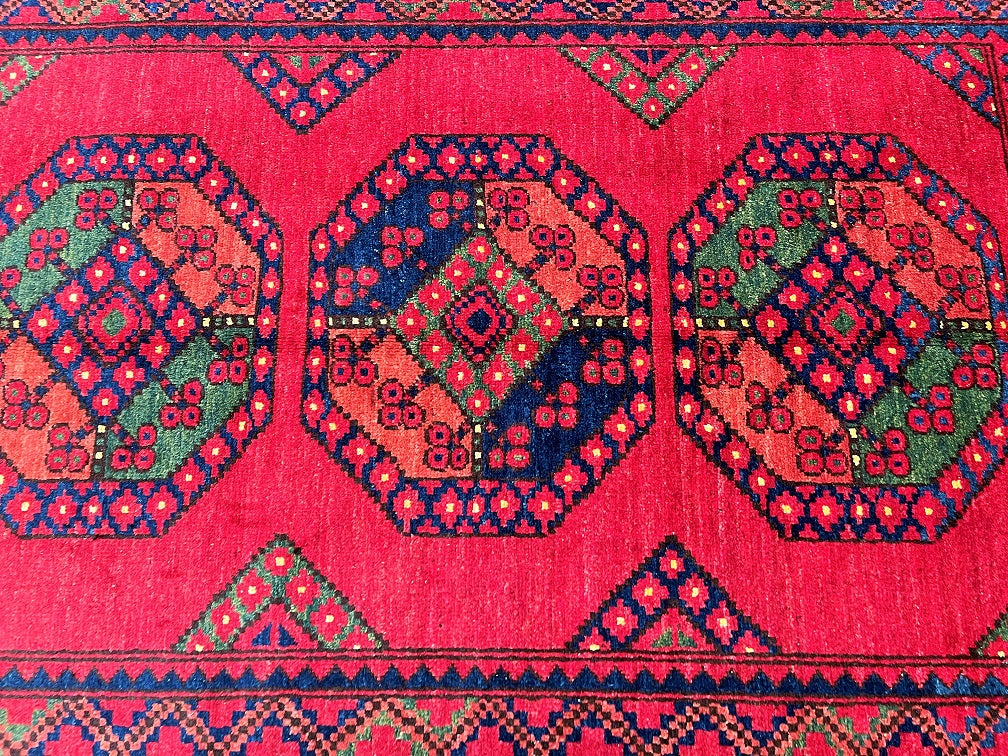 Fine Lamb’s Wool Pile On Cotton Base Afghan Ersari Rug. Burnt Terracotta/Maroon Background Dyed Using Traditional Methods. Last Of True Woven Nomadic Art.