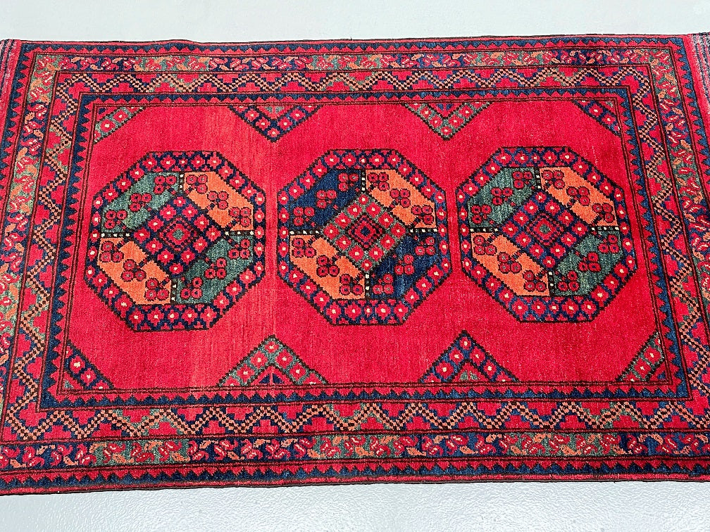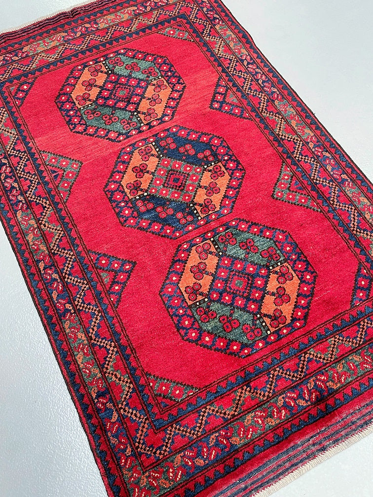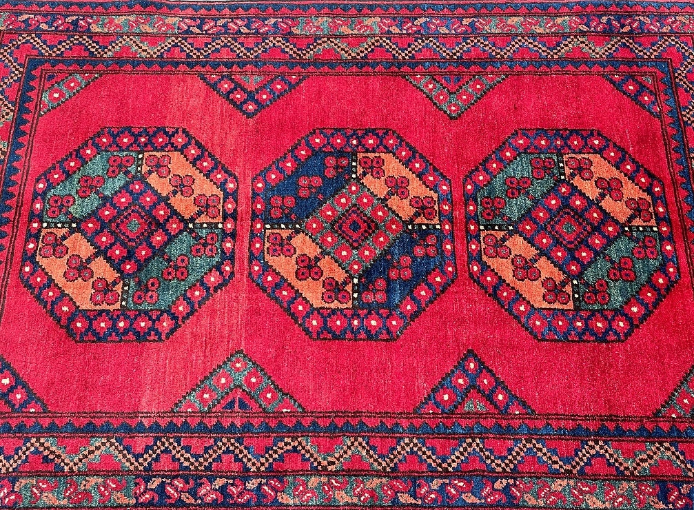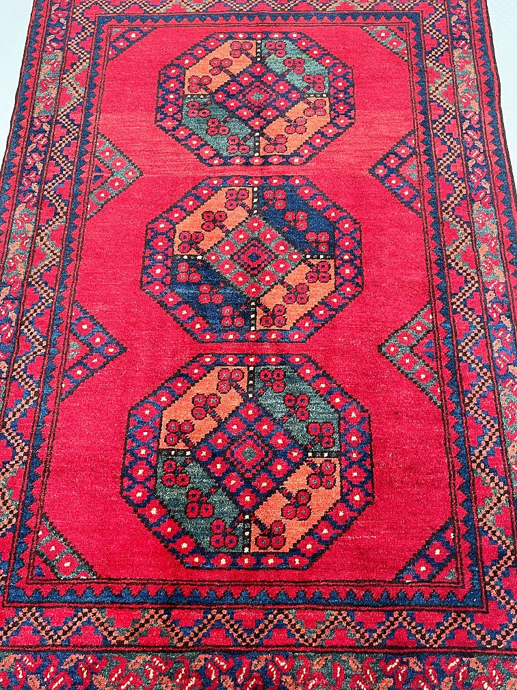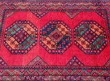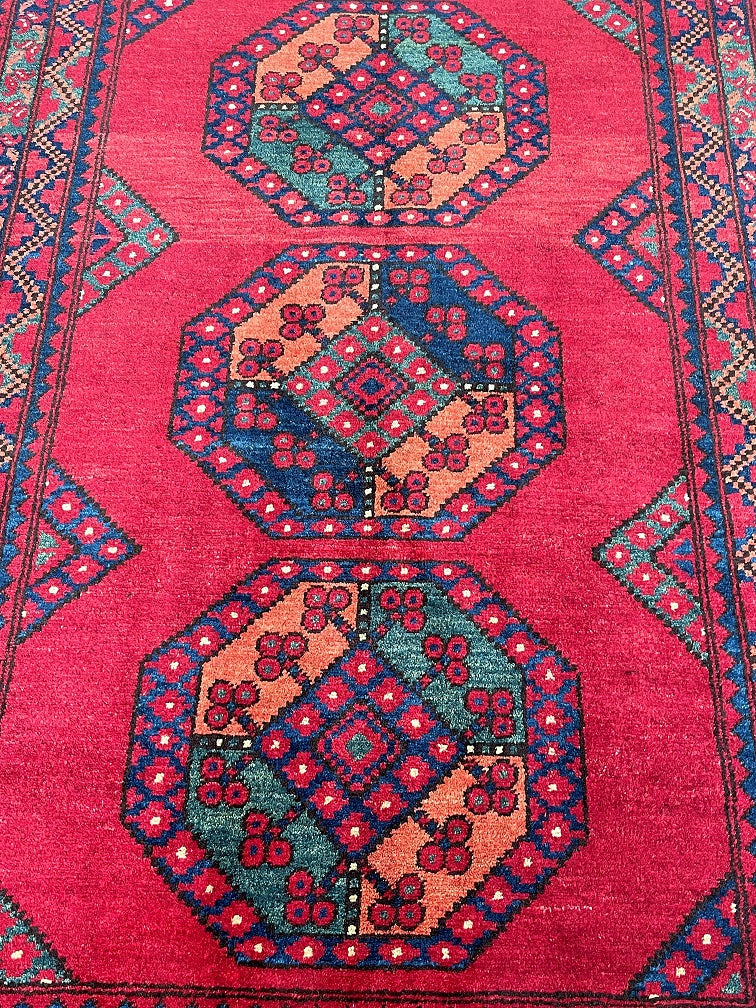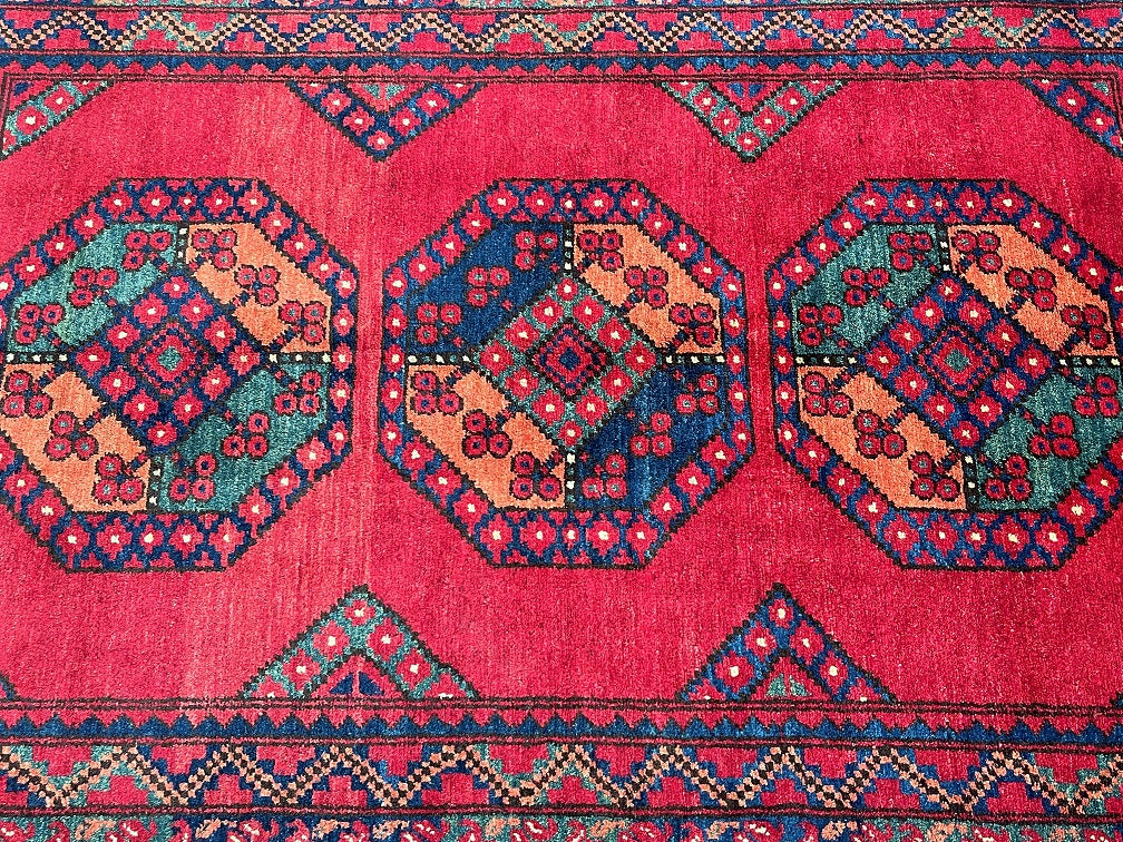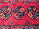 Rare Nomadic Authentic Hand Knotted Afghan Ersari Rug. Above All It Has A Fine Lamb’s Wool Pile On Cotton Base. Burnt Terracotta/Maroon Background Dyed Using Traditional Methods. Last Of True Woven Nomadic Art.