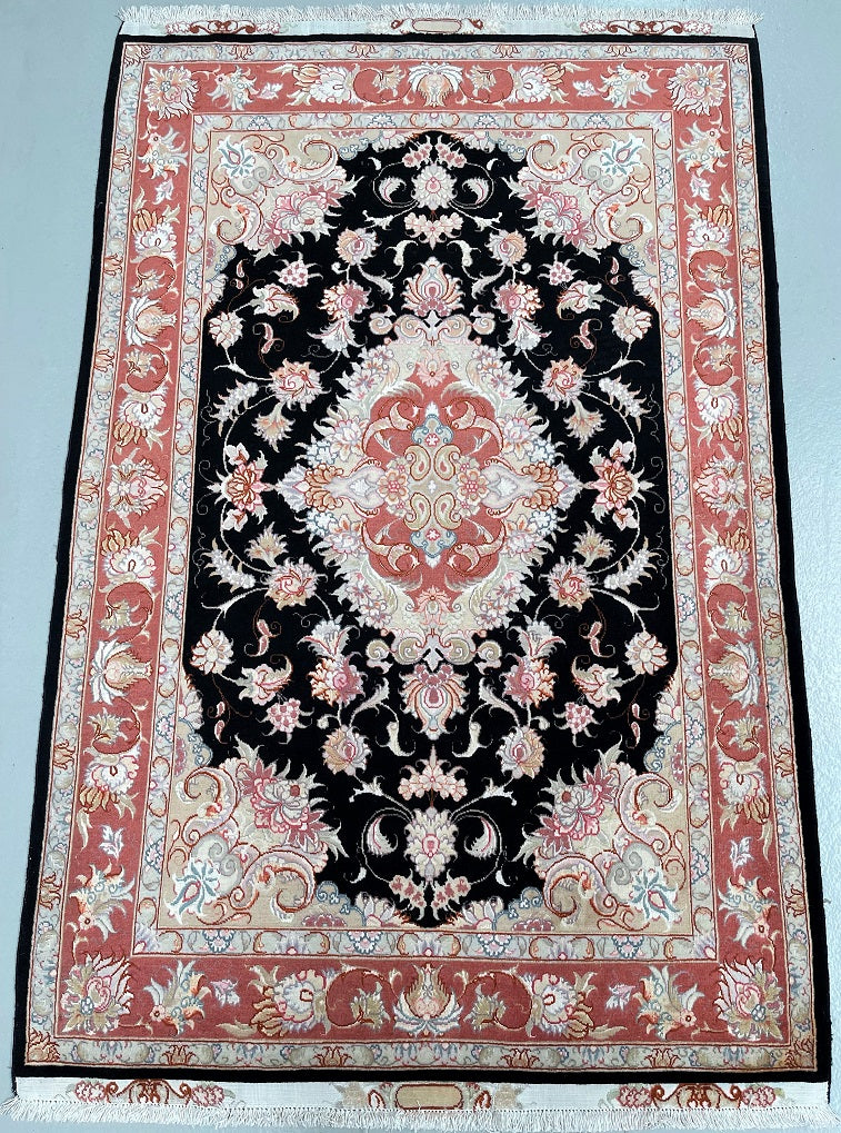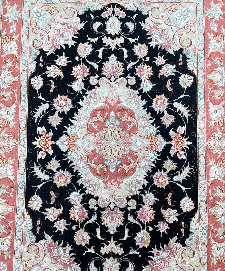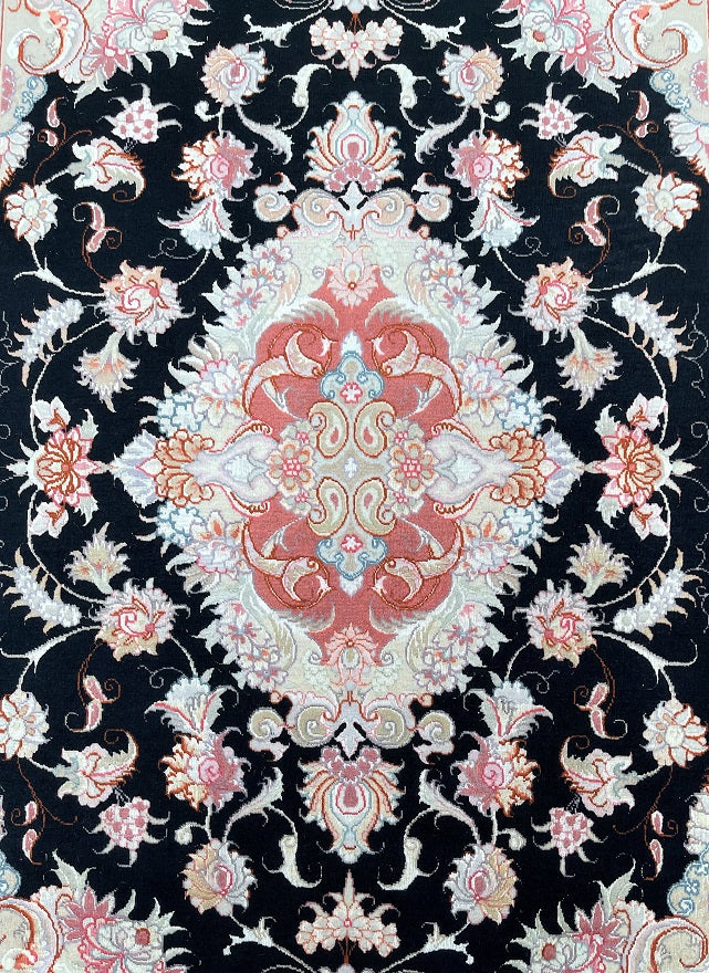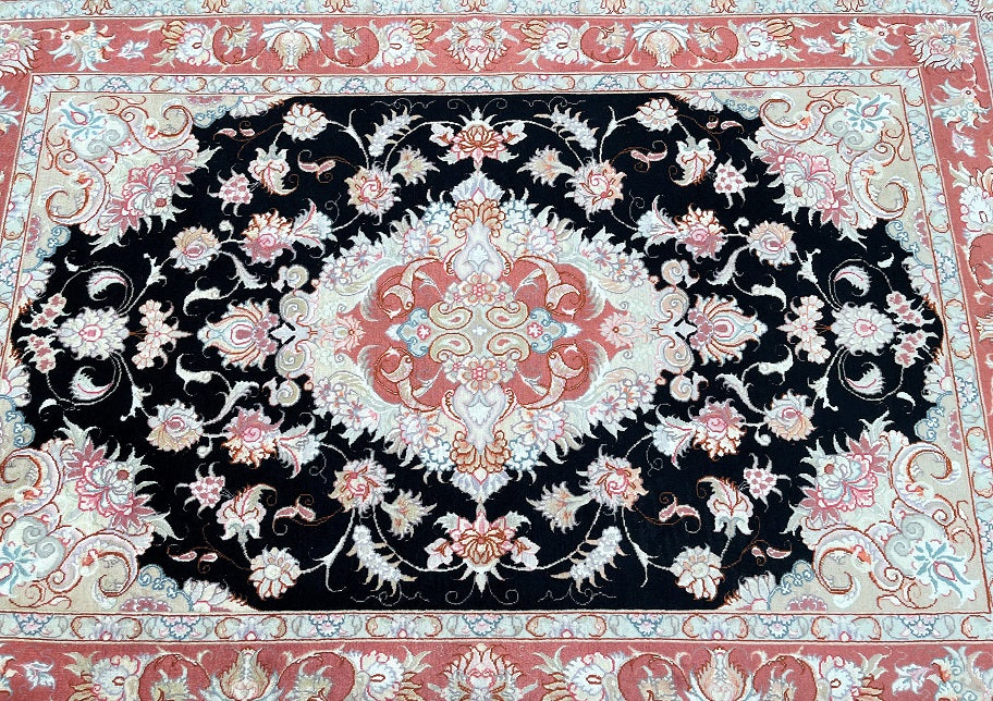 Superb Authentic Handmade Persian Tabriz Rug. Above All It Is Hard To Get This Quality Handmade Rug In Silk Material (More Than 40% Is Silk). Black, Pastel Pink, Aqua And Beige Tone Dyed Using Traditional Methods. It Is Also Pin-Point Quality Weave That Is Considered To Be A Masterpiece (Investment Item).