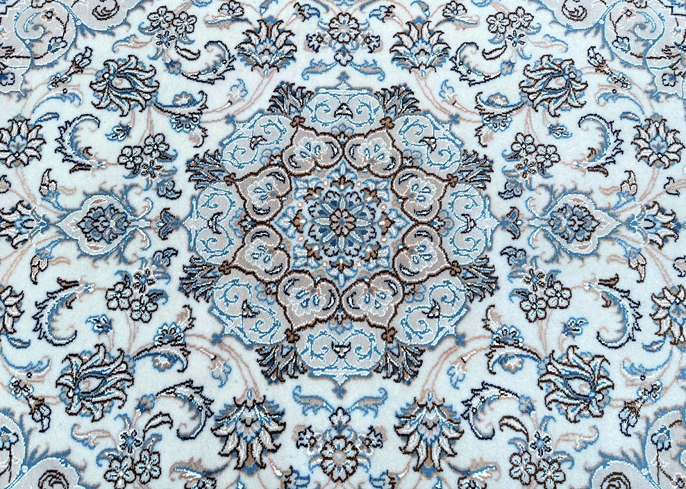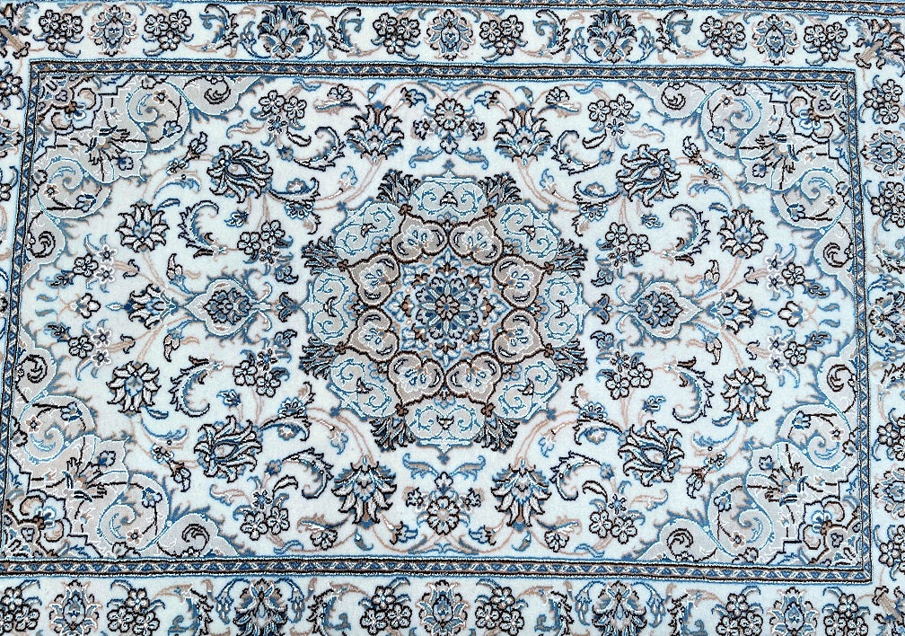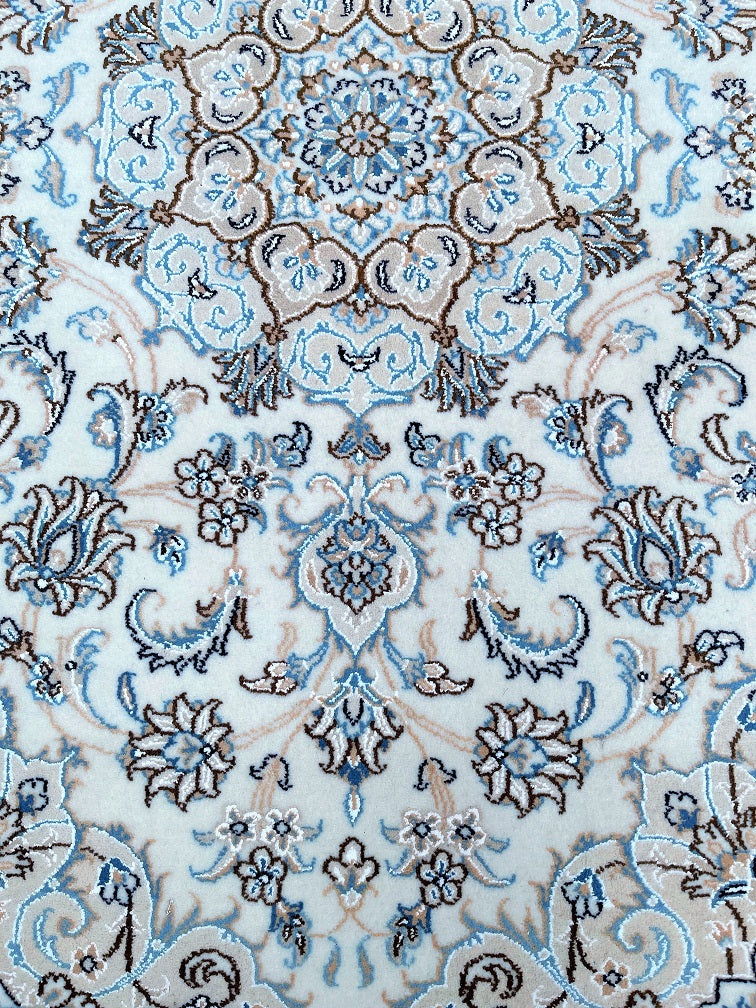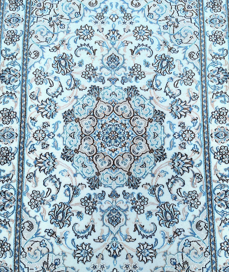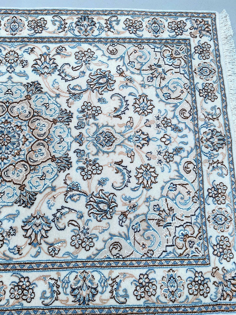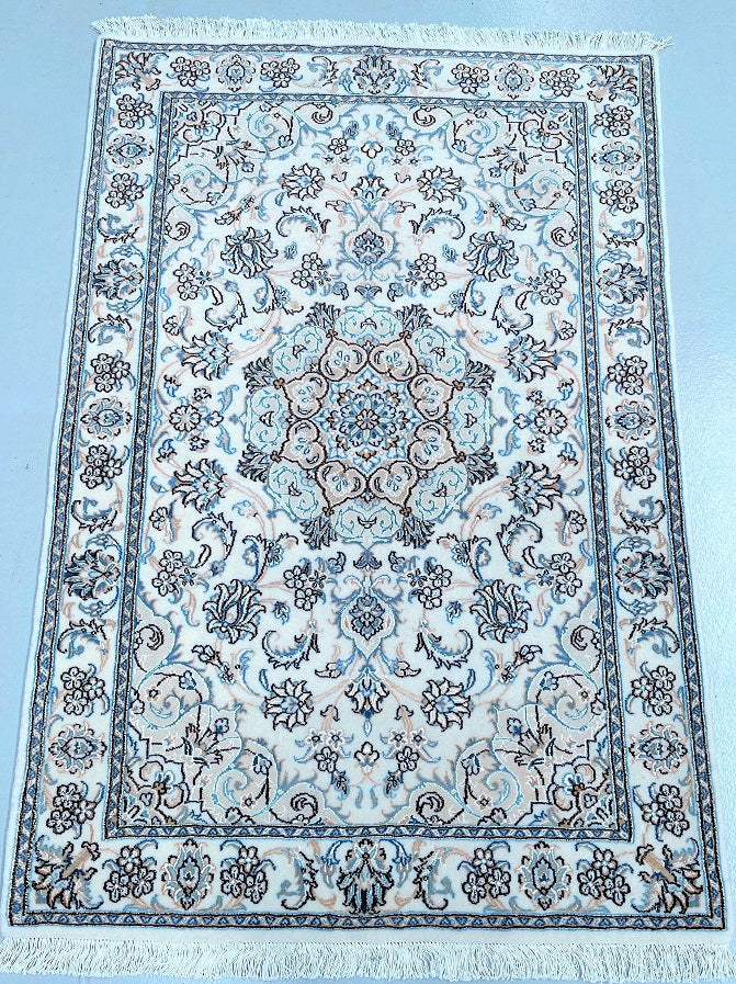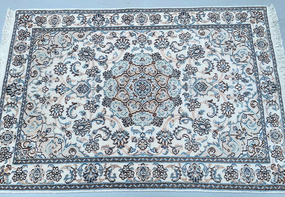 Superb Authentic Hand Knotted Persian Nain Rug. Above All It Has A Dense Pure Wool Pile On Cotton Base. It Also Has A Beige, Light Blue And Brown Tone Dyed Using Traditional Methods.