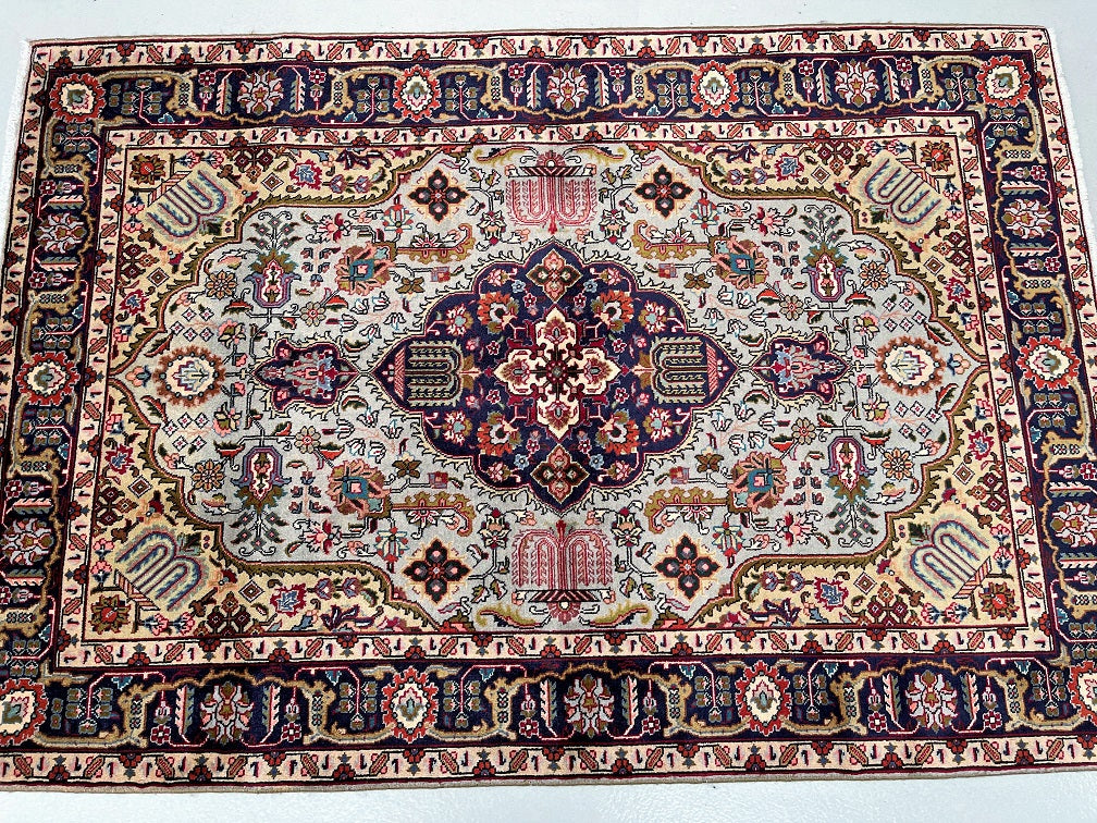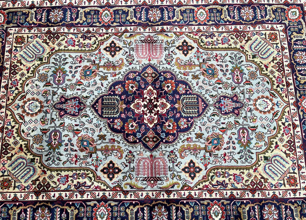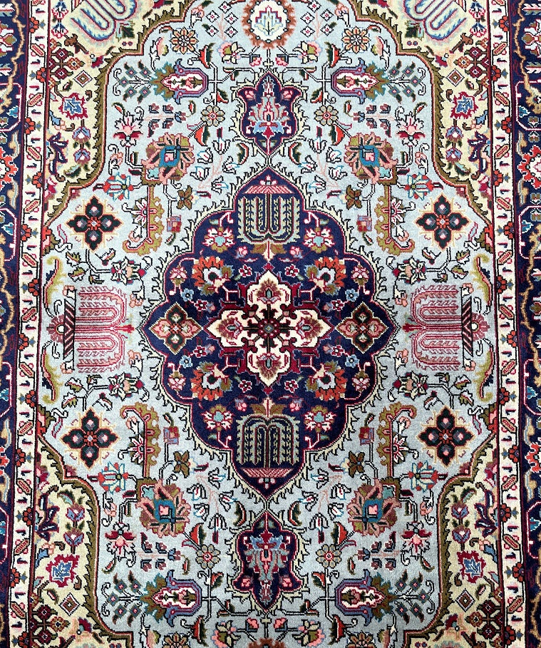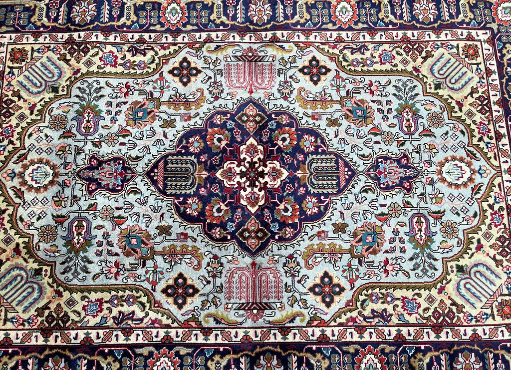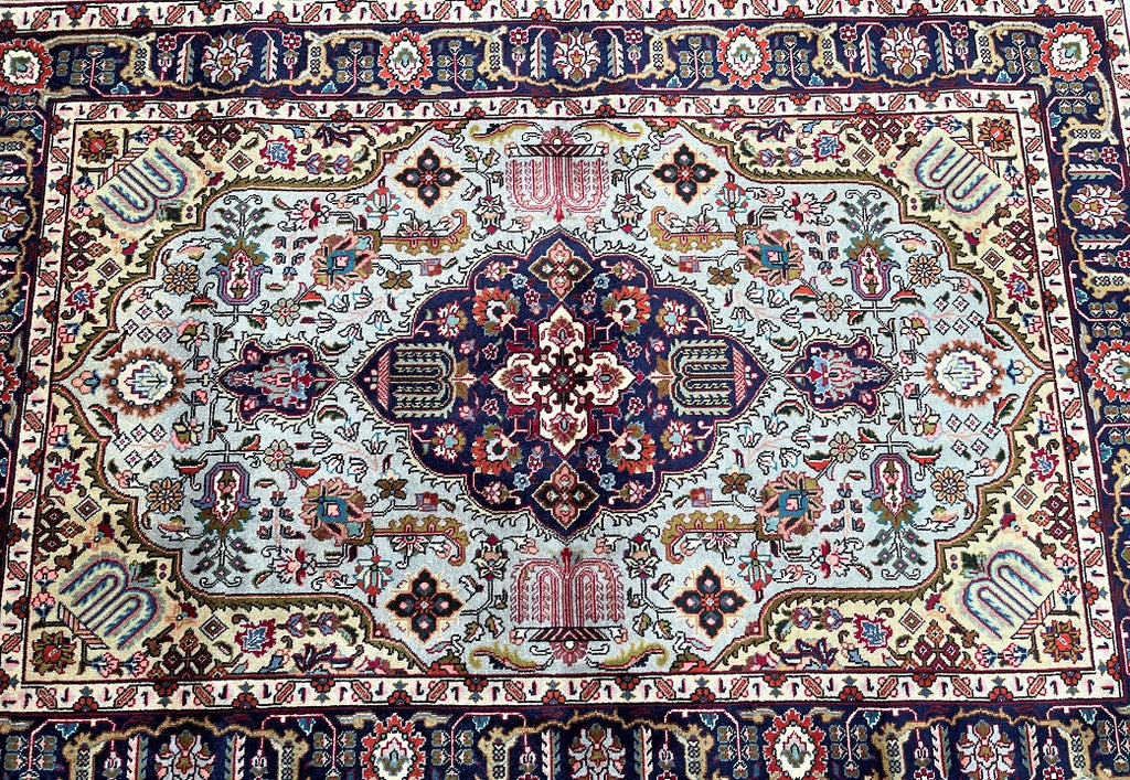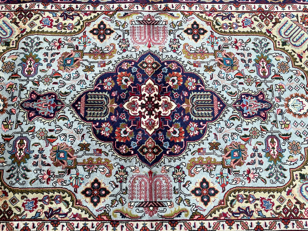Superb Authentic Handmade Persian Tabriz Rug. Above All It Has A Pure Lamb’s Wool Pile On Cotton. Duck Egg Blue, Maroon, Black, Blue, Brown, Green, Terracotta And Pink Tone Dyed Using Traditional Methods.