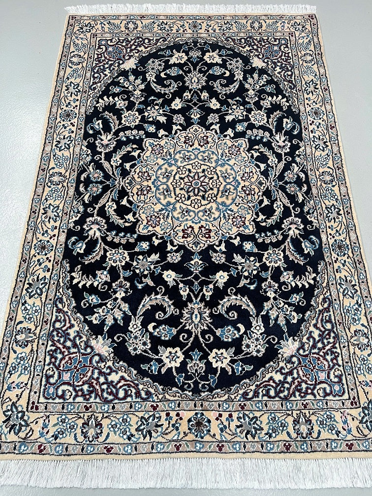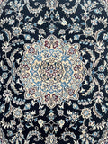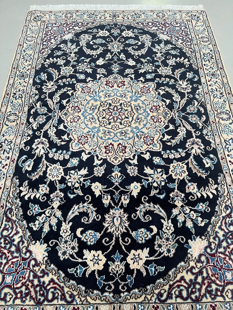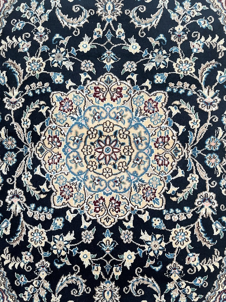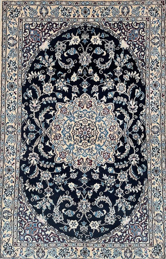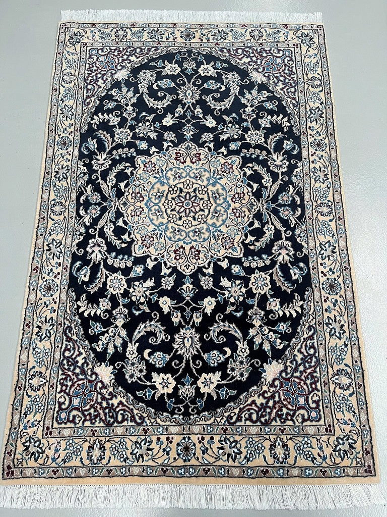Superb Coffee Table Size Authentic Persian Nain Carpet. Above All It Is Hard To Get This Quality Original Handmade Traditional Rug. Never The Less It’s Lamb’s Wool Pile Cotton Base. Indigo Blue, Beige, French Blue And Burgundy Tone Dyed Using Traditional Methods.