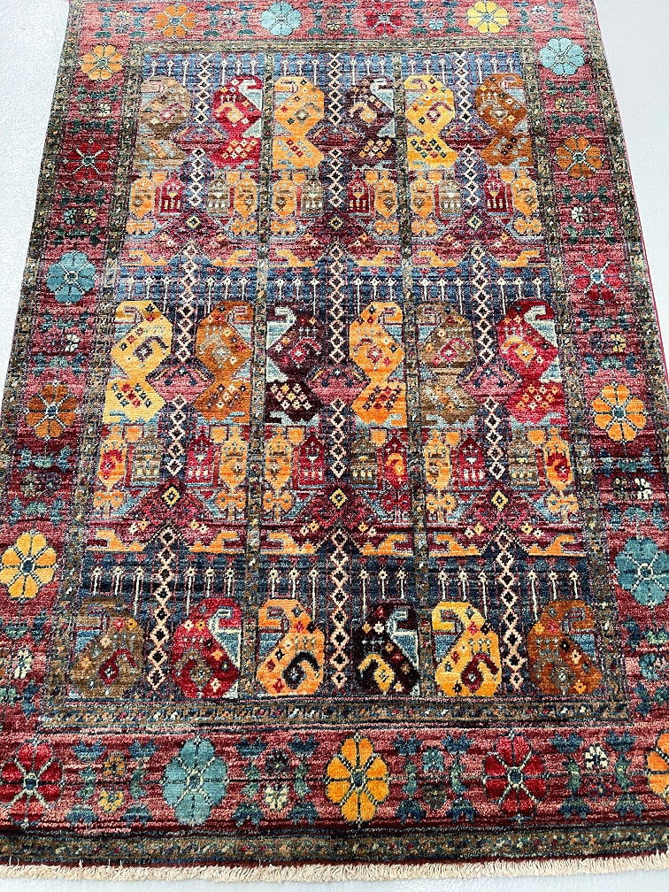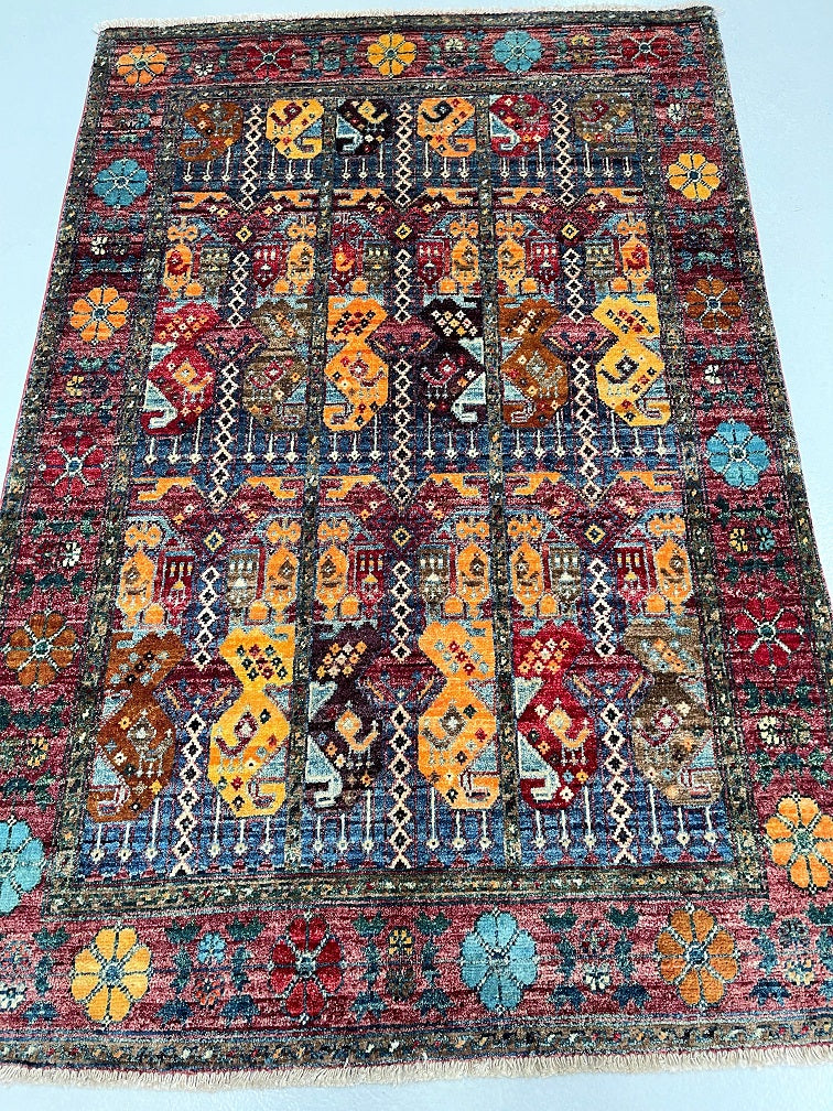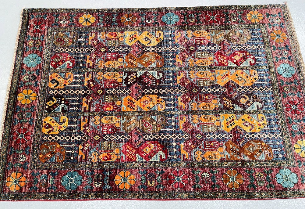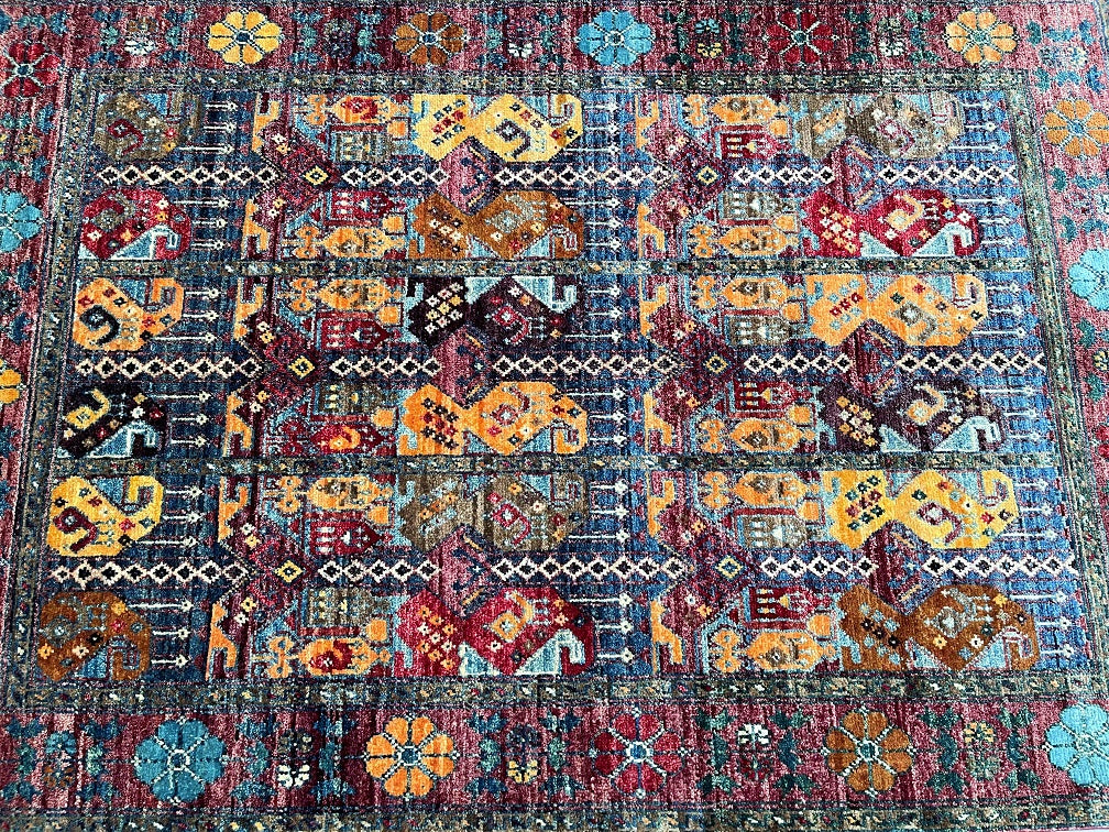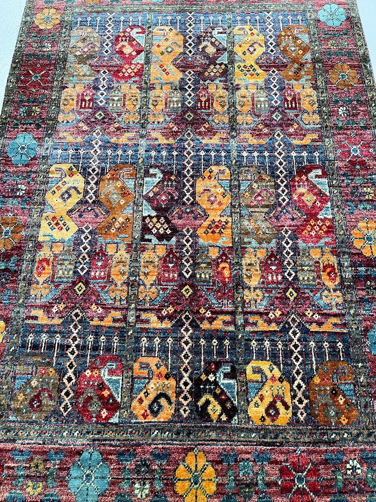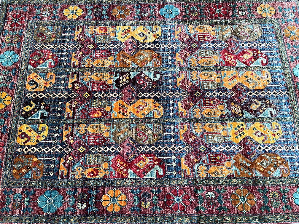Stunning Boho Design Handmade Afghan Super Kazak Rug. Above All It Is Pure Hand Spun Ghazni Wool Pile On Cotton Base. Multi-Colour Tone Dyed Using Traditional Methods (Vegetable Dyes). Last of True Woven Nomadic Art.