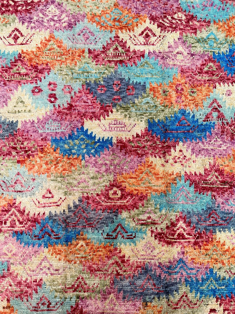 Moroccan Style Hand Knotted Afghan Gabbeh Rug. Above All It Has A Thick Wool Pile On Wool Base. Multi-Color Background Dyed Using Traditional Methods. Last of True Woven Nomadic Art.