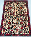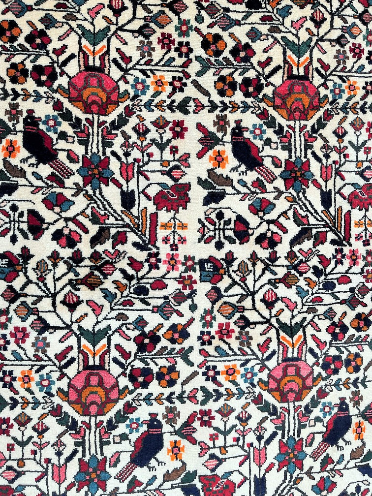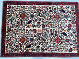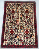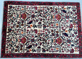 Collectible Coffee Table Size Handmade Persian Mehraban Rug. Above All This Is a Rare Pictorial Design. Pure Hand Spun Wool Pile On Cotton Base. It Also Has a Beige Background Dyed Using Traditional Methods.