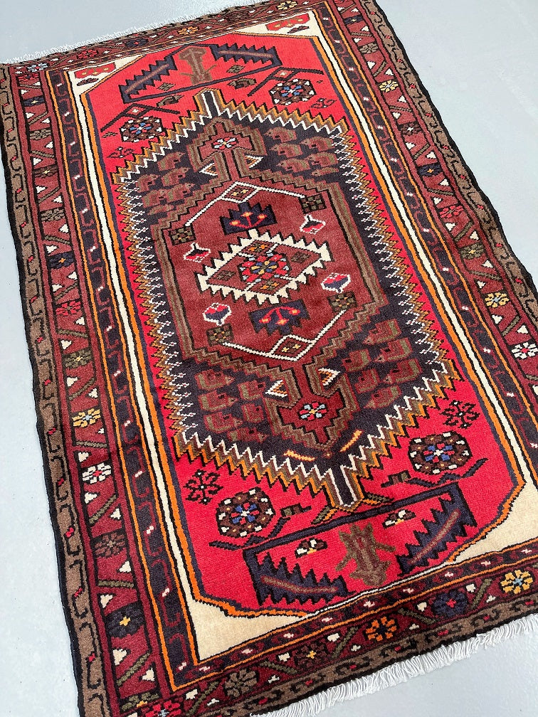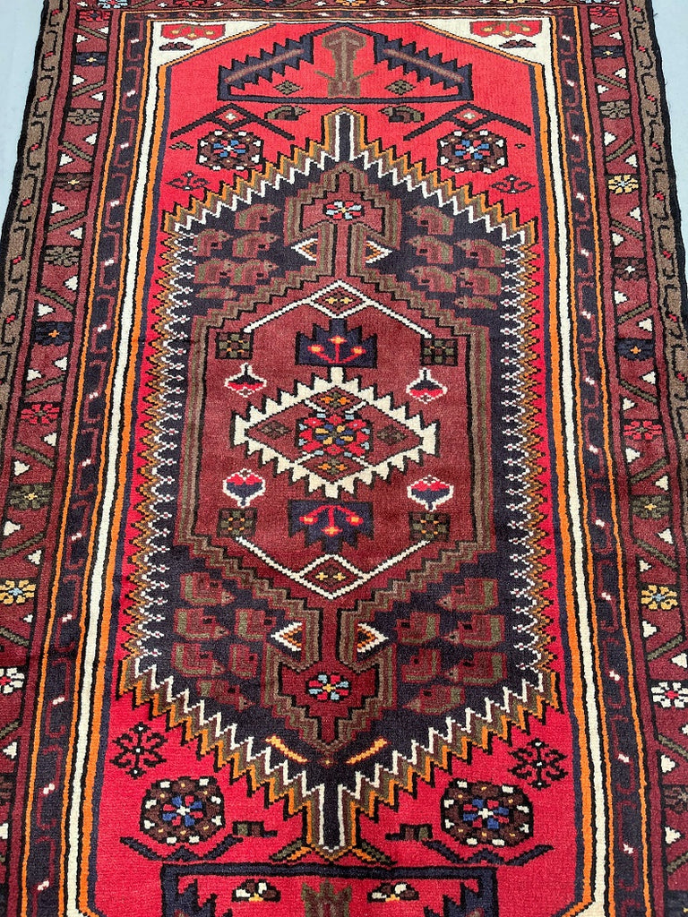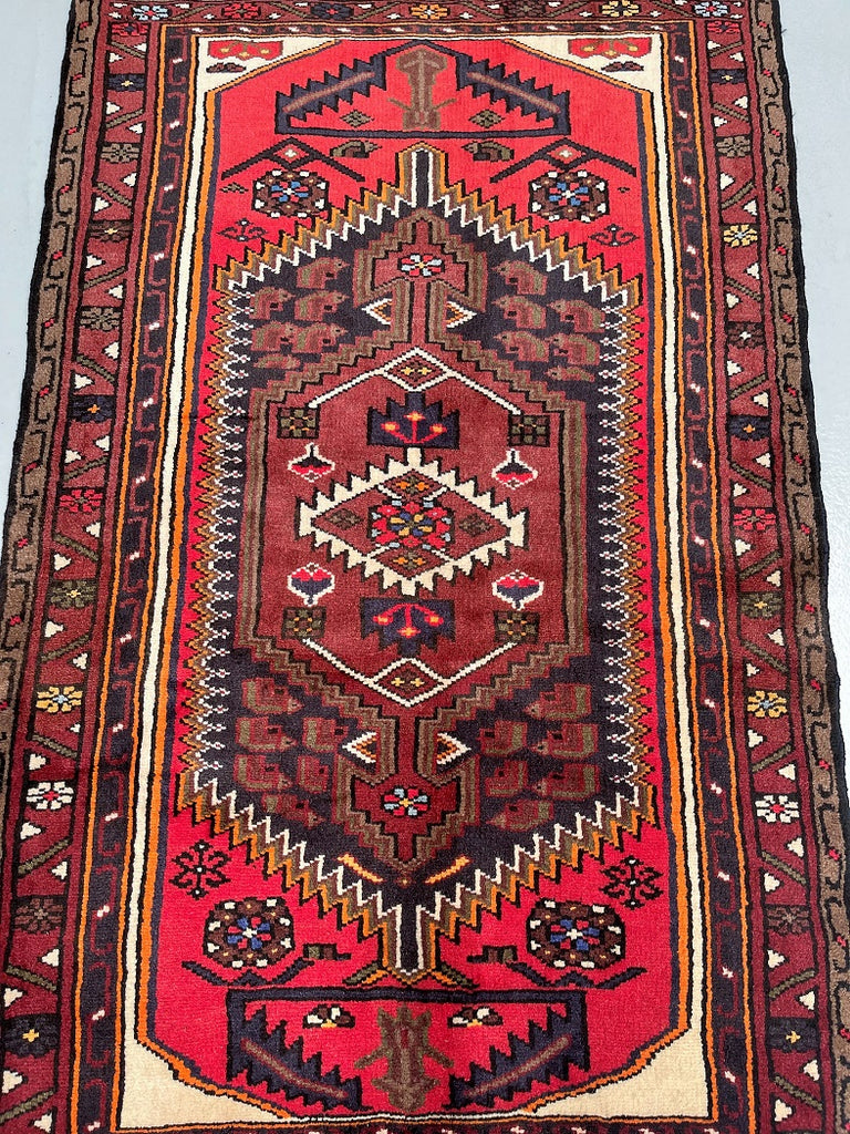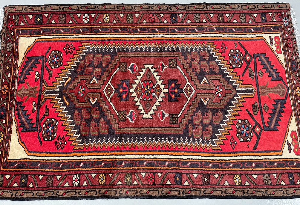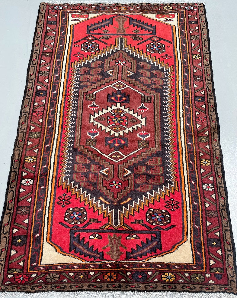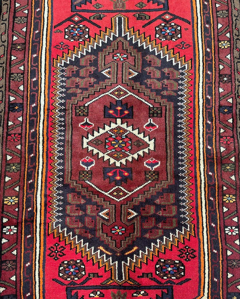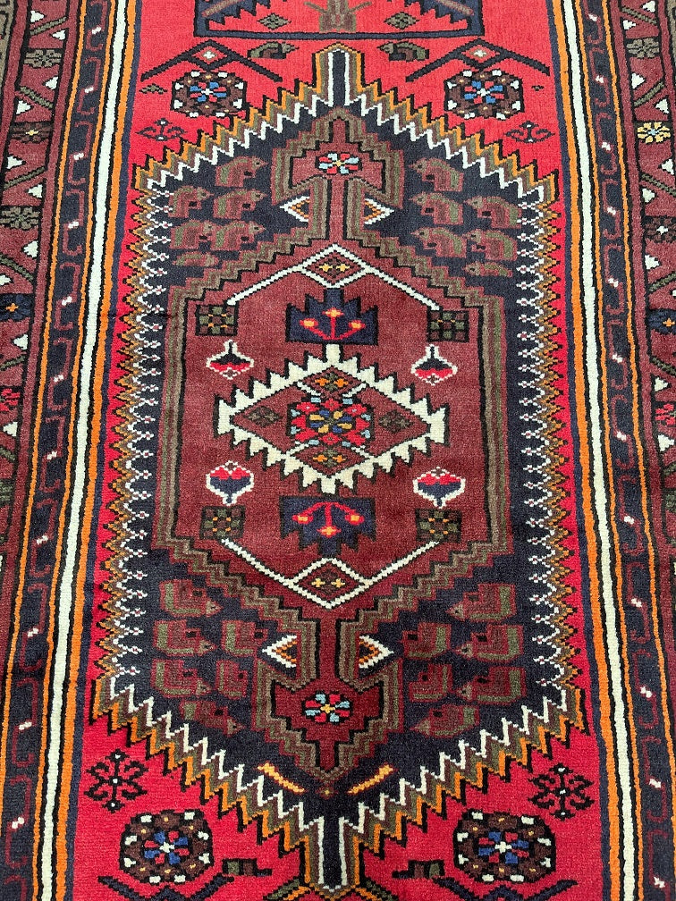 Durable Authentic Handmade Persian Khamseh Rug. Above All It Has A Pure Hand Spun Wool Pile On Cotton Base. It Also Has A Soft Red, Charcoal, Beige, Green, Brown And Terracotta Tone Dyed Using Traditional Methods.