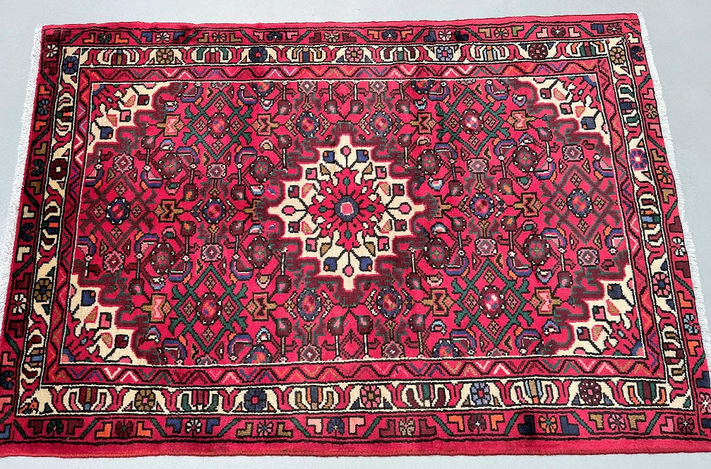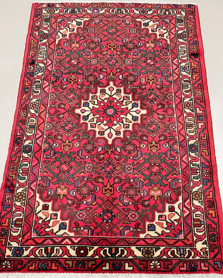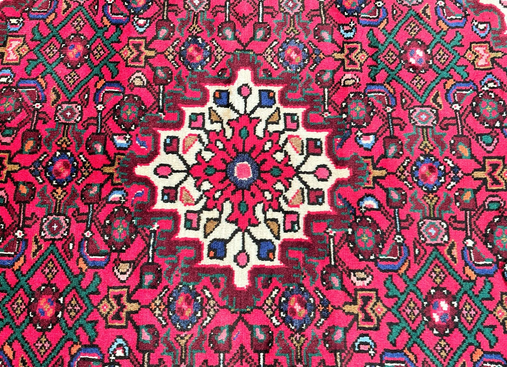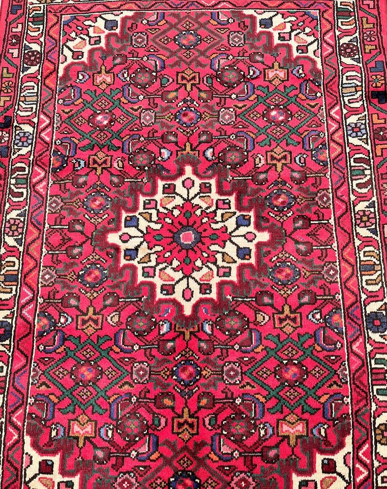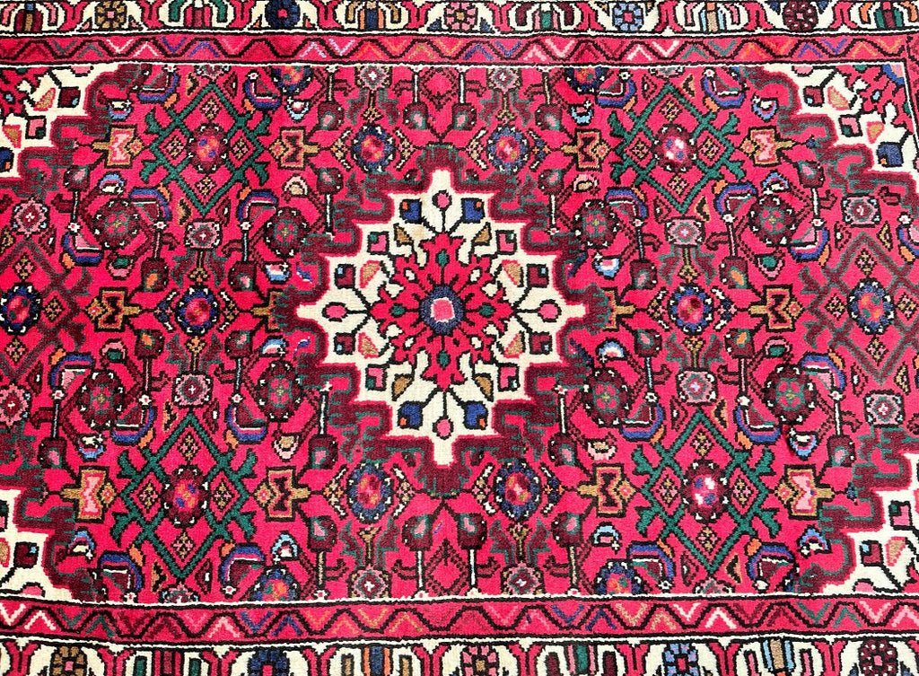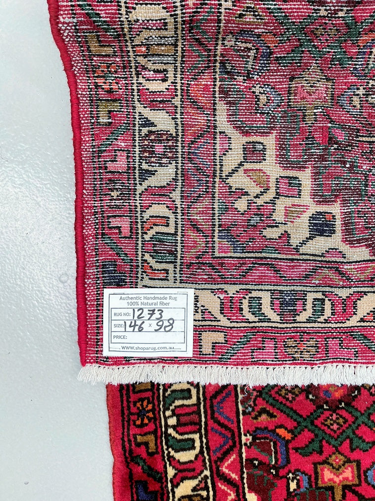 Coffee Table Size Authentic Handmade Persian Village Enjelas Rug. Above All It Is A Hard Wearing Rug. Pure Hand Spun Wool Pile On Cotton Base. It Also Has a Beige, Pinkish Red, Blue, Green And Brown Tone Dyed Using Traditional Methods.