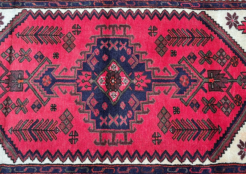 Nomadic Genuine Handmade Persian Khamseh Rug. Above All It Has A Pure Hand Spun Wool Pile On Cotton Base. It Also Has A Burnt Orange, Green, Beige, Blue And Brown Tone Dyed Using Traditional Methods.