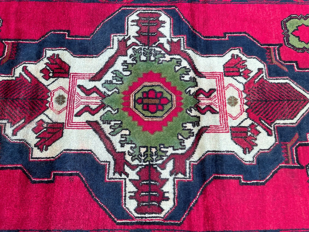 Above All It Has Pure Hand Spun Wool on Wool Construction. Main Colours Are Red, Indigo Blue, Green And Beige Tones Dyed Using Traditional Methods.