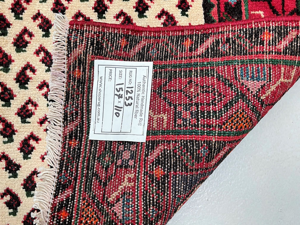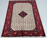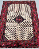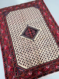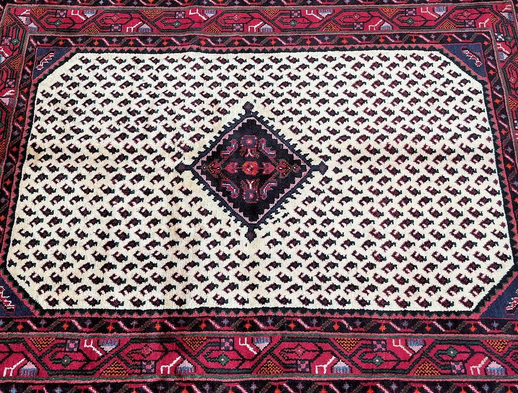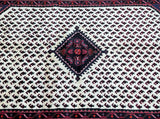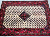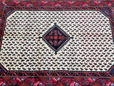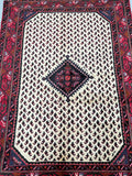 Coffee Table Size Authentic Handmade Persian Hamedan Rug. Above All It Is A Very Unique Nomadic Rug. Pure Hand Spun Wool Pile On Cotton Base. It Also Has Beige, Indigo Blue, Red And Green Tone Dyed Using Traditional Methods.