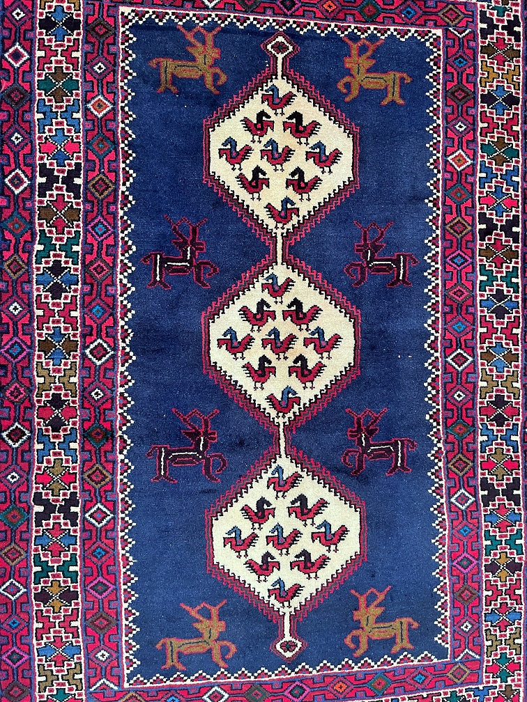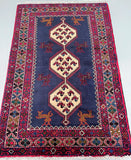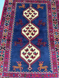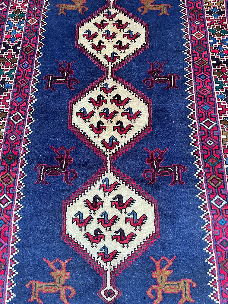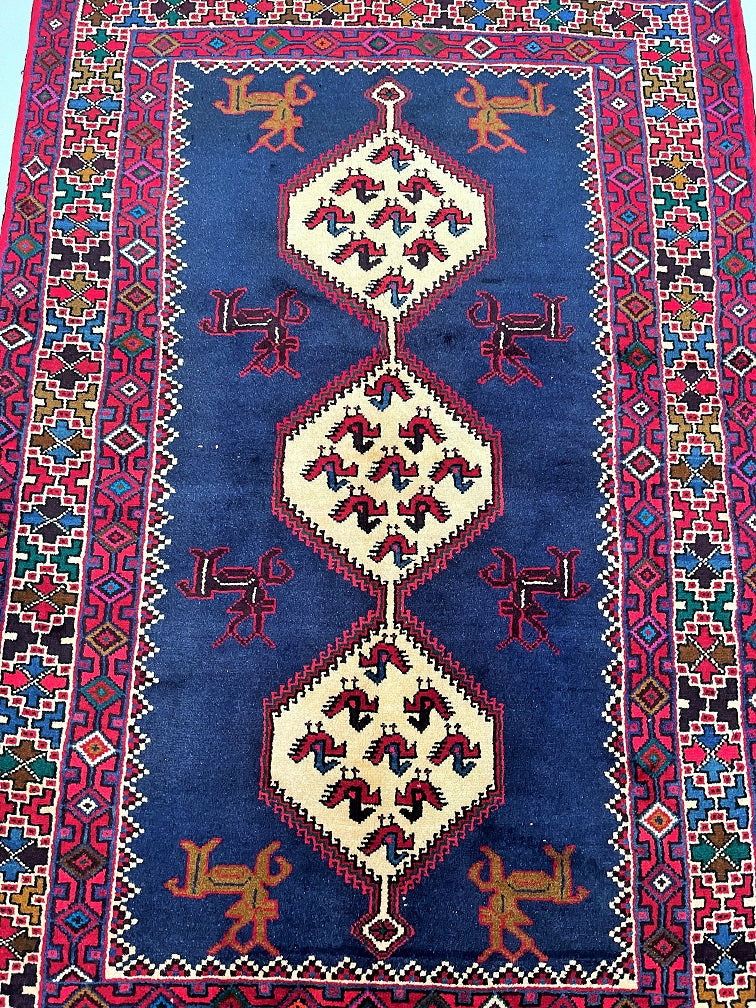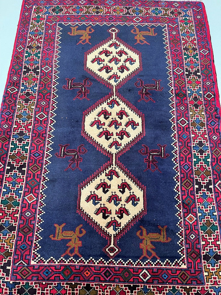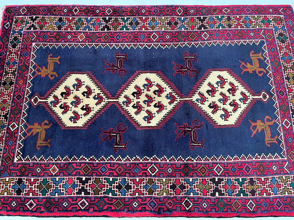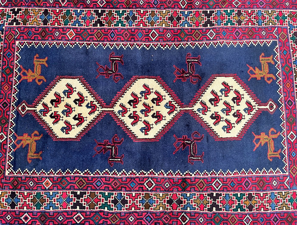Coffee Table Size Handmade Persian Hamedan Rug. Above All It Is A Very Hard Wearing Rug. Pure Hand Spun Wool Pile On Cotton Base. It Also Has An Indigo Blue Tone Dyed Using Traditional Methods.