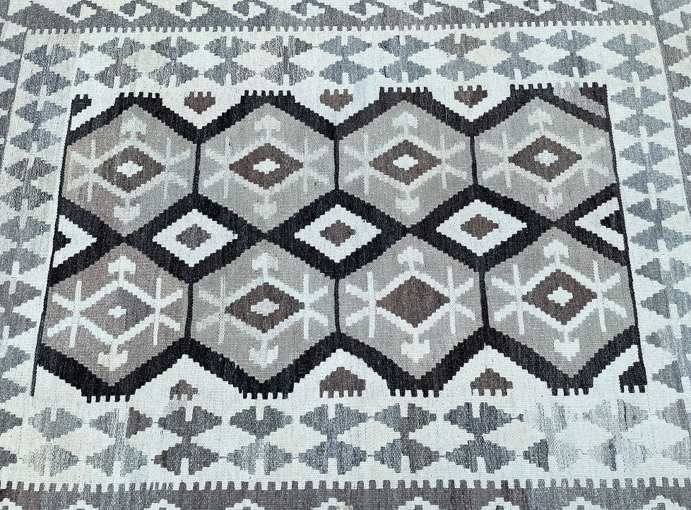 Bring a touch of Afghan culture and artistry into your space with our Handmade Tribal Afghan Meymana Kilim Rug. Its combination of traditional craftsmanship, modern design, and premium materials make it an excellent investment for those who appreciate beauty and quality.