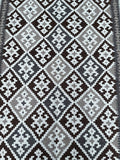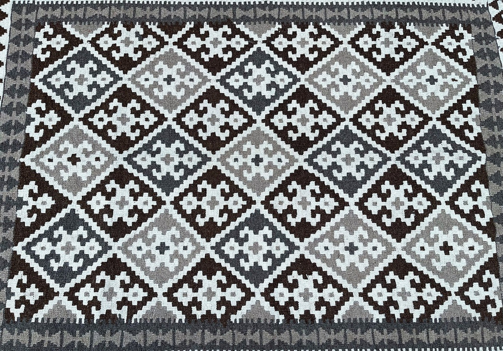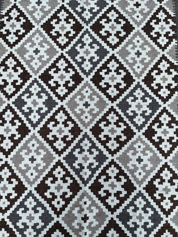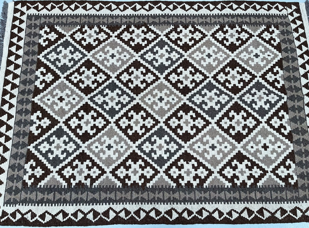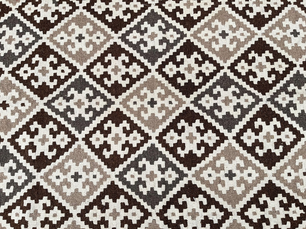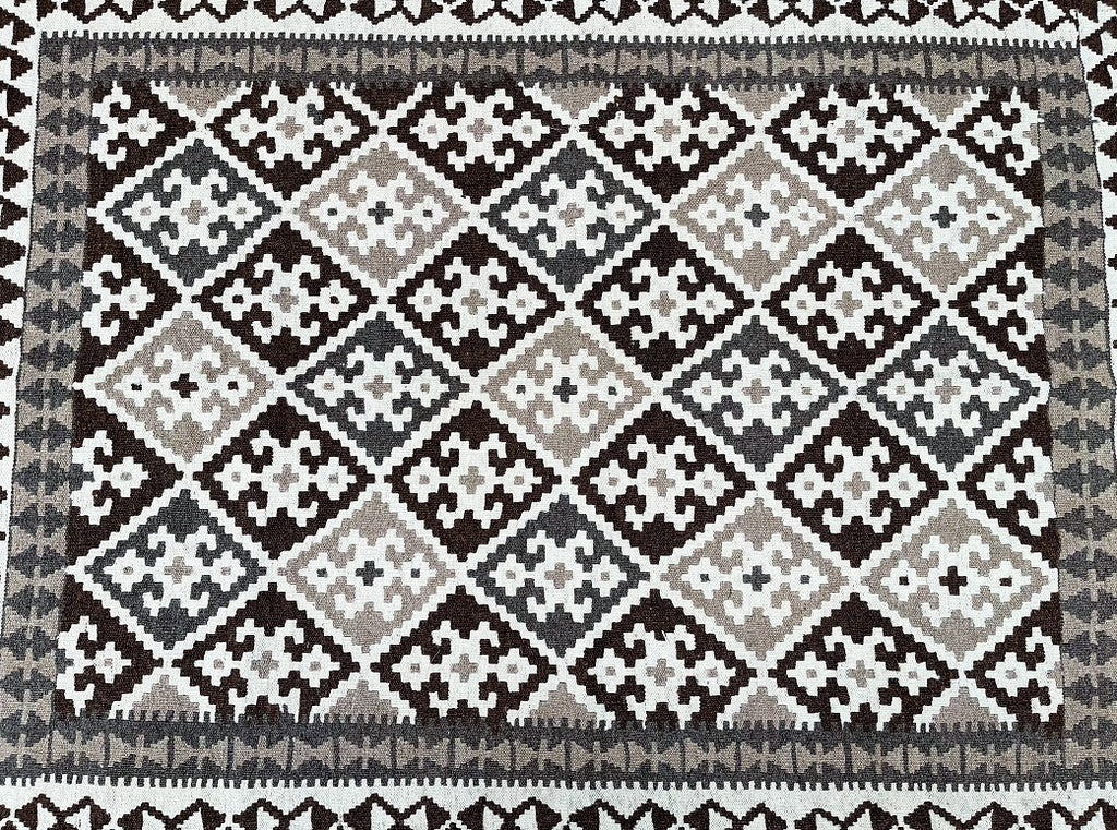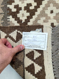 Coffee Table Size Nomadic Hand Woven Afghan Kyber Kilim. Above All It Is A Very Versatile Size. It Also Has A Pure Hand Spun Wool Pile On Wool Base. Neutral Beige, Grey And Brown Tone Dyed Using Traditional Methods.