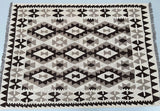 Coffee Table Size Nomadic Hand Woven Afghan Meymana Kilim Rug. Above All It Is A Very Versatile Size. It Also Has A Pure Hand Spun Wool Pile On Wool Base. Neutral Beige And Brown Tone Dyed Using Traditional Methods.