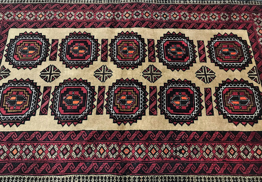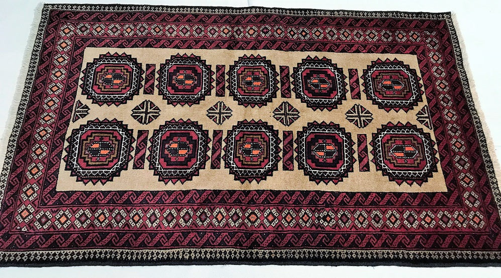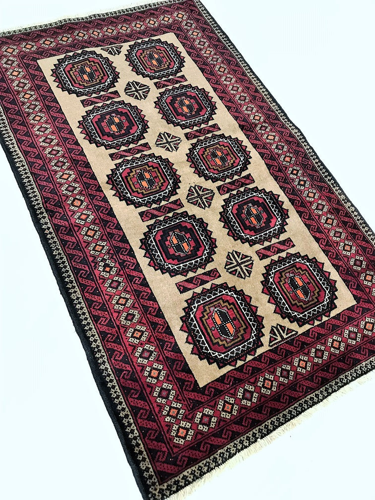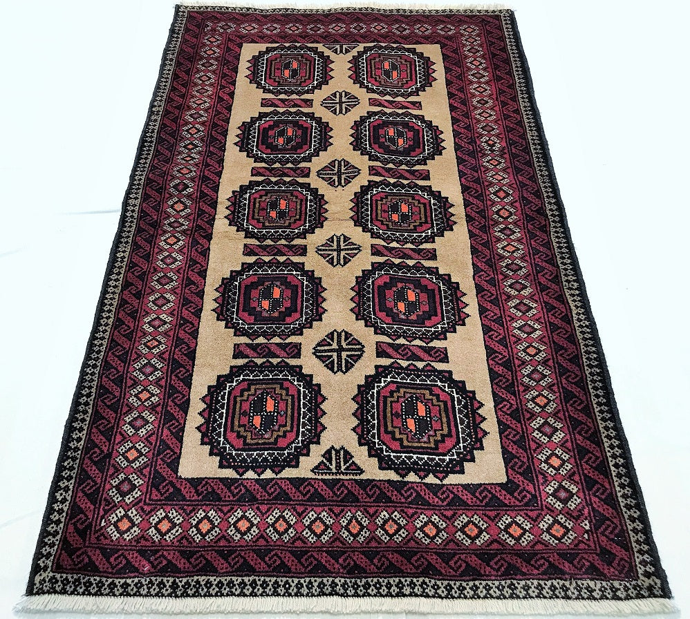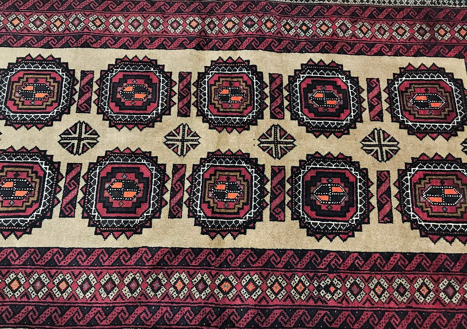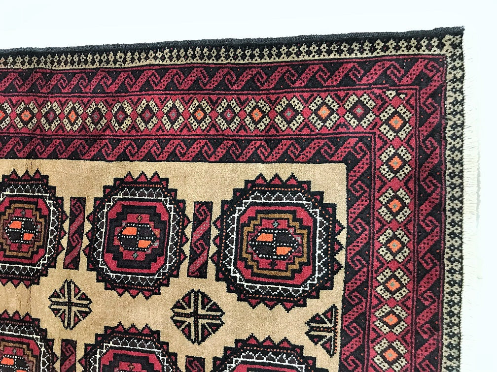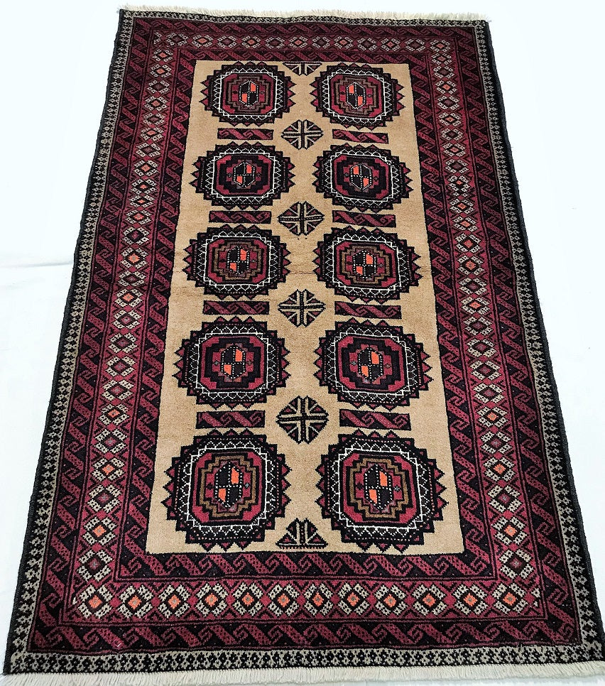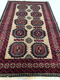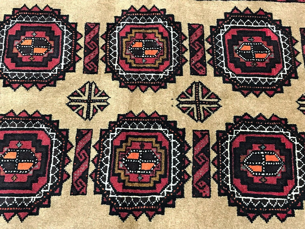 Durable Coffee Table Size Genuine Handmade Balouchi Rug Which Also Can Be Used As A Runner. It Has A Pure Hand Spun Wool Pile On Cotton Base. Beige/Light Brown Tone Dyed Using Traditional Methods.