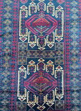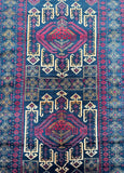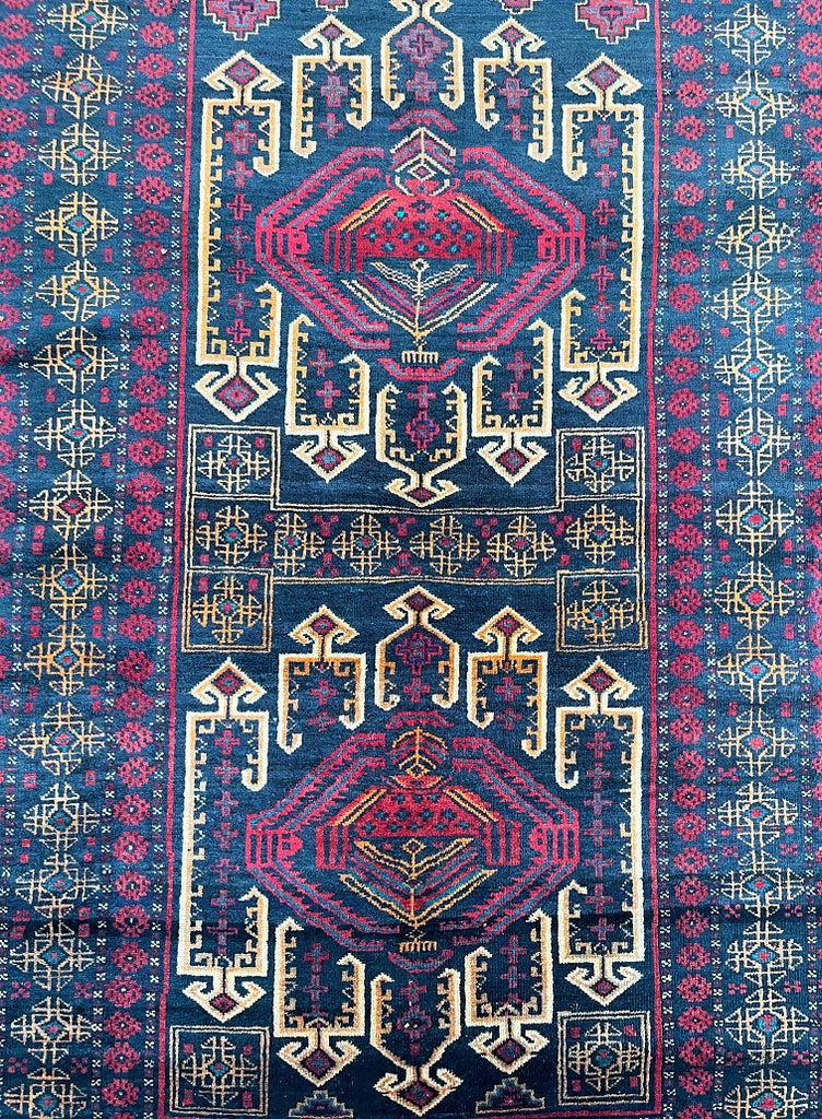 Considering its exceptional quality and craftsmanship, the Vintage Afghan Balouchi Carpet holds a gallery replacement valuation of $1790. It is a valuable addition to any space, exuding a sense of history and artistry.