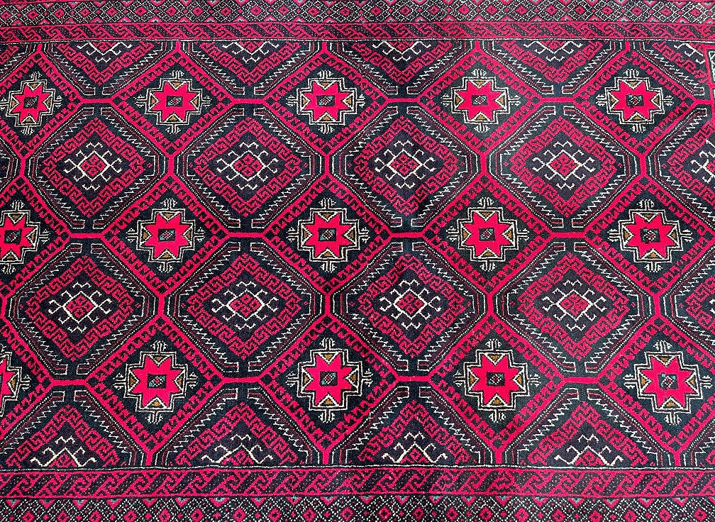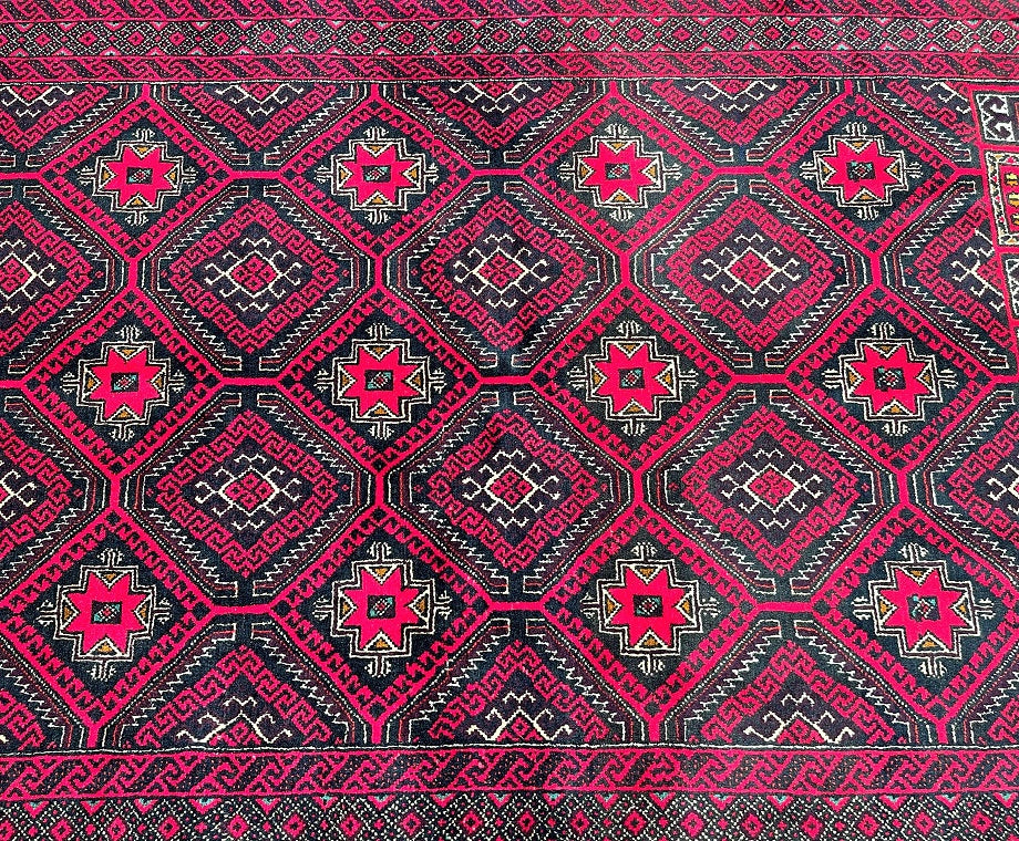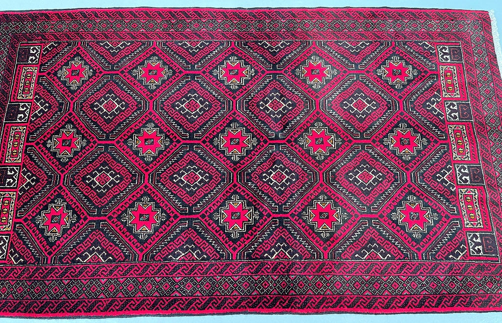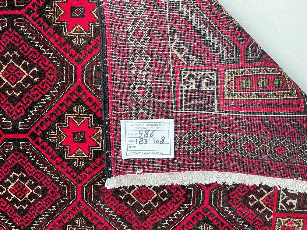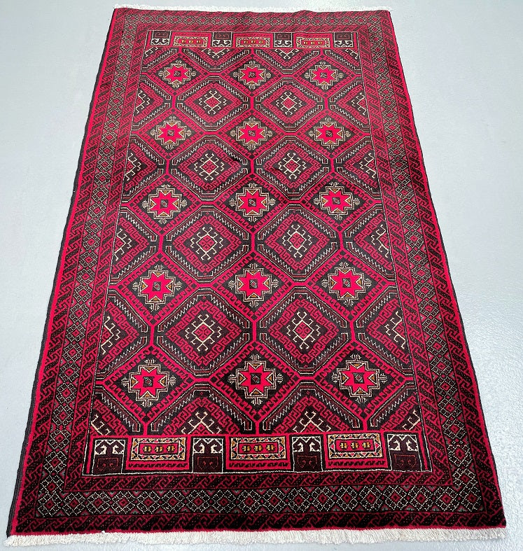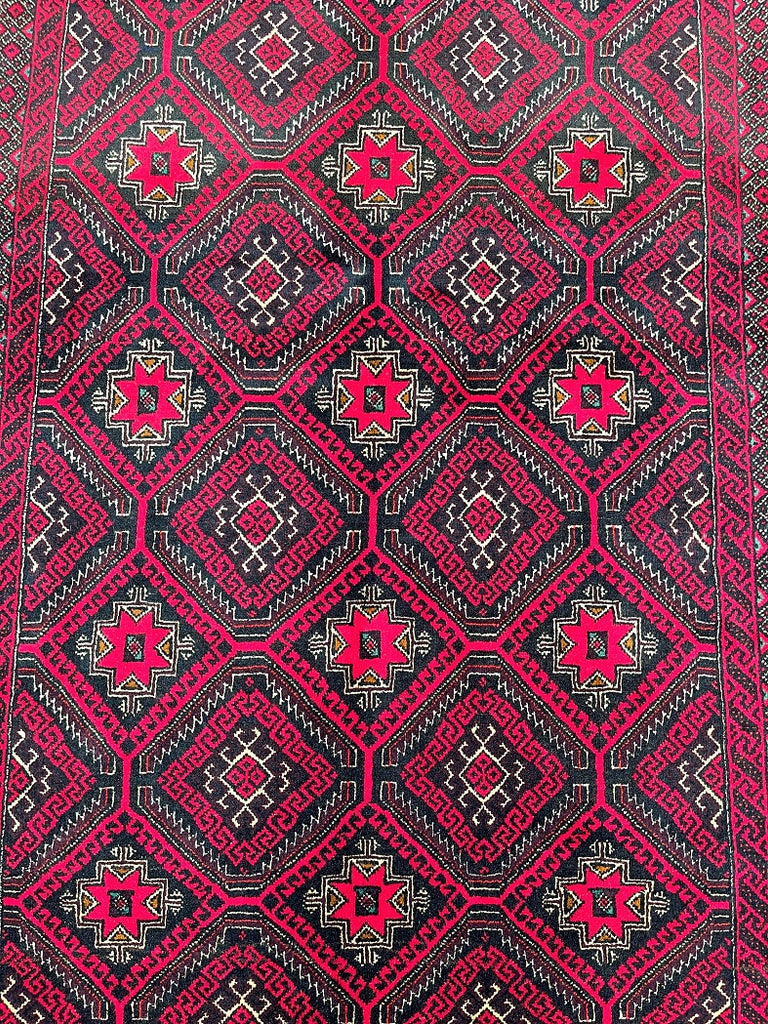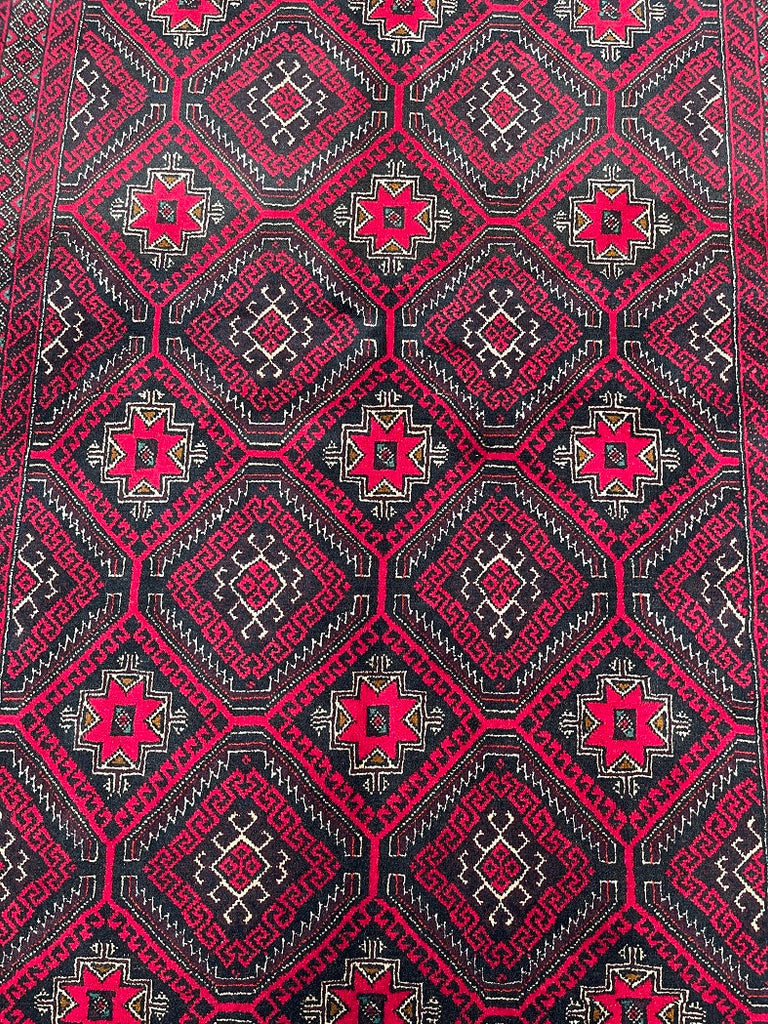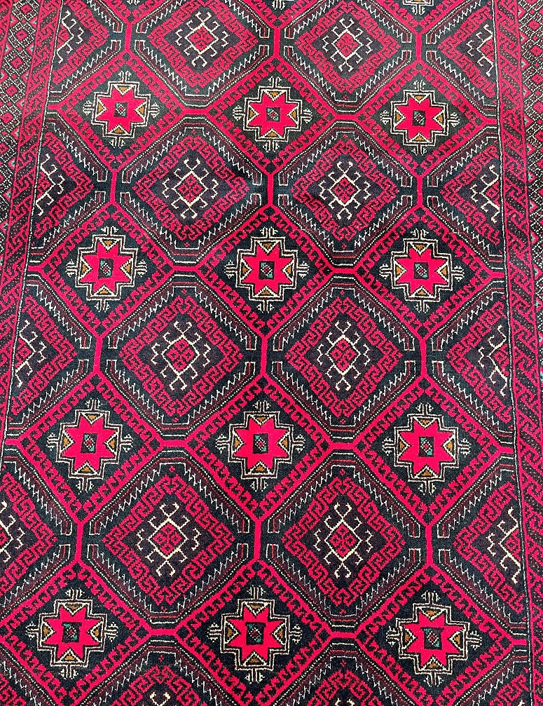 Coffee Table Size Authentic Handmade Tribal Balouchi Rug Which Also Can Be Used As A Runner. It Has A Pure Hand Spun Wool Pile On Cotton Base. Black, Beige, Brown And Red Tone Dyed Using Traditional Methods.