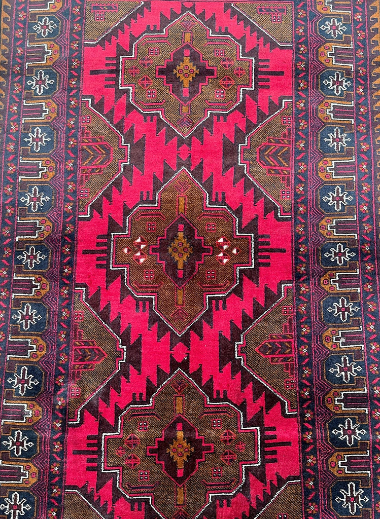 Vintage Afghan Balouchi Carpet Which Can Also Be Used As A Short Runner.