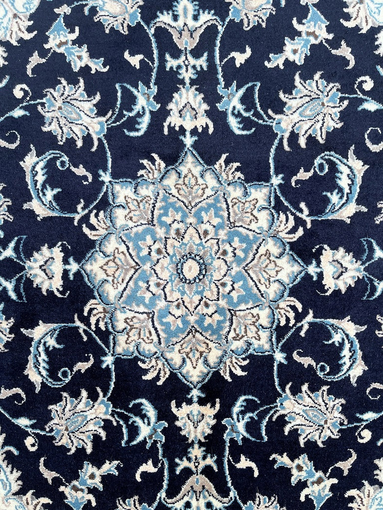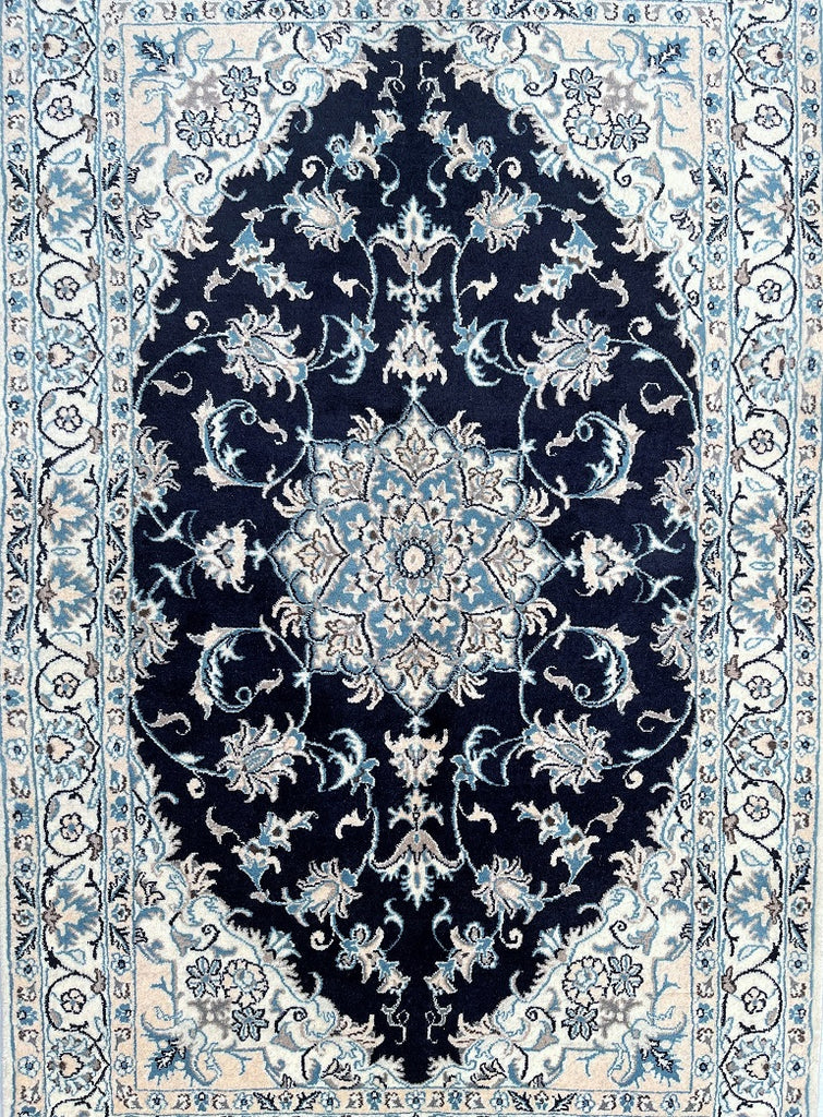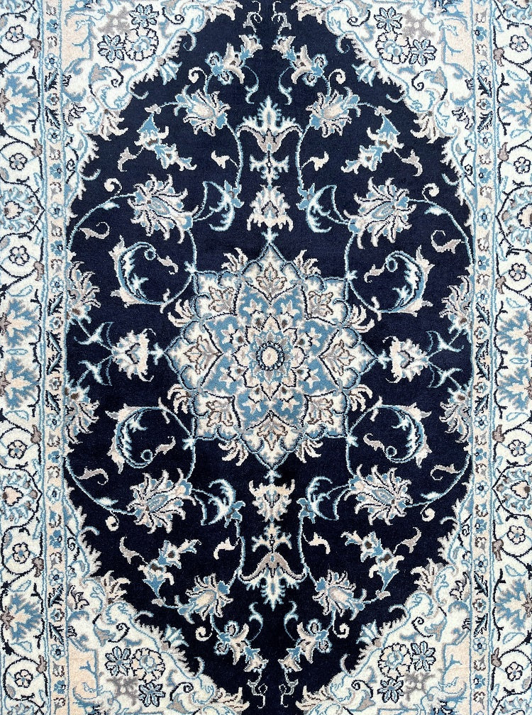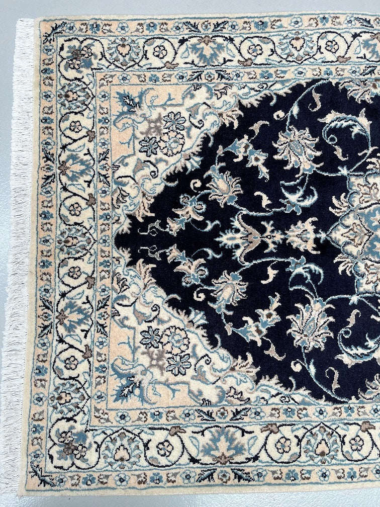 Fine Authentic Hand Knotted Persian Nain Rug. Above All It Has Pure Wool Pile On Cotton Base. It Also Has An Indigo Blue, Aqua, Cream And Beige Tones Dyed Using Traditional Methods.