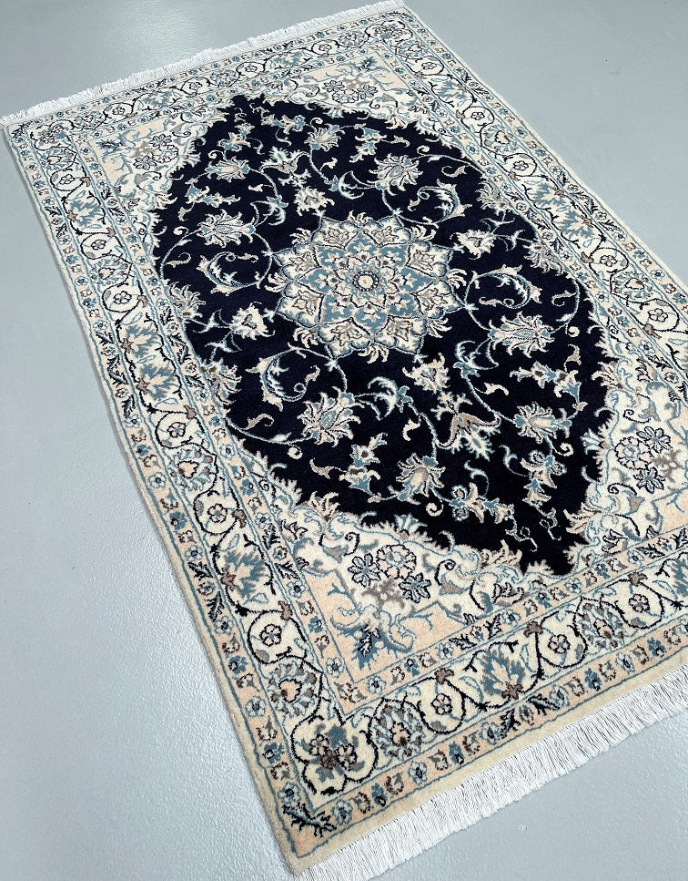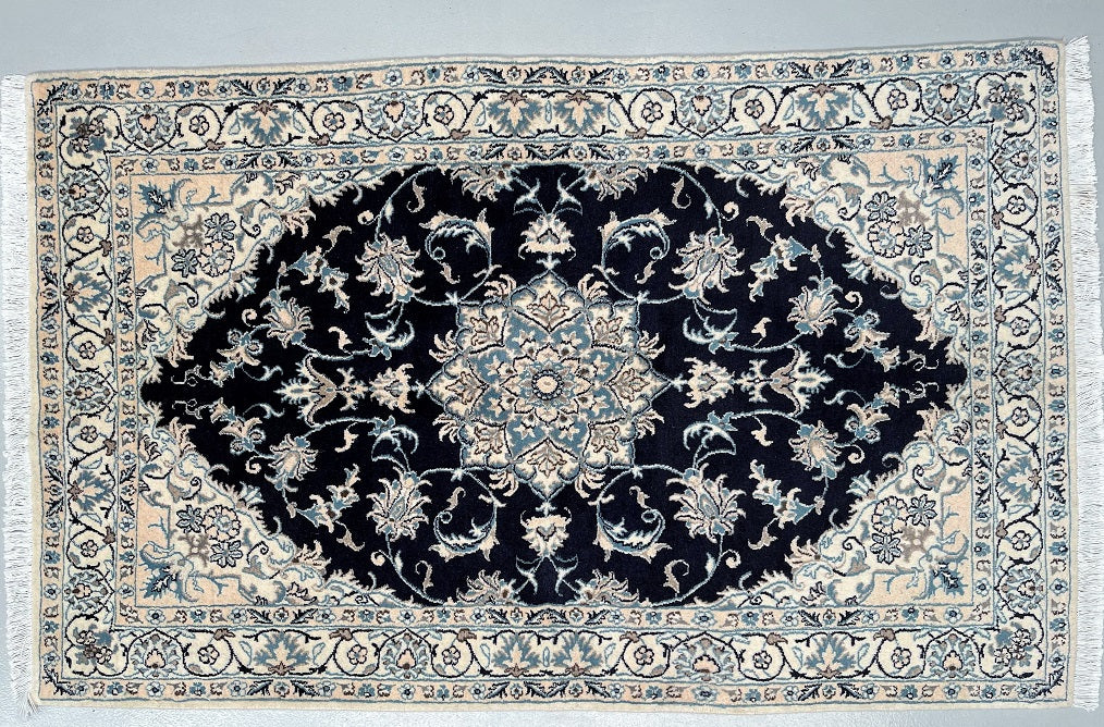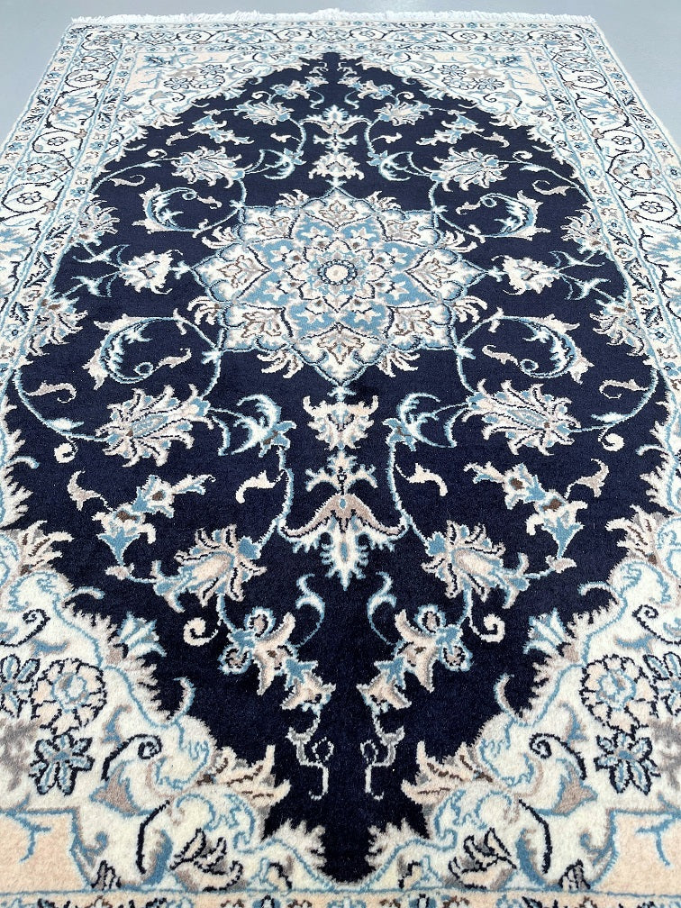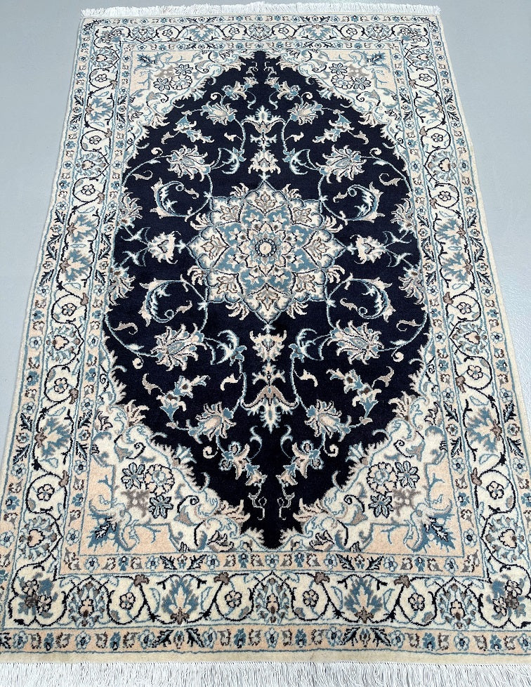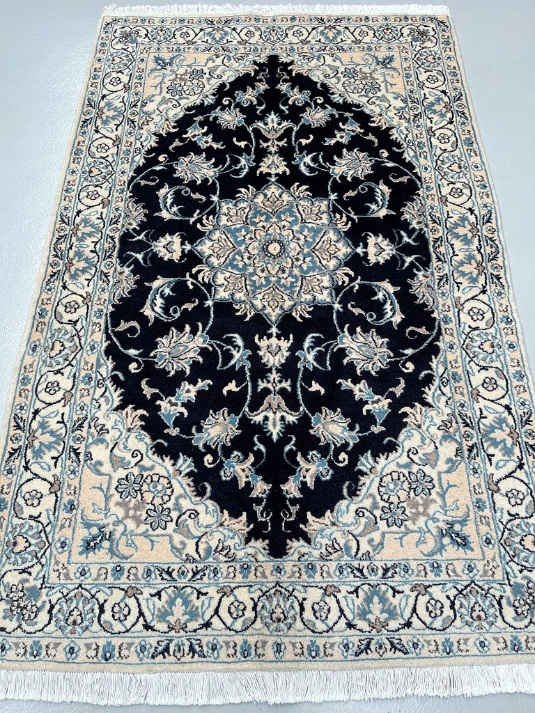 Fine Authentic Hand Knotted Persian Nain Rug. Above All It Has Pure Wool Pile On Cotton Base. It Also Has An Indigo Blue, Aqua, Cream And Beige Tones Dyed Using Traditional Methods.