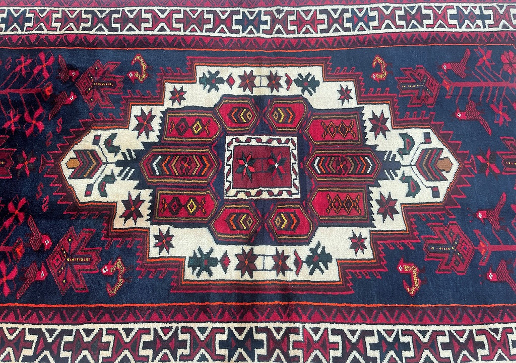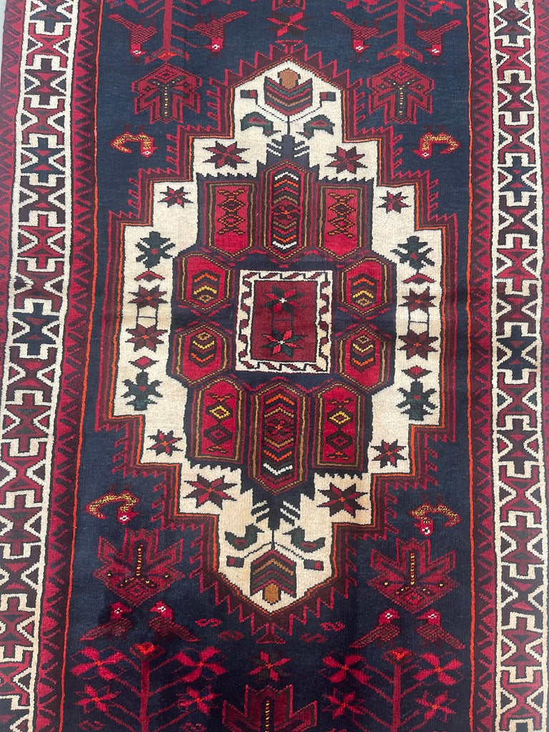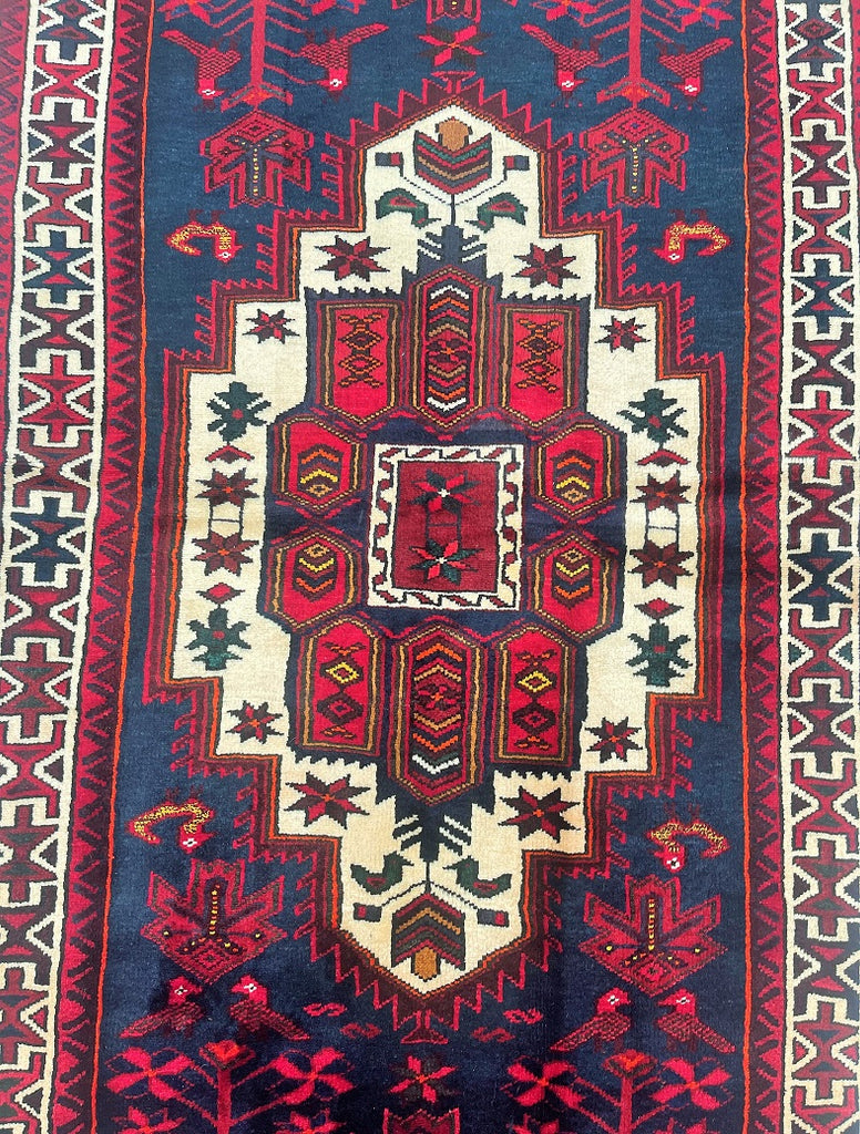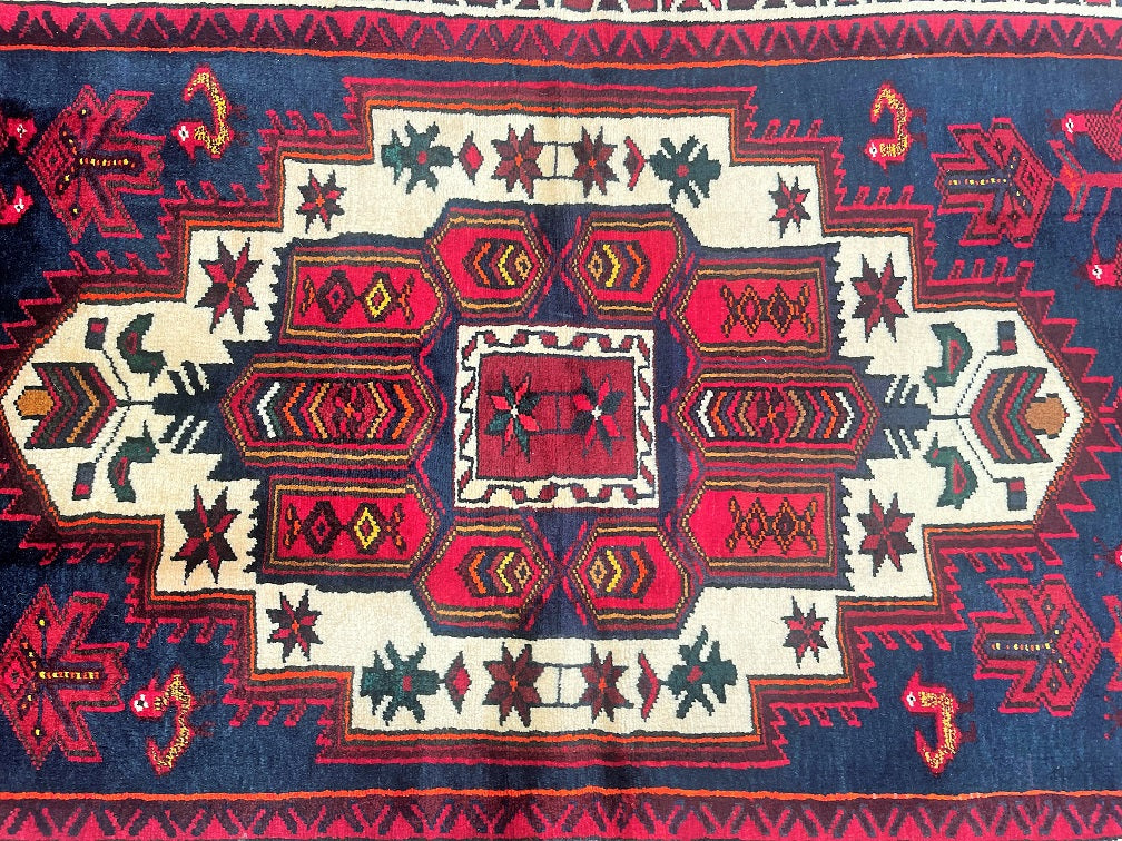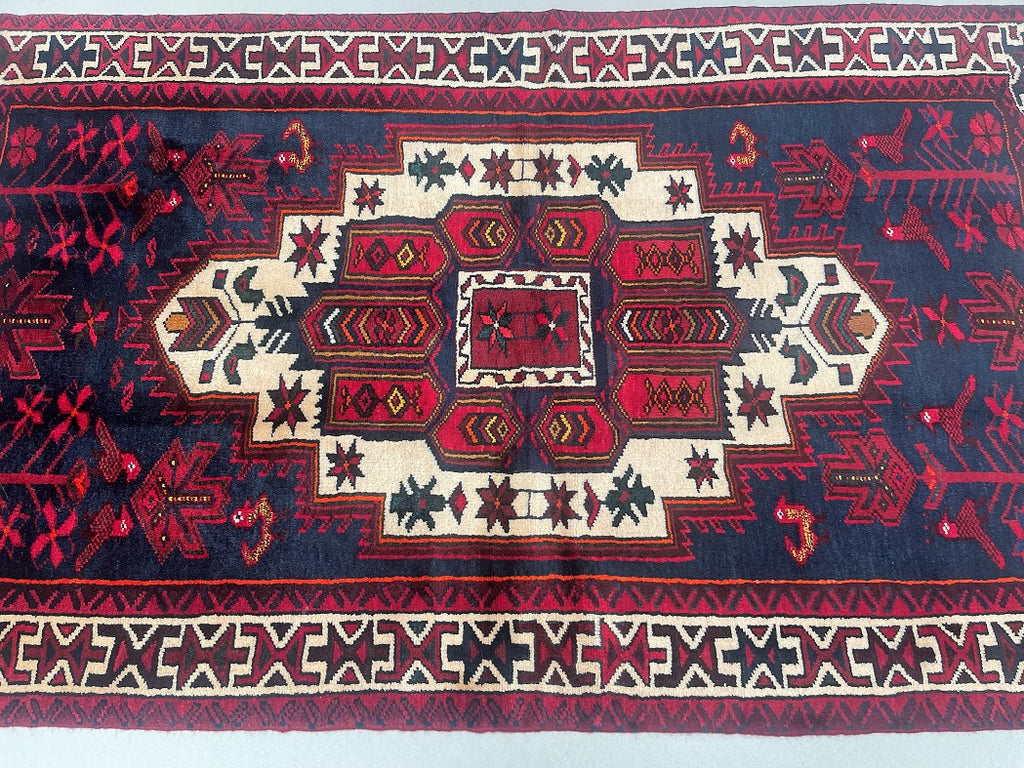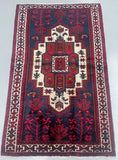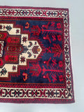 Rare Coffee Table Size Authentic Handmade Tribal Persian Luri Rug. It Is Also Ideal For Every Day Usage. Hard To Find This Quality Handmade From Lurestan. Pure Hand Spun Wool Pile On Cotton Base. Deep Maroon Red, Brown, Indigo Blue, Green, Yellow And Beige Tone with Hint of Beige Dyed Using Traditional Methods.